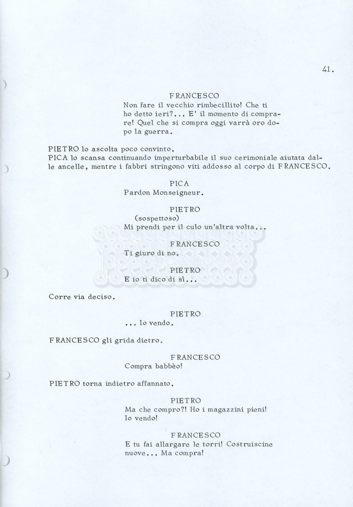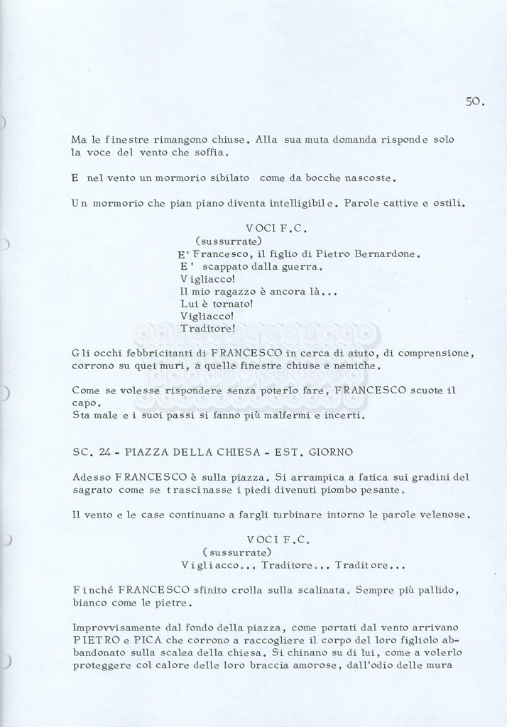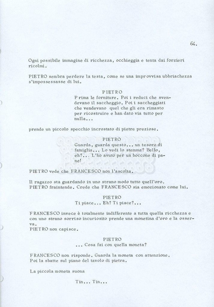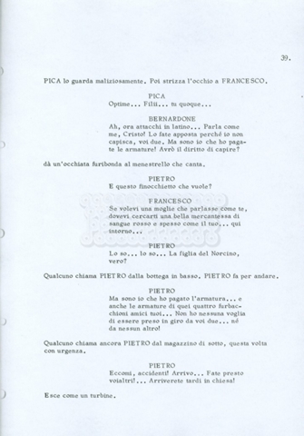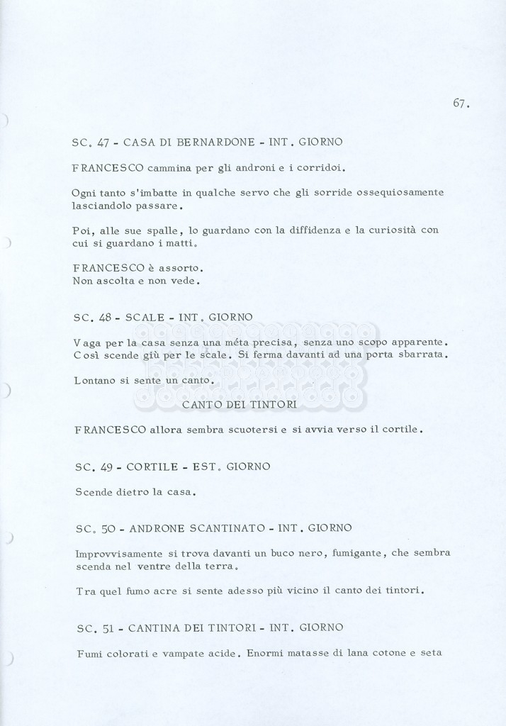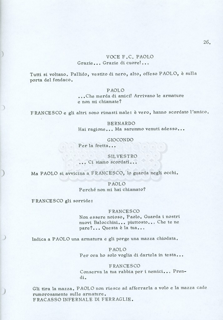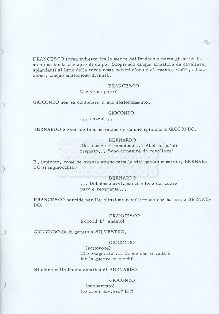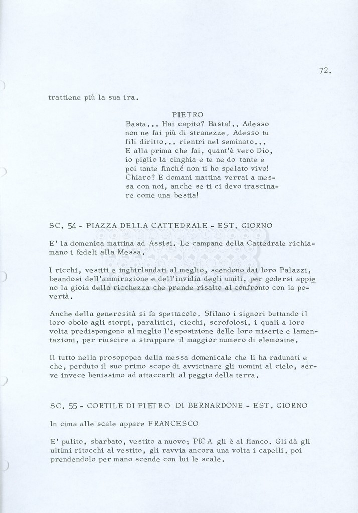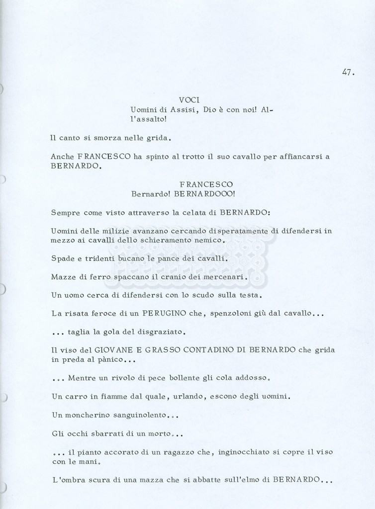 Torna alla banca dati “Fratello sole… sorella luna…” Documento storico Archivio Suso Cecchi d’Amico / Film realizzati / Fratello sole sorella luna Ambiti e contenuto Trattasi di una sceneggiatura di Suso Cecchi d’Amico, Lina Wertmüller, Franco Zeffirelli e i dialoghi di Kenneth Ross. Informazioni archivistiche Cronologia: novembre 1970 Numero di ordinamento definitivo: 23 Numero di ordinamento provvisorio: 1.22 Descrizione fisica: volume pp. 188 Immagini digitalizzate Informazioni sul film titolo originale: Fratello sole, sorella luna altri titoli: Brother Sun, Sister Moon regia: Zeffirelli, Franco (Pseudonimo) anno: 1972 paese di produzione: Italia – Regno Unito lingua principale: italiana altre lingue: inglese Documenti correlati Vai alla banca dati DOCUMENTO STORICO Fratello sole…sorella luna