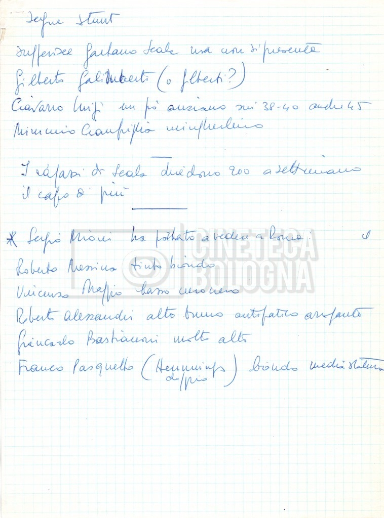 – Un volantino con cast e sinossi del film con appunti mss.;