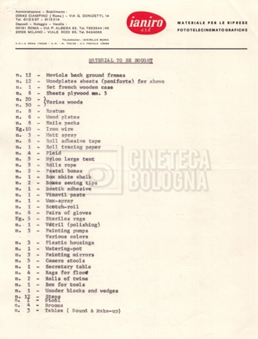 – Una lettera di Mara Blasetti a Basil Rayburn, production supervisor (08 maggio 1969);