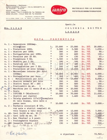 – Corrispondenza tra Mara Blasetti e John Sloan, il produttore del film (23 giugno 1969 – 12 luglio 1969);