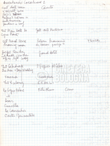 – Un appunto mss. riguardante i luoghi da visitare per la selezione delle locations;