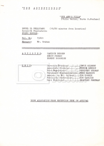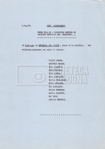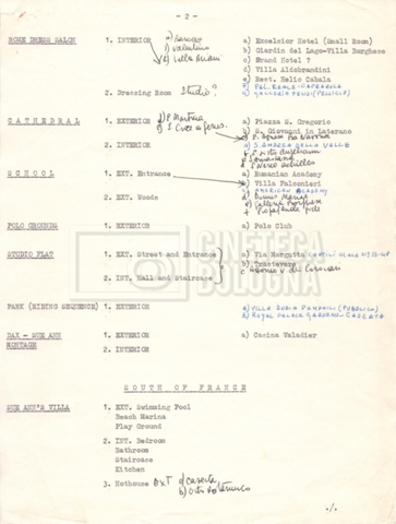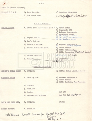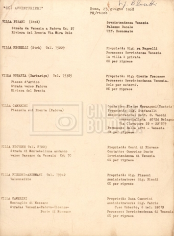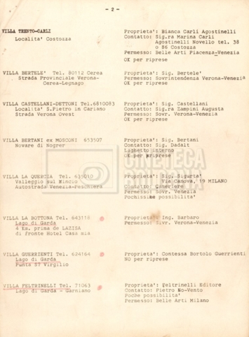 – Un elenco di ville censite per valutarne l’utilizzo per le riprese (25 giugno 1968);
