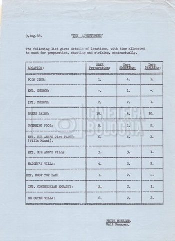 – Un Italian location trial budget (05 gennaio 1969);
