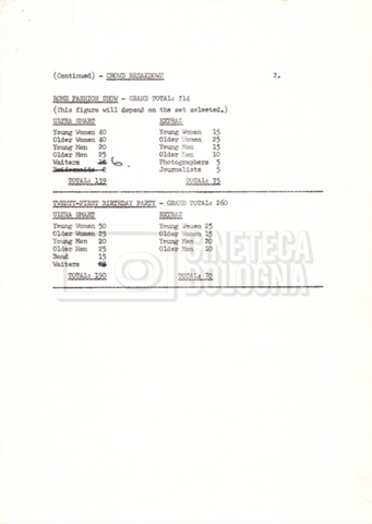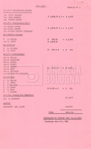 – Appunti mss. riguardanti i compensi del cast tecnico e artistico;