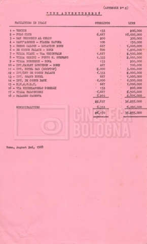 – Un elenco delle ville e dei castelli da visitare per eventuali riprese (07 giugno 1968);