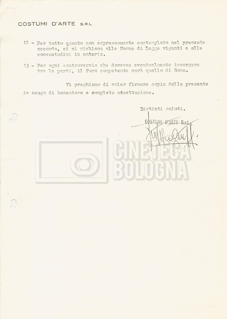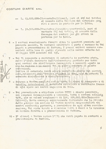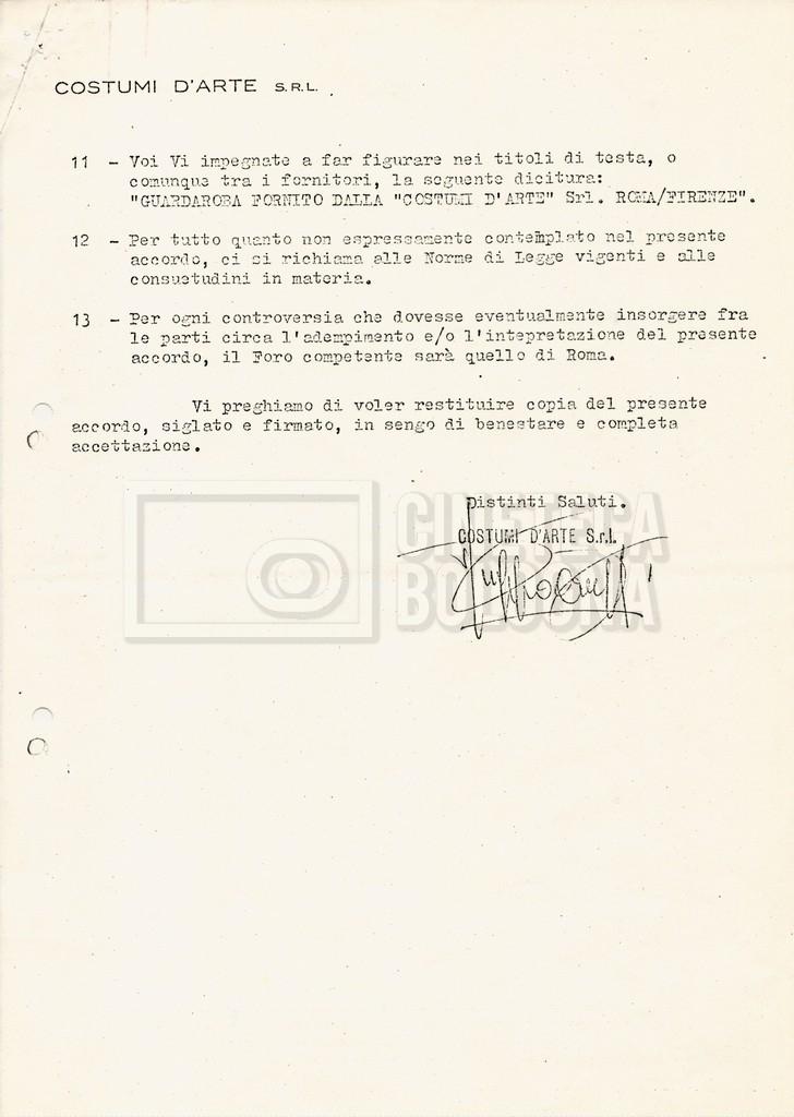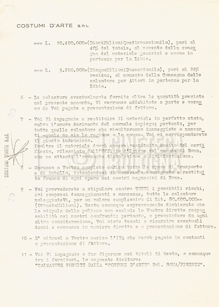 – Carteggio sulla fornitura di calzature con la ‘Costumi d’Arte s.r.l.’;