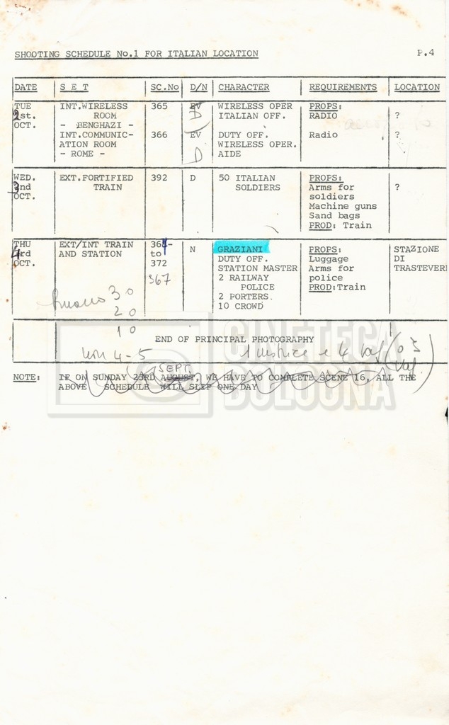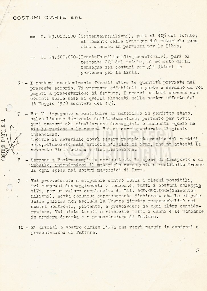 – Istruzioni di viaggio per Roma e per la Libia per la troupe estera;