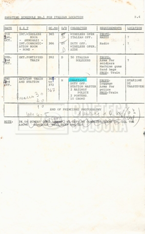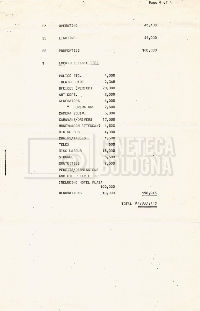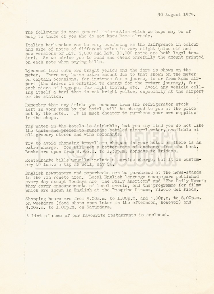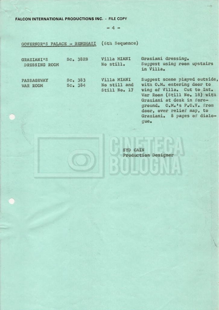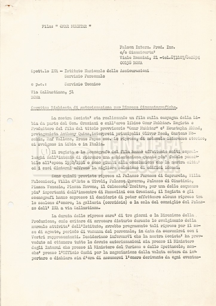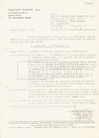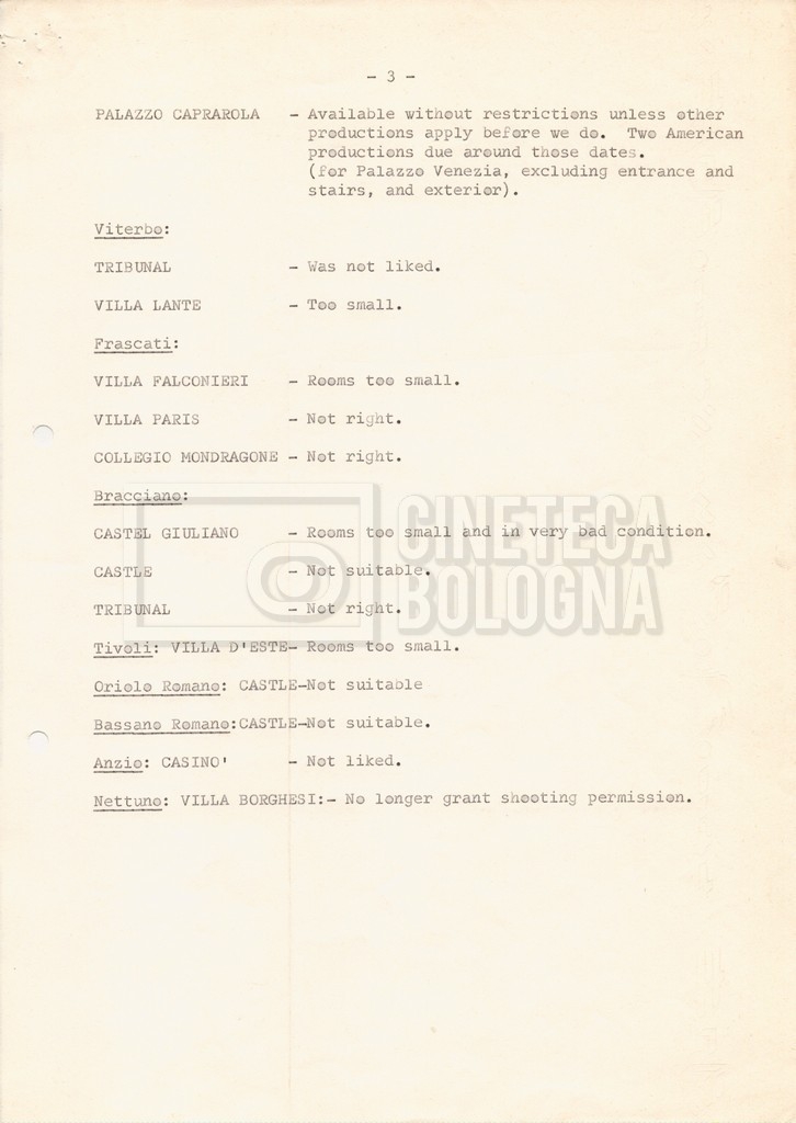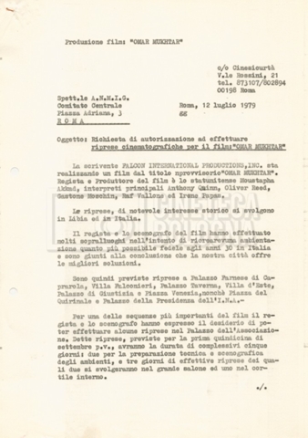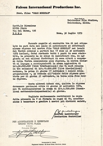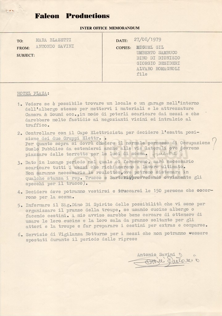 – Una lettera a Roy Stevens che illustra le procedure di produzione del il film in Italia;