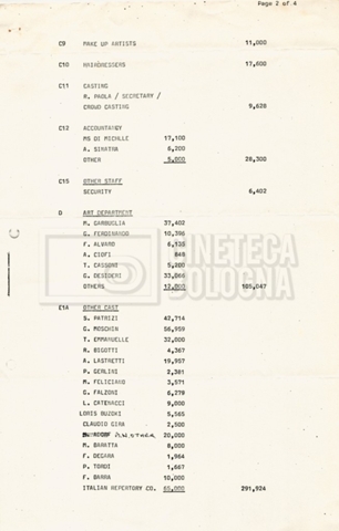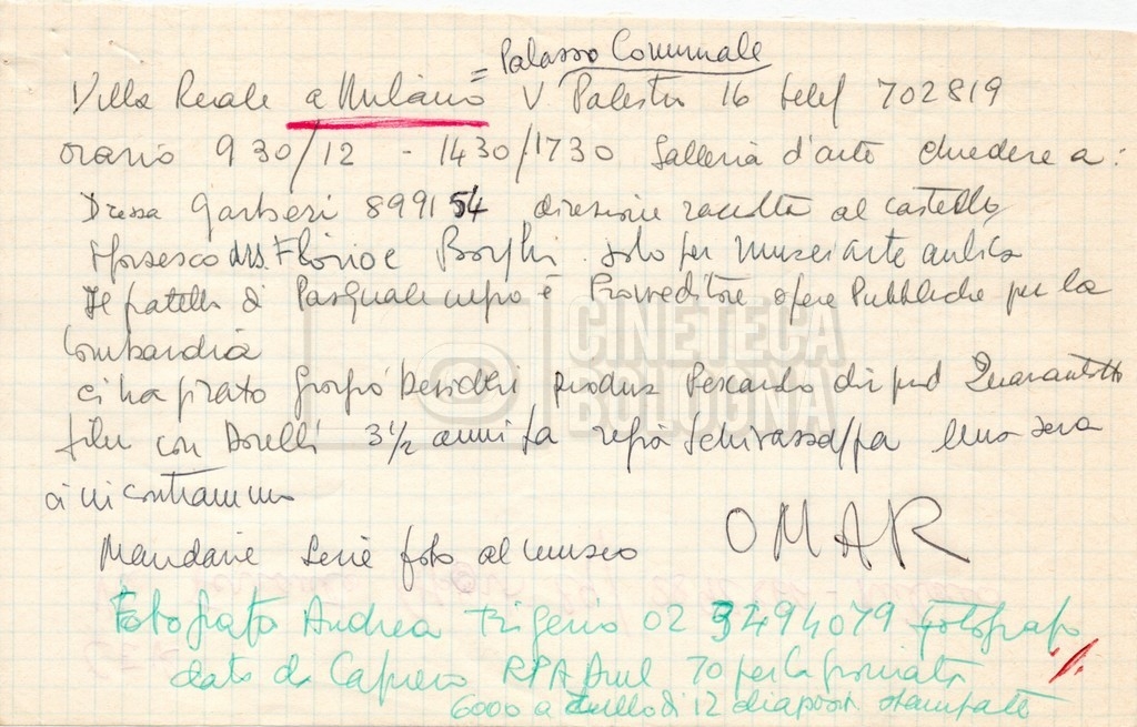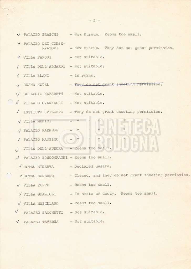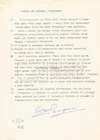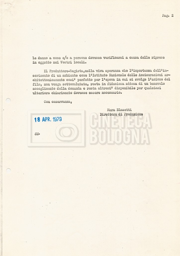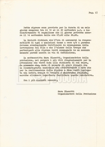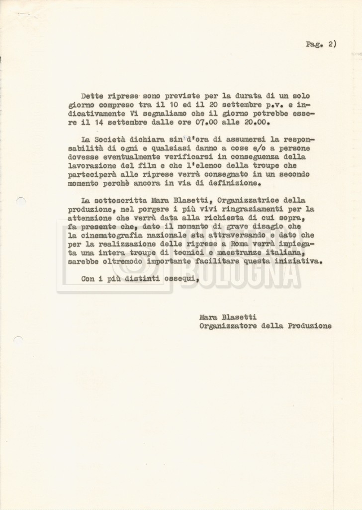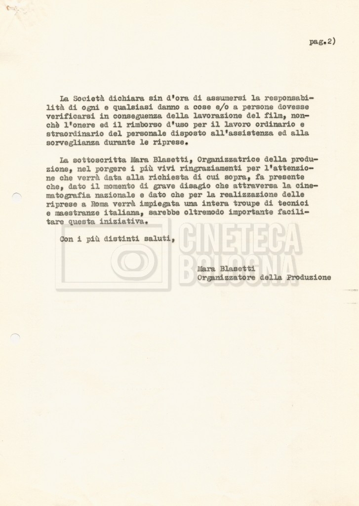 – Un invito a Mara Blasetti per la celebrazione della fine del lavoro di pre-produzione;