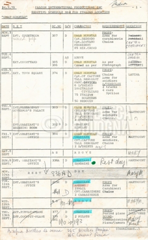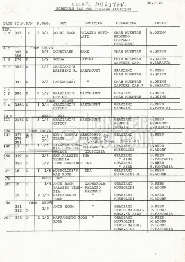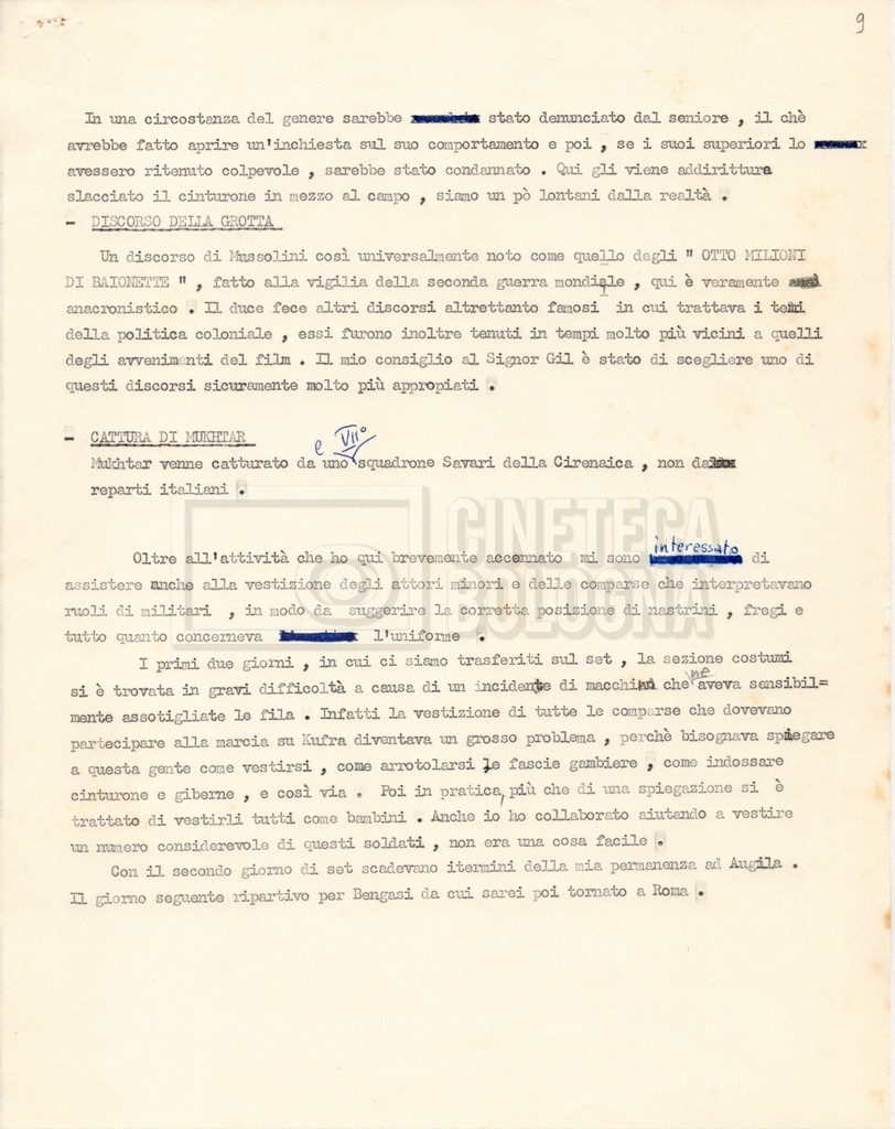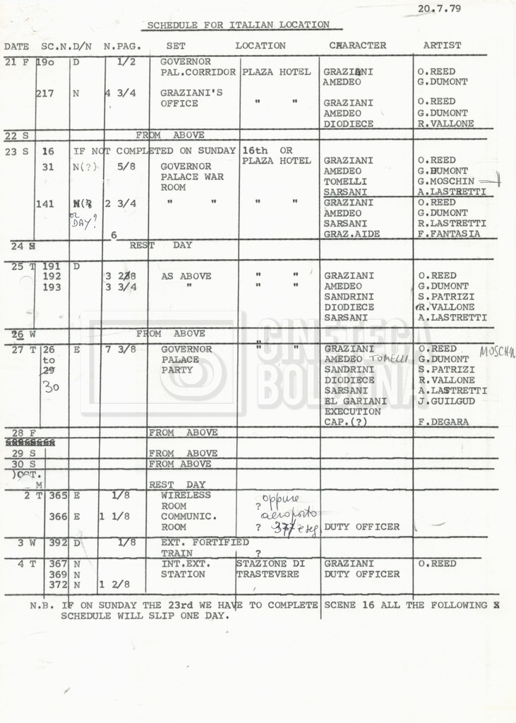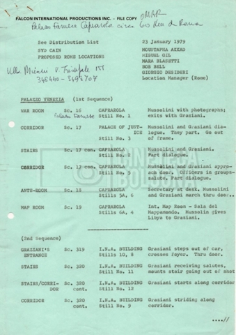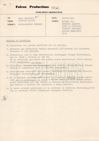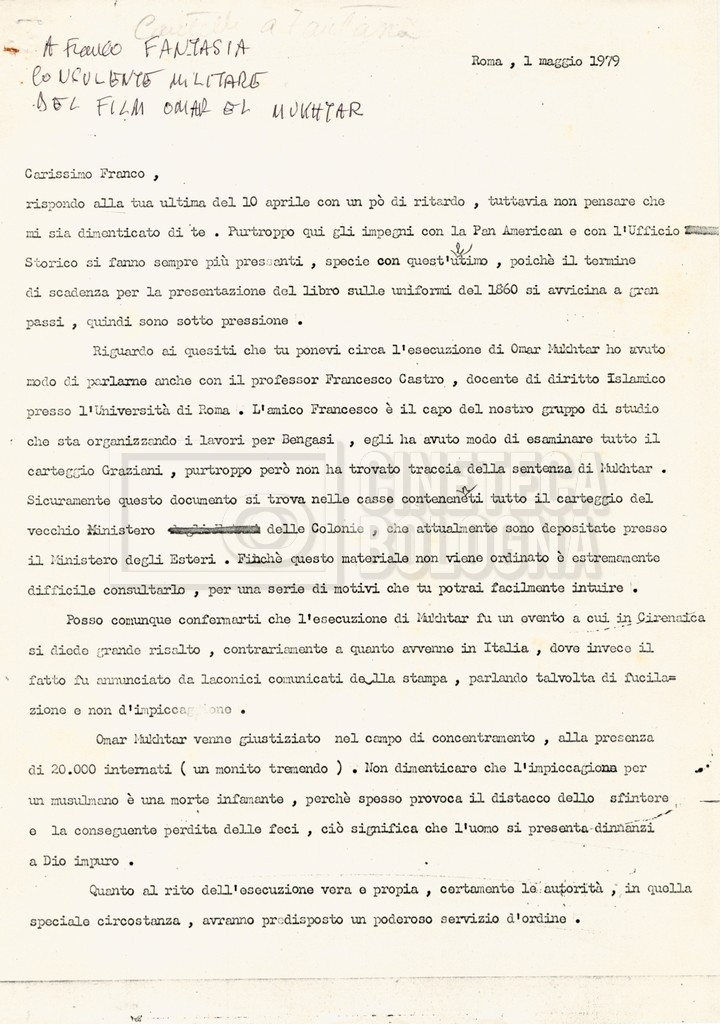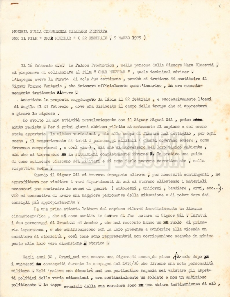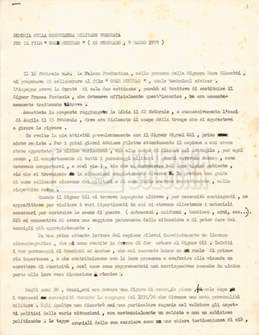 – Una memoria di Franco Fantasia sulla consulenza militare al film (22 febbraio – 9 marzo 1979);