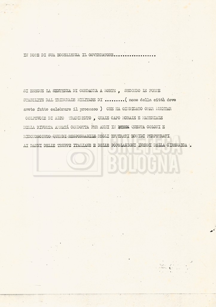 – Una consulenza sulla sentenza di condanna di Omar el Mukhtar;