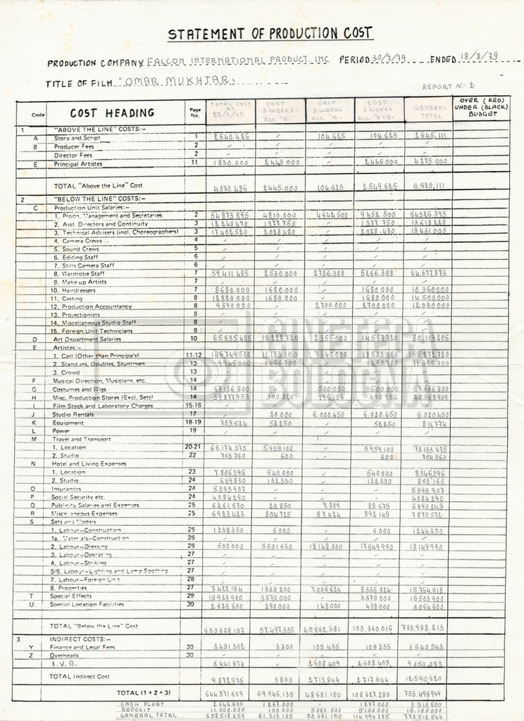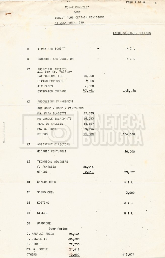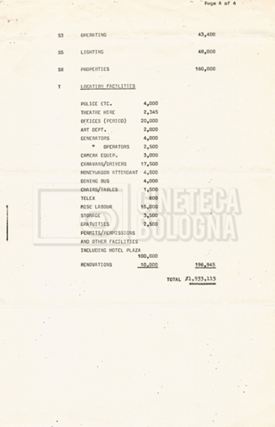 – Uno stato dei costi di produzione dal 30 luglio 1979 al 18 agosto 1979;