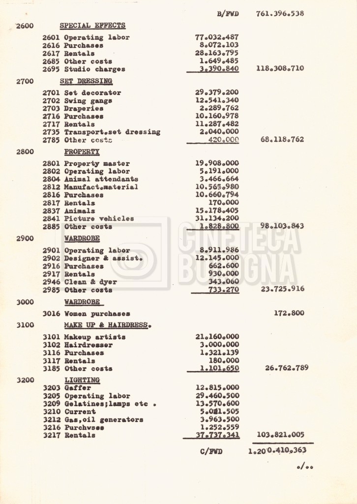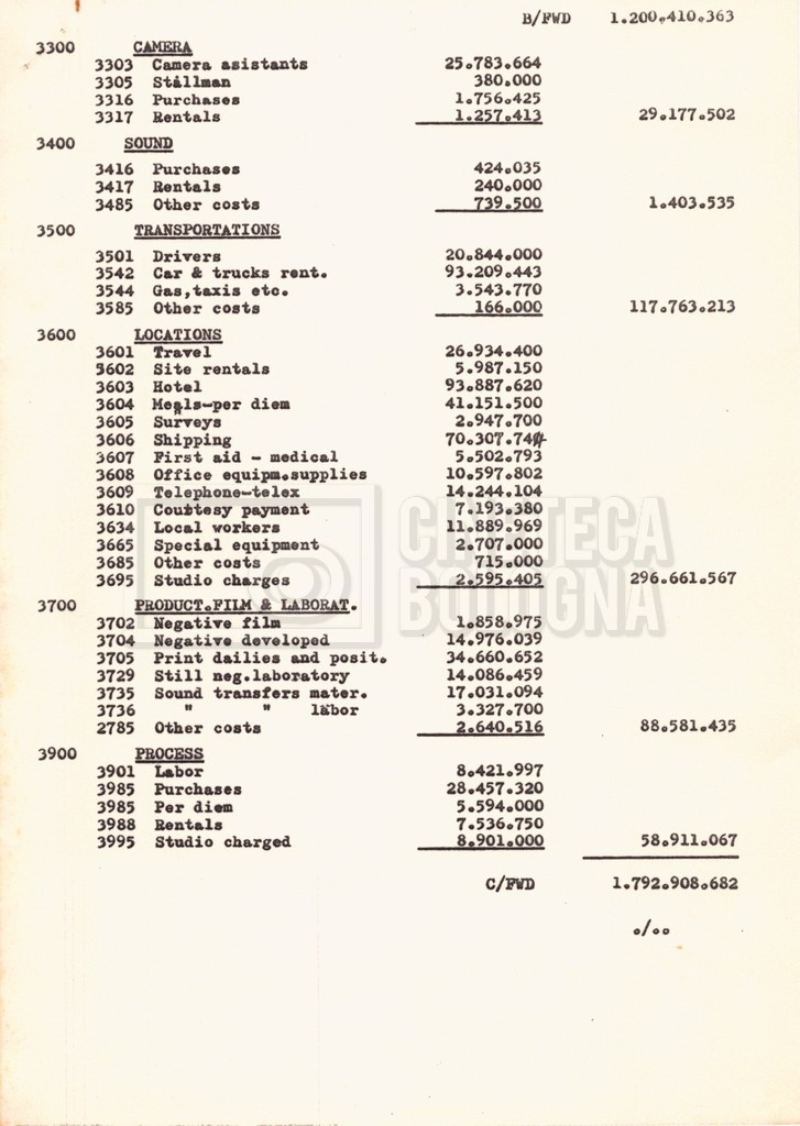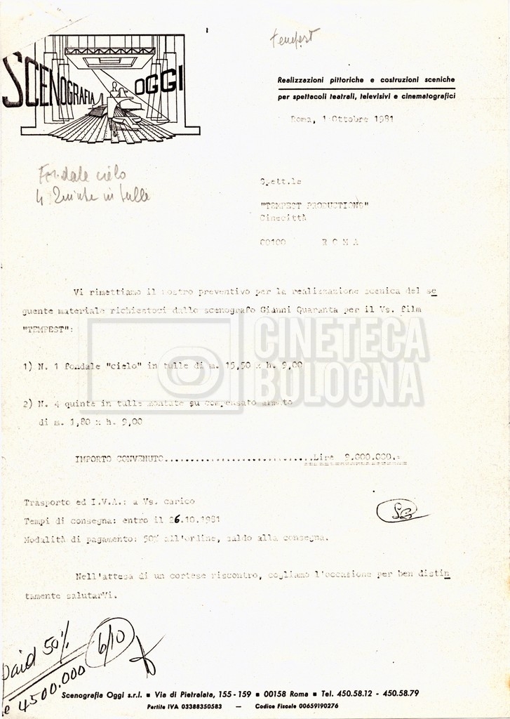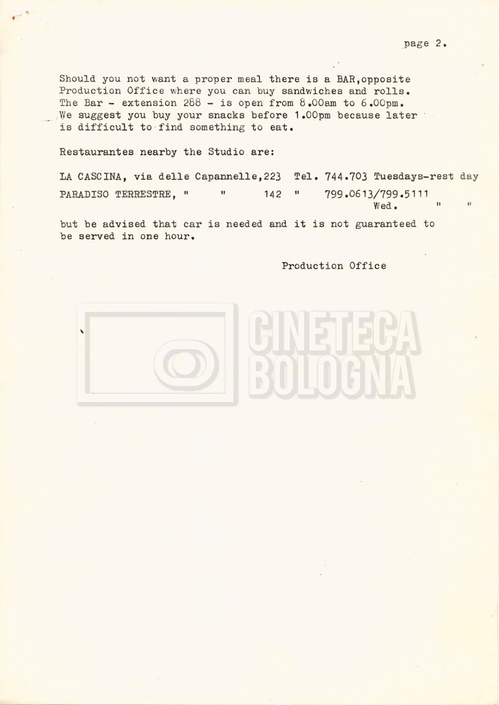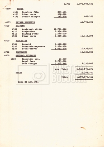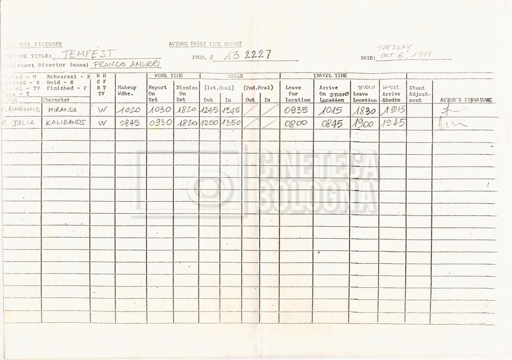 – Una lista della troupe italiana (“Italian crew list”) (08 luglio 1981);