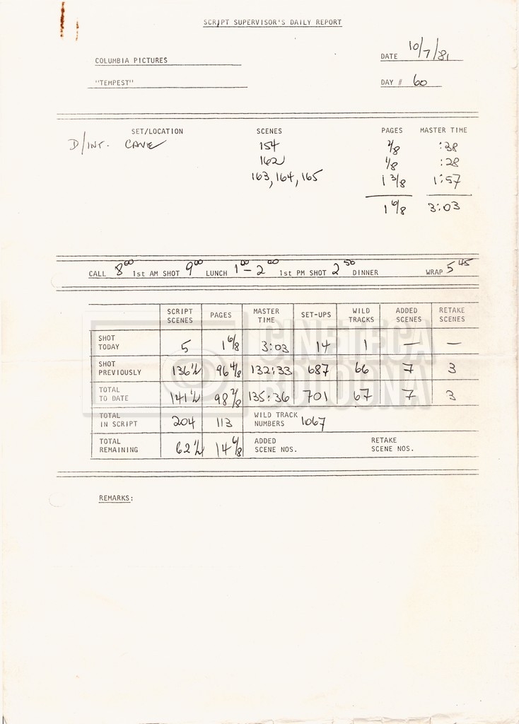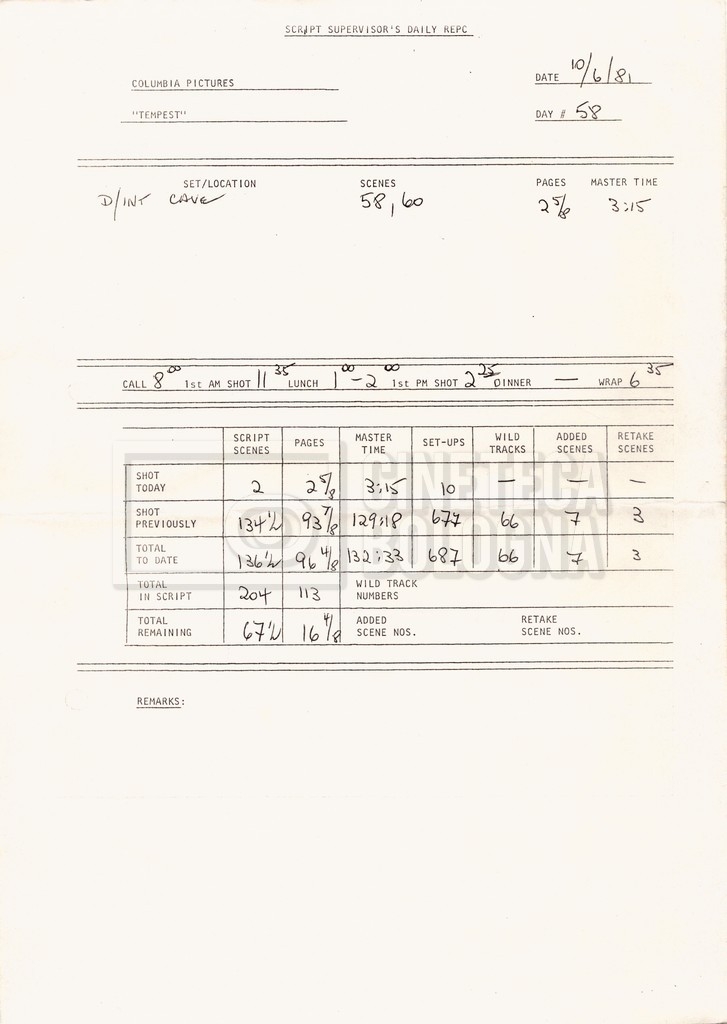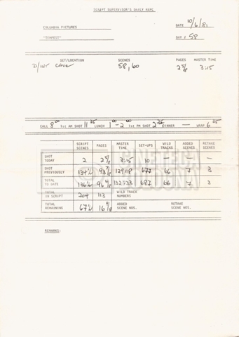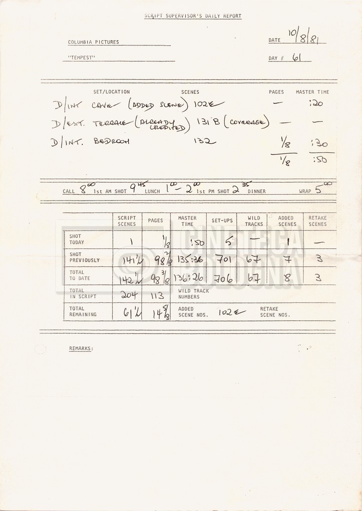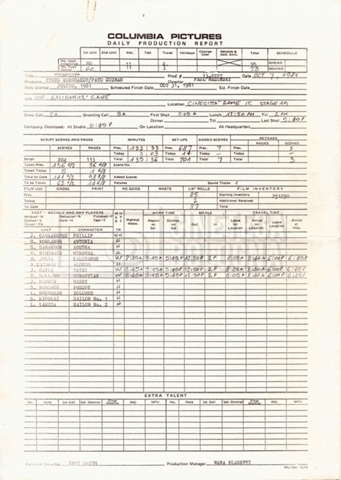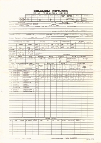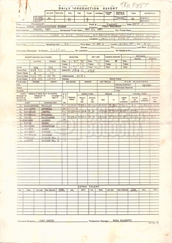 – Un bollettino giornaliero della produzione (“Daily production report”) (08 ottobre 1981);