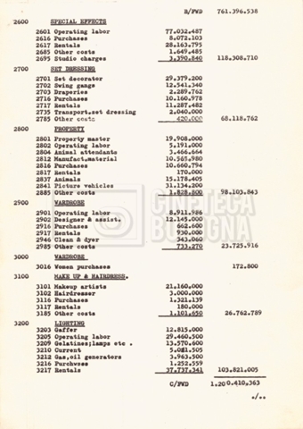 – Un preventivo dei costi della troupe negli USA (“Direct picture cost-budget”);