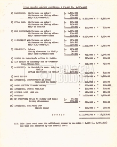 – Appunti mss. sulle location delle riprese;