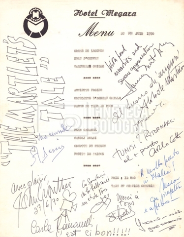 – Un menu dell’Hotel Megara con gli autografi del cast (27 giugno 1970);