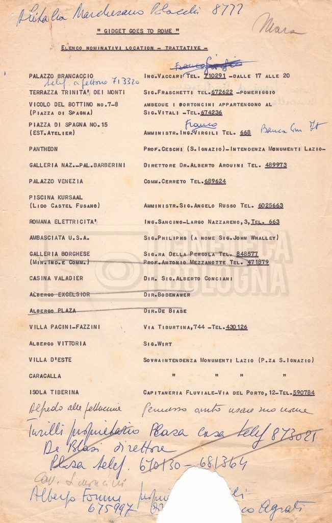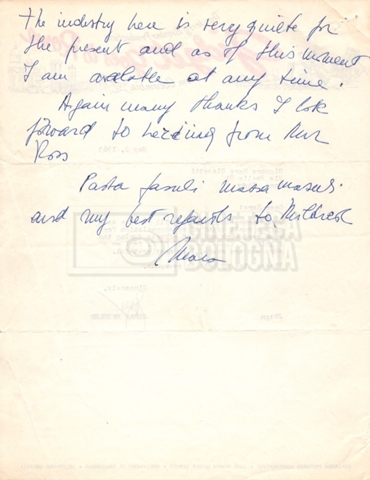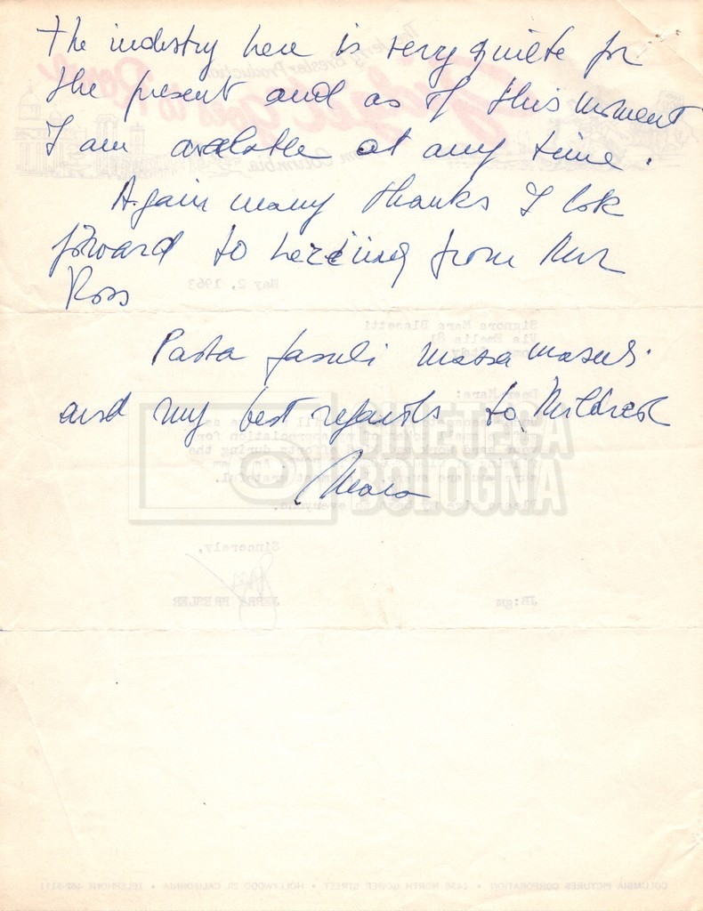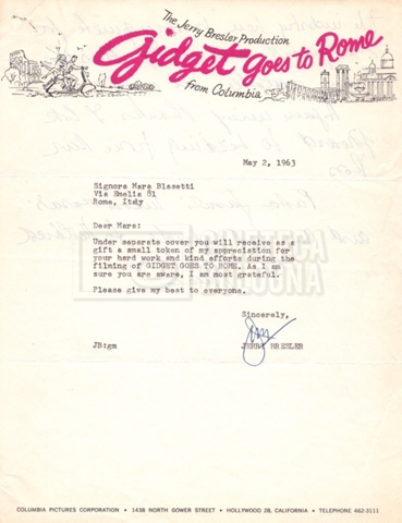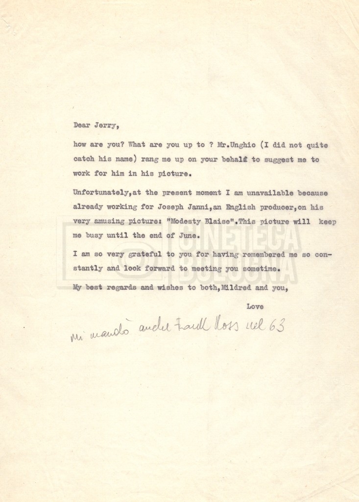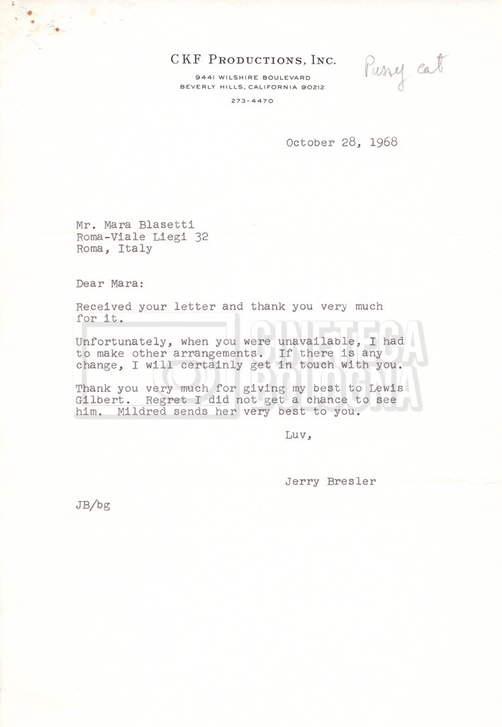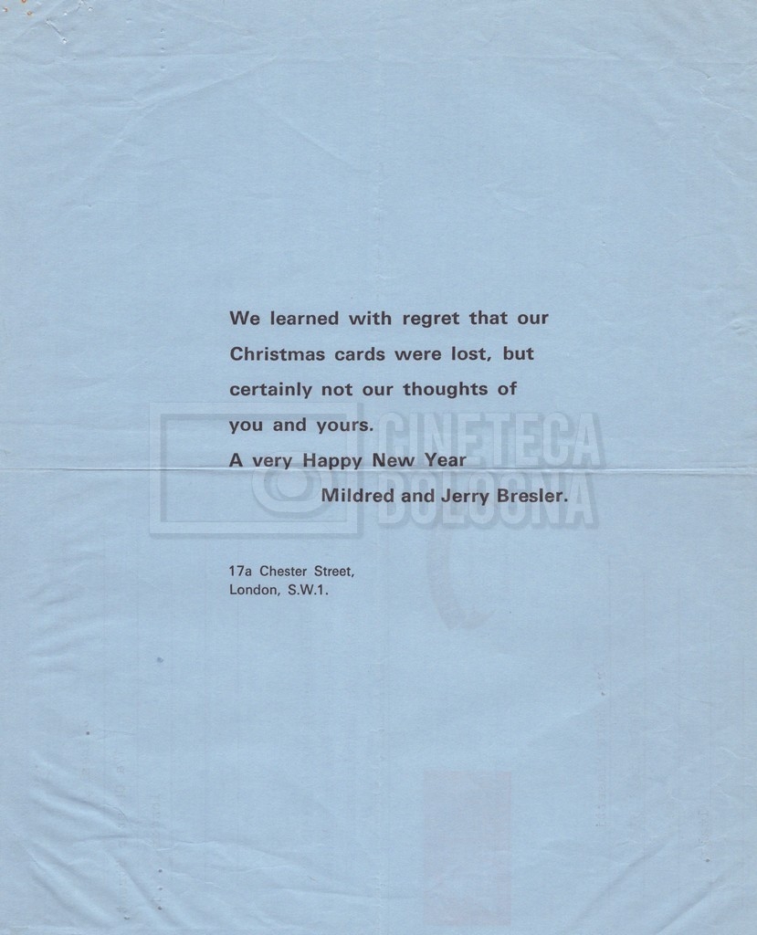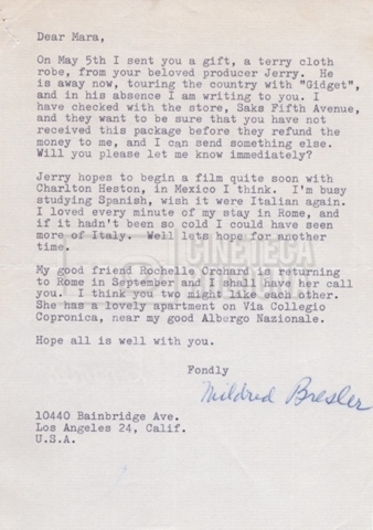– Carteggio tra Mara Blasetti, Jerry Bresler, il produttore, e la moglie Mildred (1963 – 1968 ca).