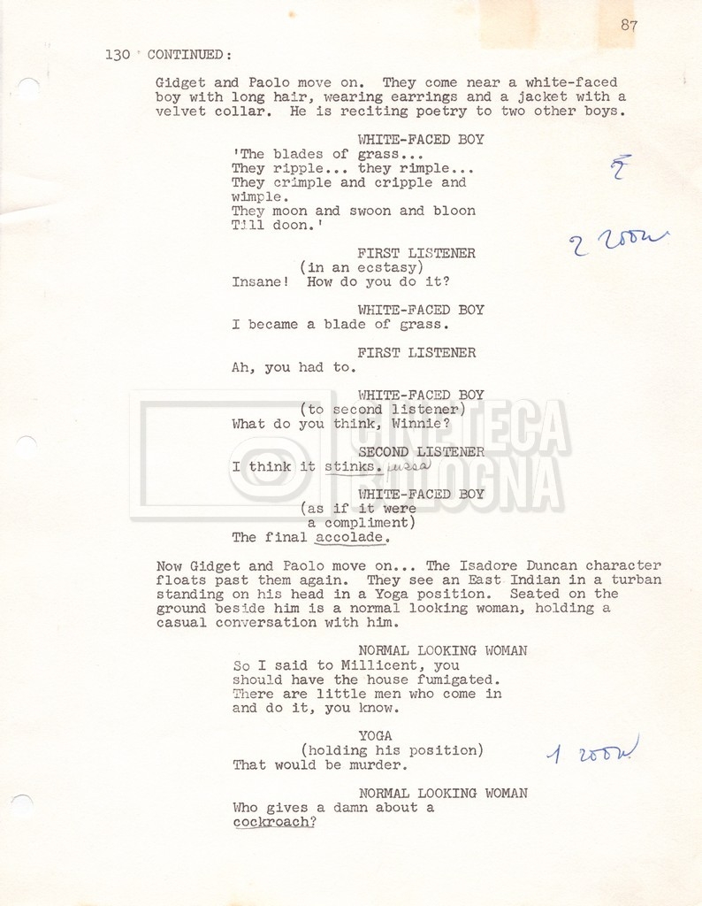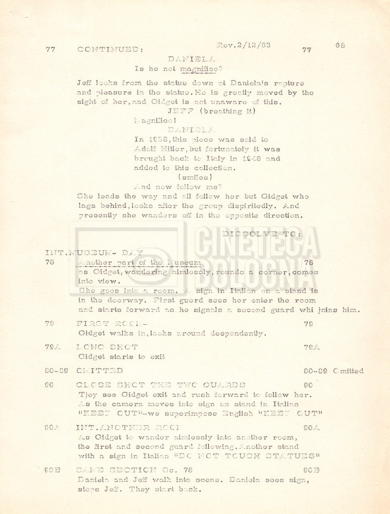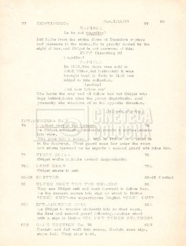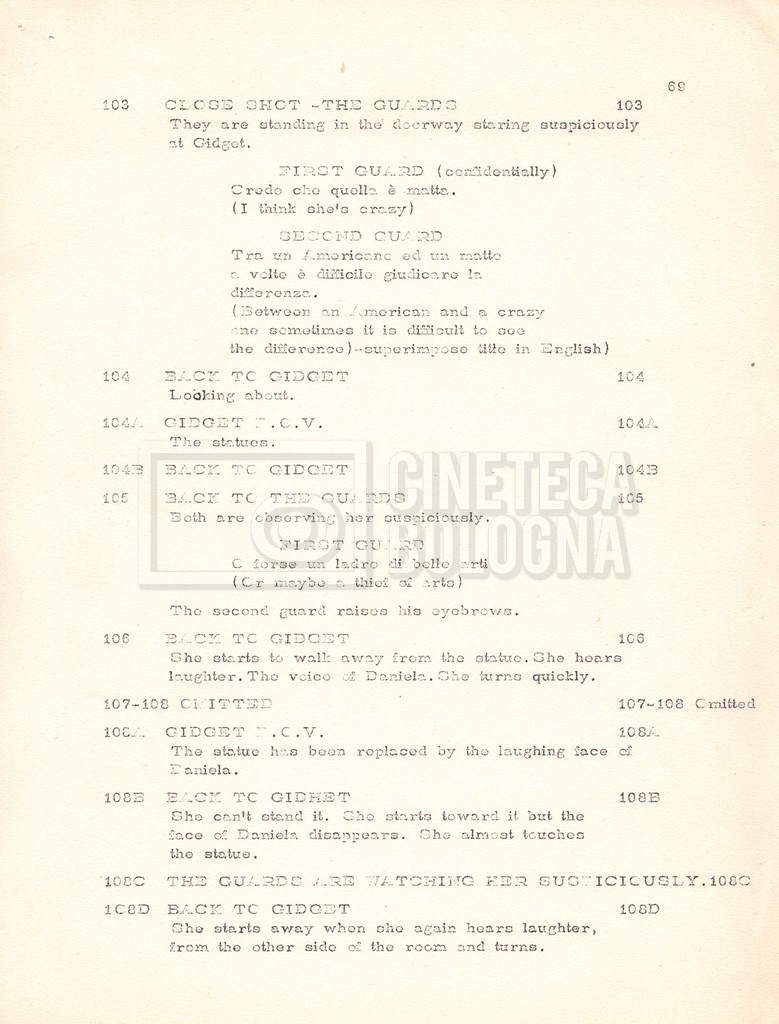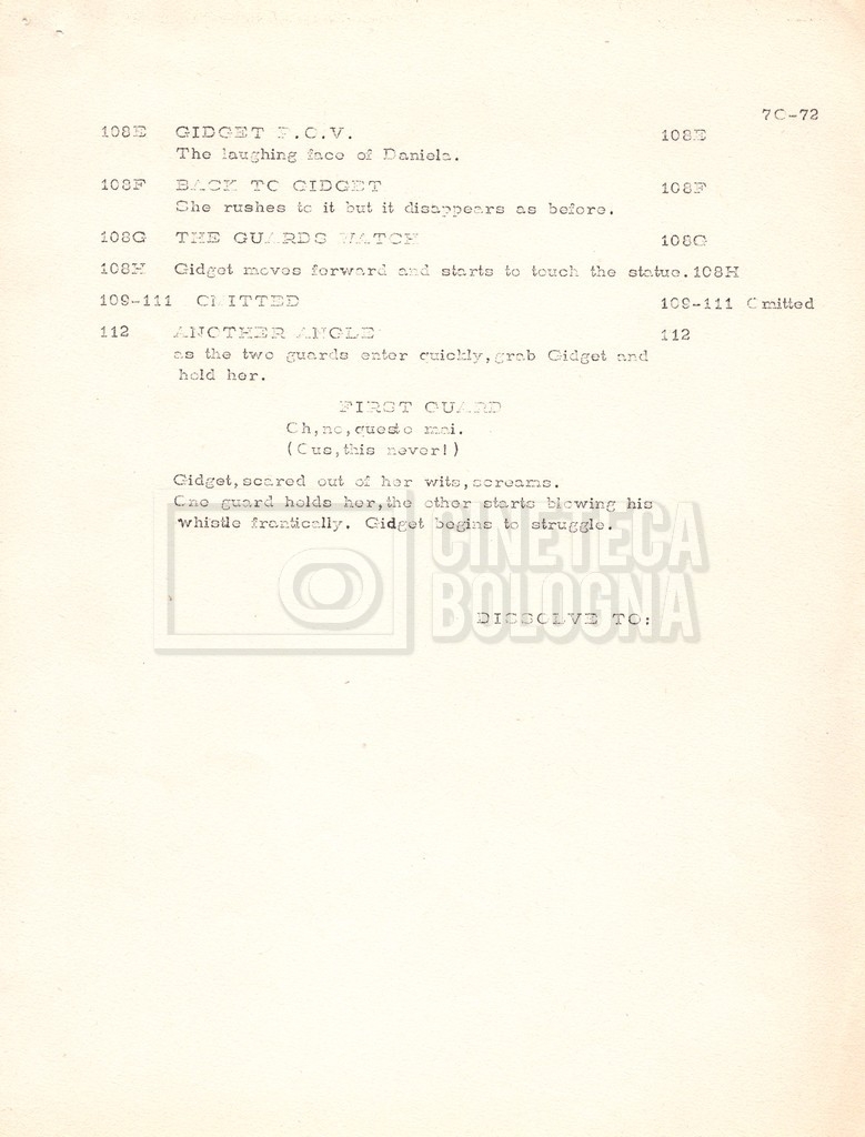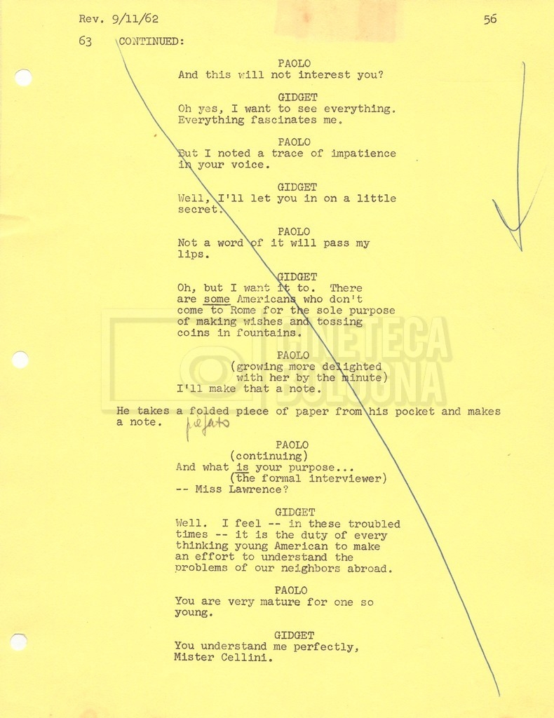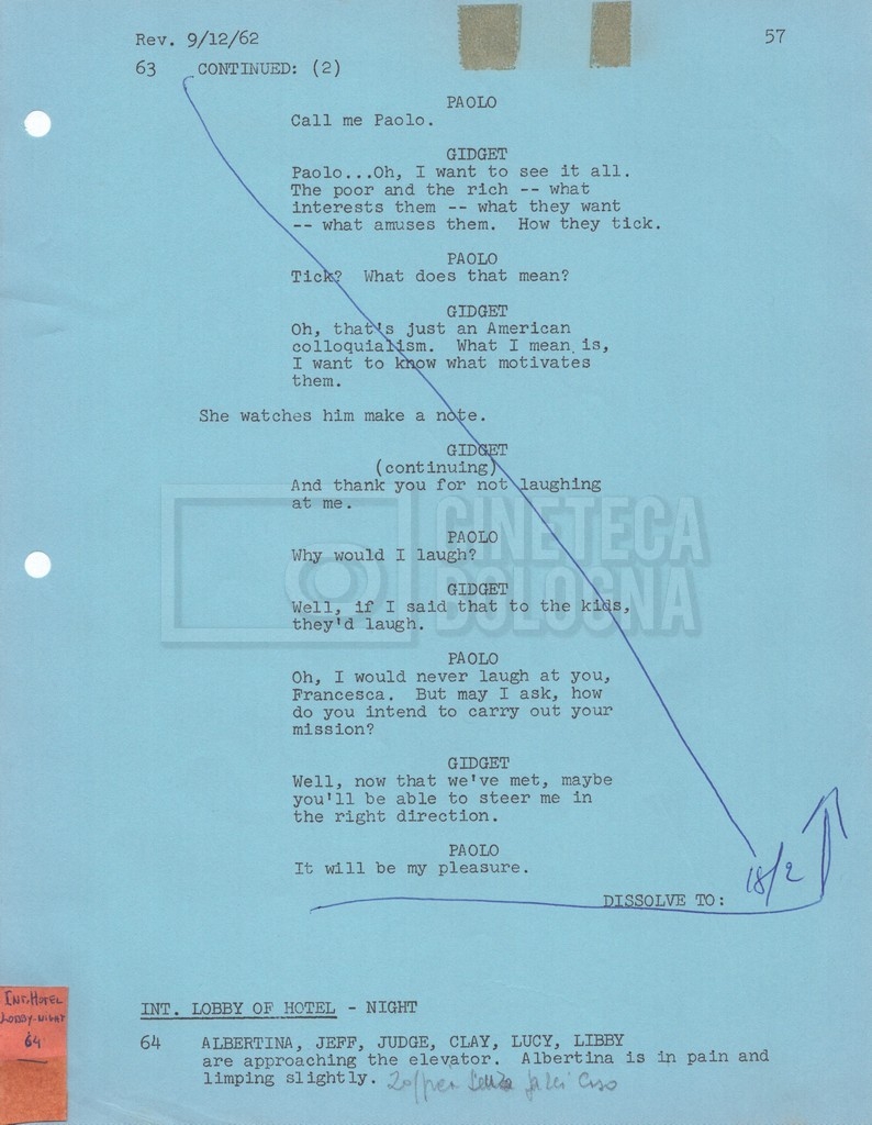 Torna alla banca dati “Gidget Goes to Rome” Documento storico Fondo Mara Blasetti / “Film Mara girati” / Gidget Goes to Rome Ambiti e contenuto Gli autori sono Katherine Eunson e Dale Eunson. Si segnala, inoltre, in allegato alla sceneggiatura, un promemoria con alcuni cambiamenti apportati alla stessa (13 febbraio 1963). Informazioni archivistiche Cronologia: 08 settembre 1962 – 13 febbraio 1963 Numero di ordinamento definitivo: 1.9.3 Numero di ordinamento provvisorio: M1.3 Descrizione fisica: volume Immagini digitalizzate Informazioni sul film titolo originale: Gidget Goes to Rome altri titoli: Gidget a Roma regia: Wendkos, Paul anno: 1963 paese di produzione: Stati Uniti lingua principale: inglese altre lingue: italiana Documenti correlati Vai alla banca dati DOCUMENTO STORICO “Cast e unit lists” DOCUMENTO STORICO Gestione delle riprese e corrispondenza