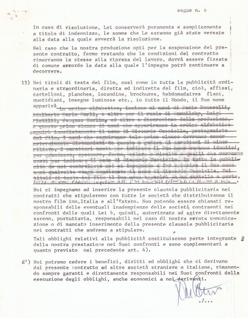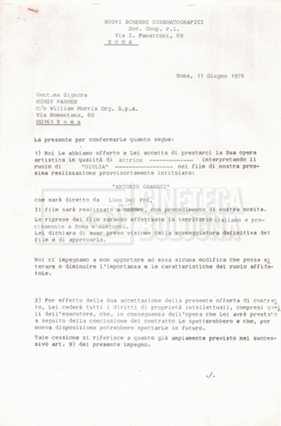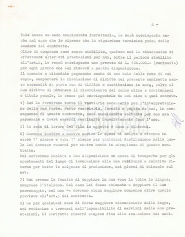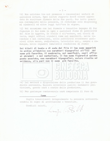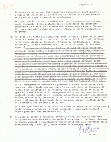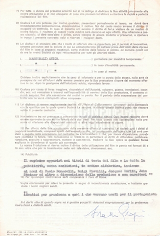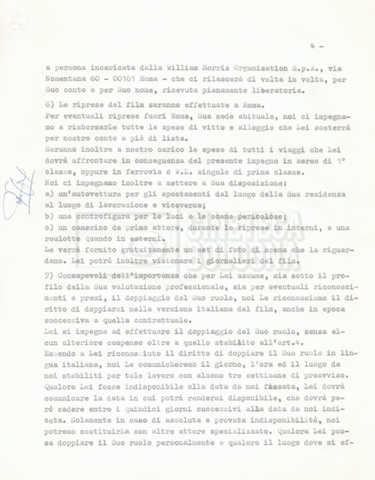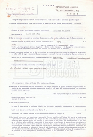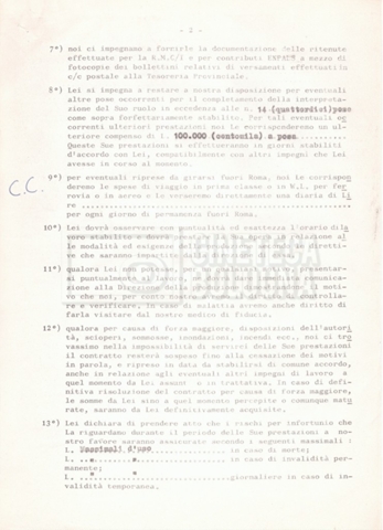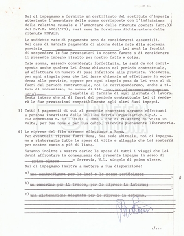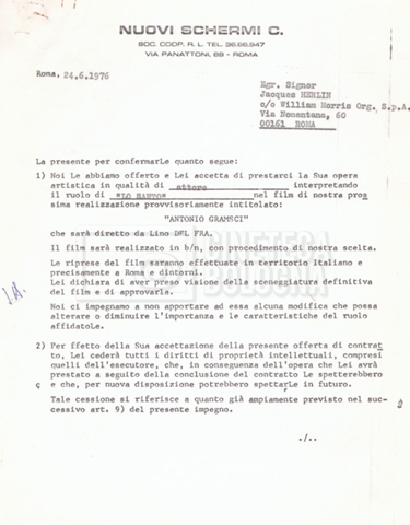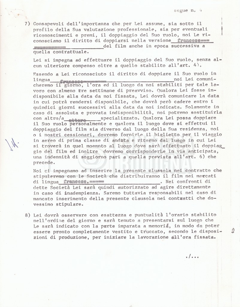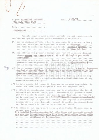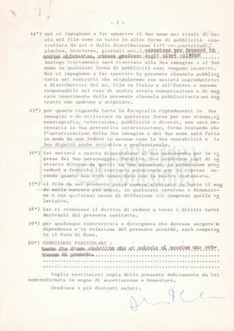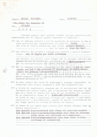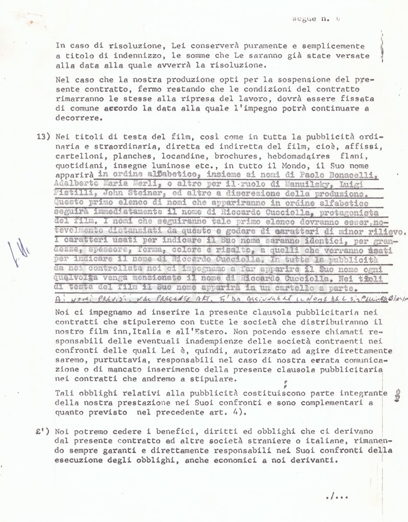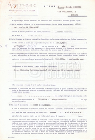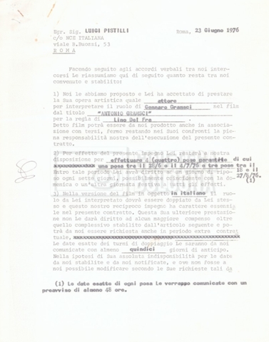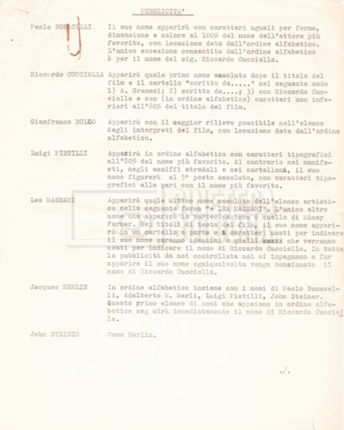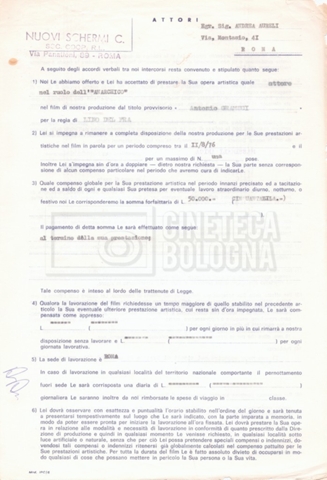 Si segnala che il doc. sciolto riguarda gli accordi con gli attori per la titolazione sullo schermo.