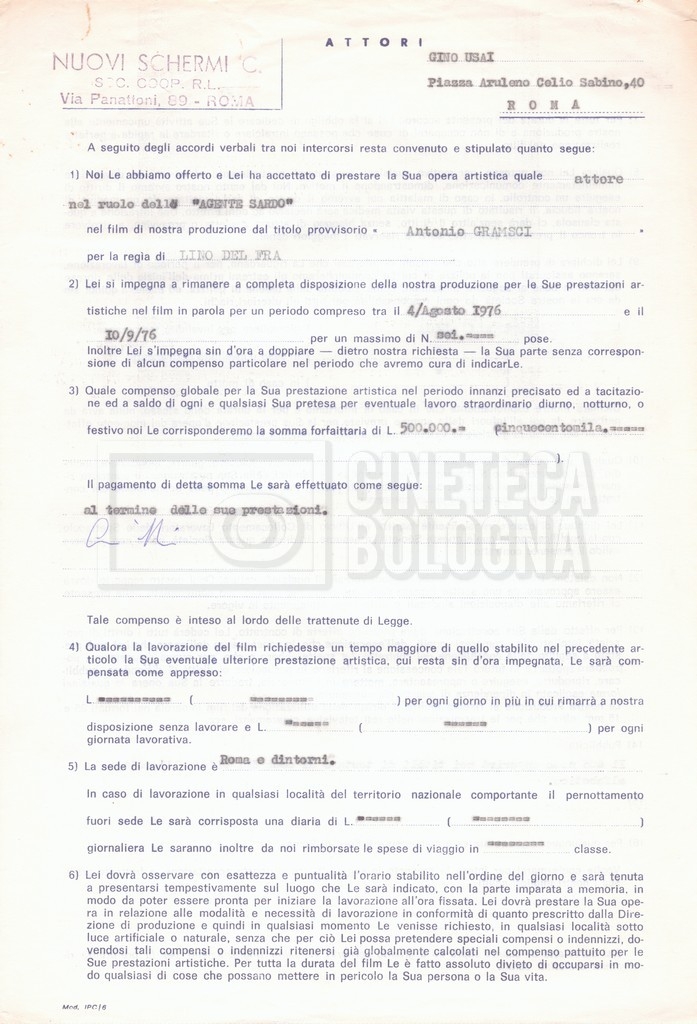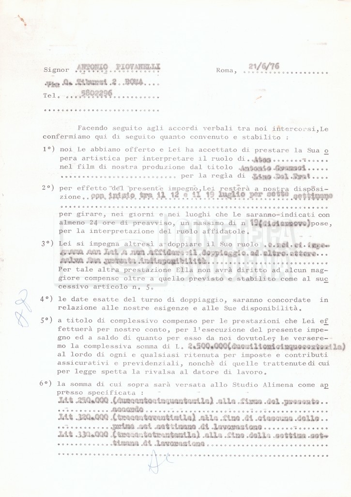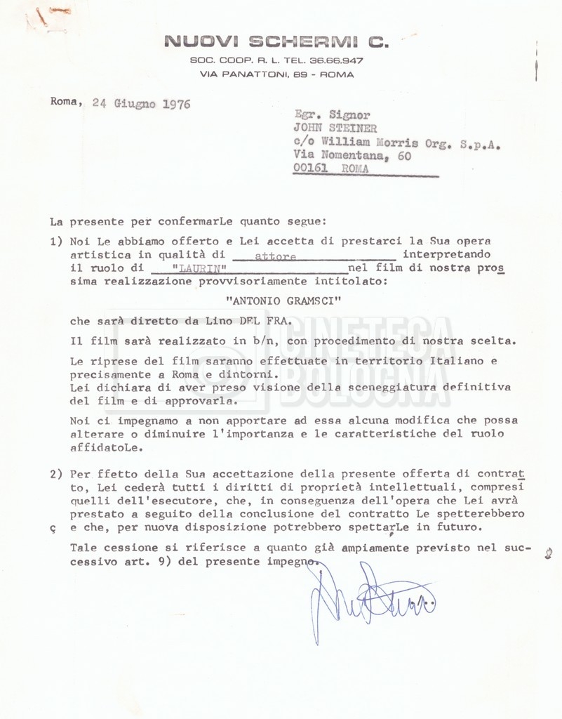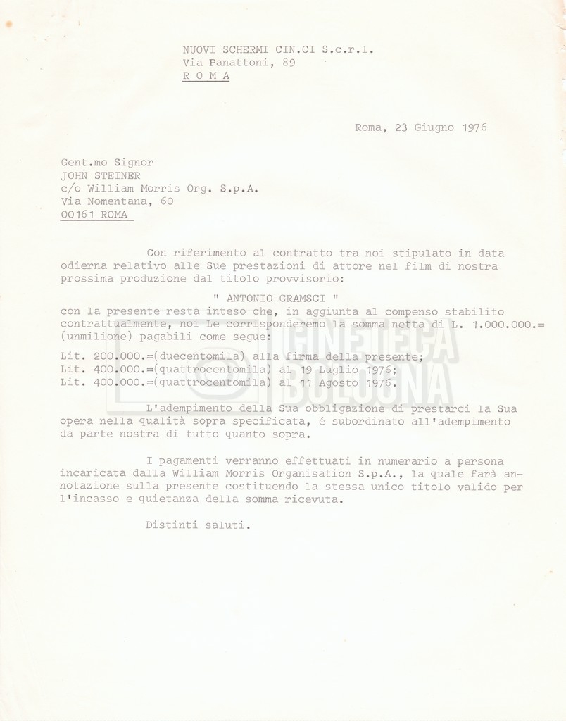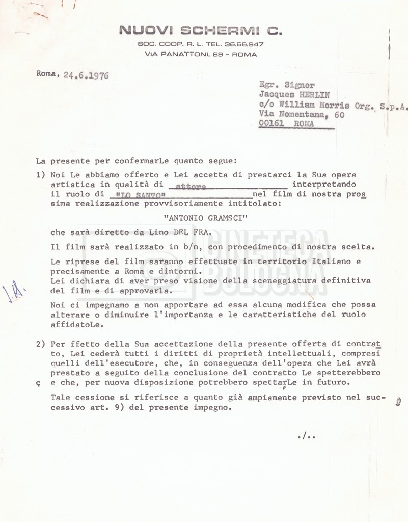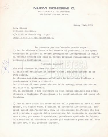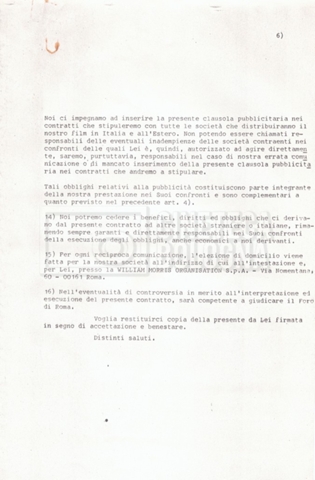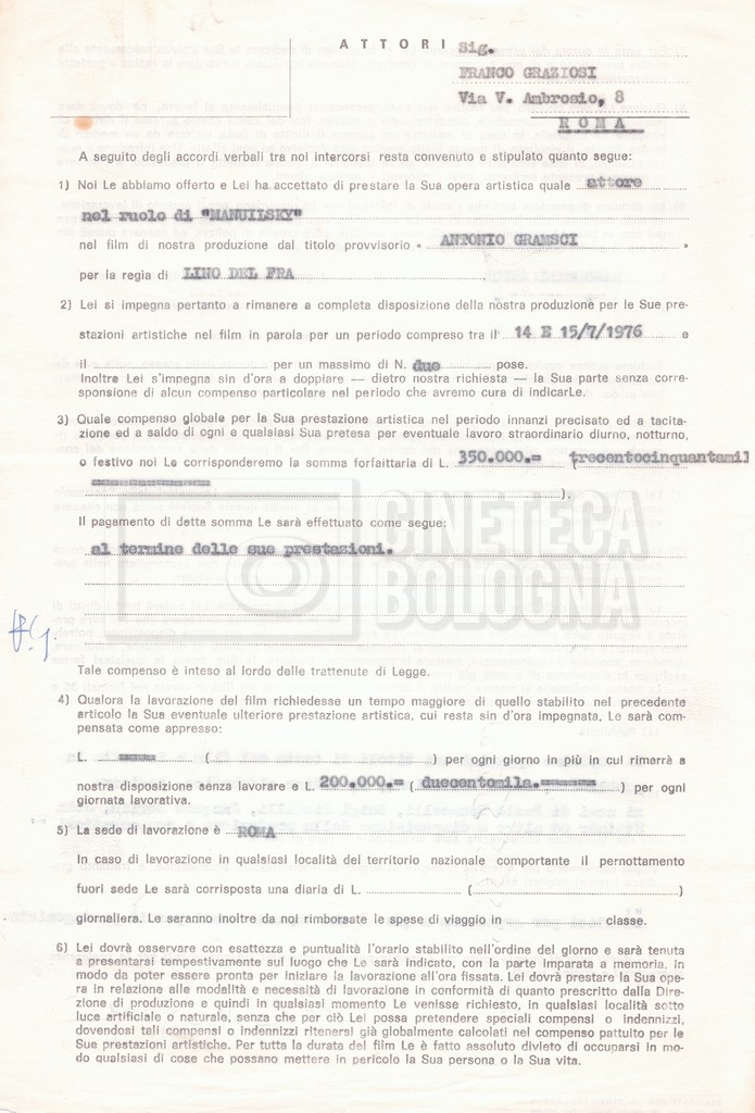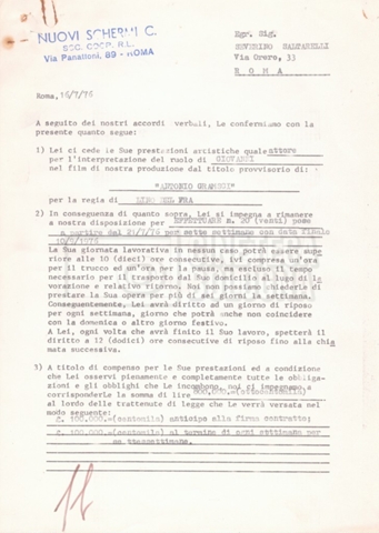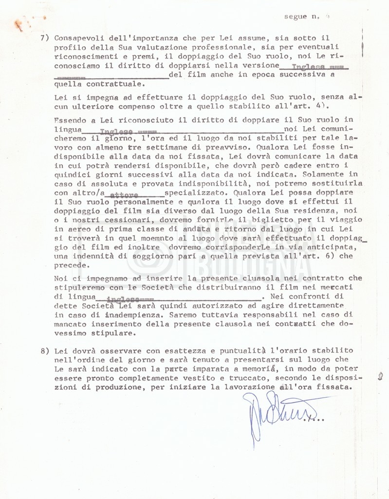 Si segnala che il doc. sciolto riguarda gli accordi con gli attori per la titolazione sullo schermo.