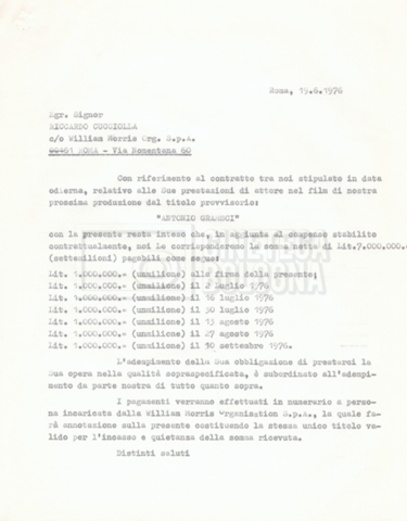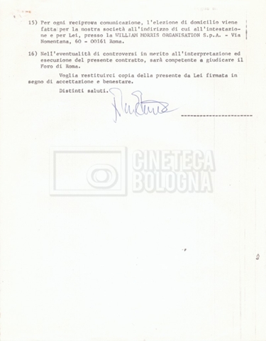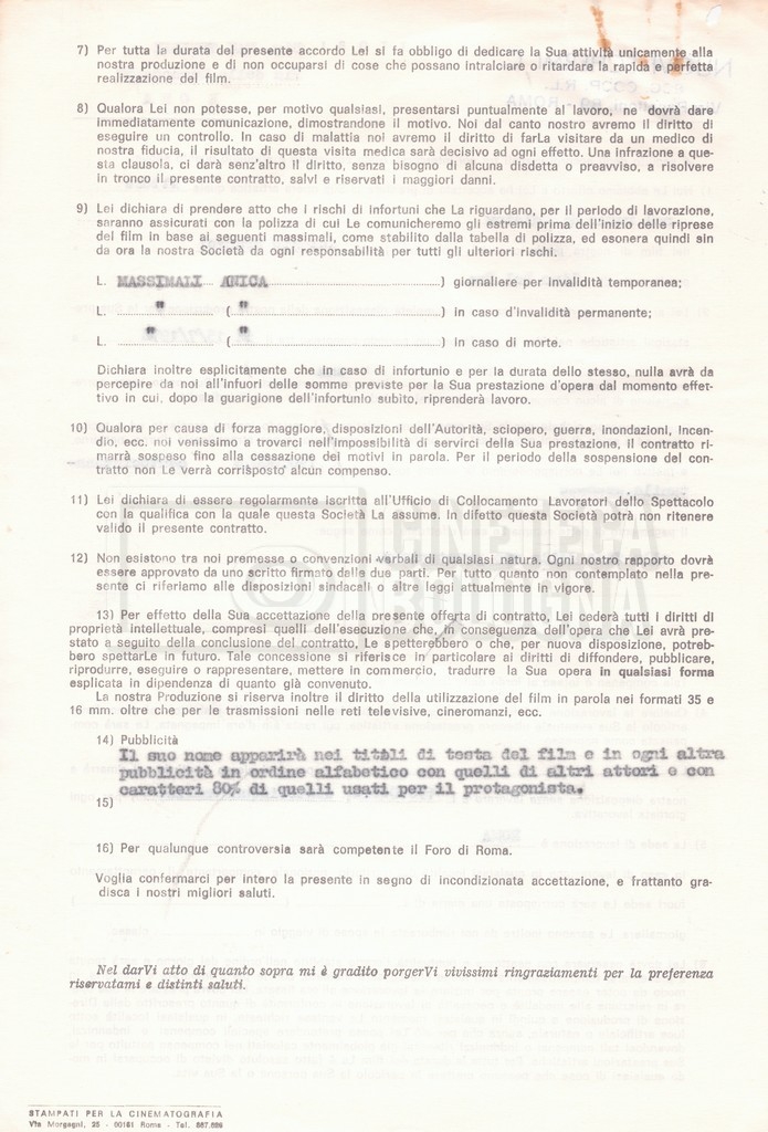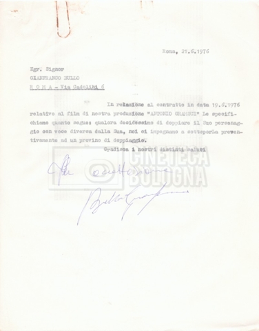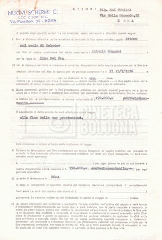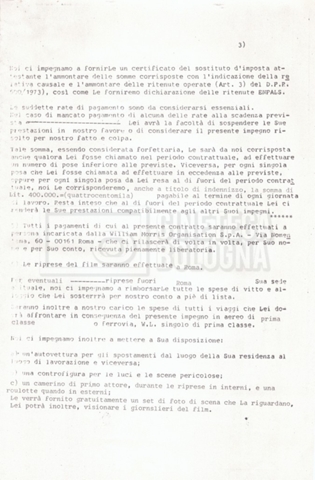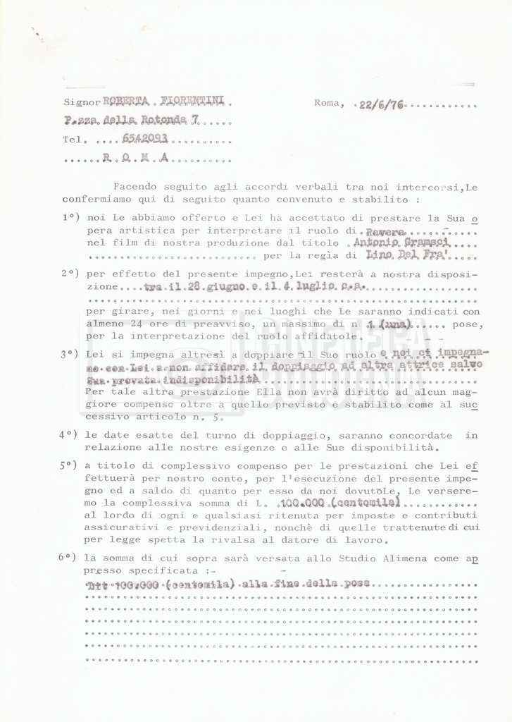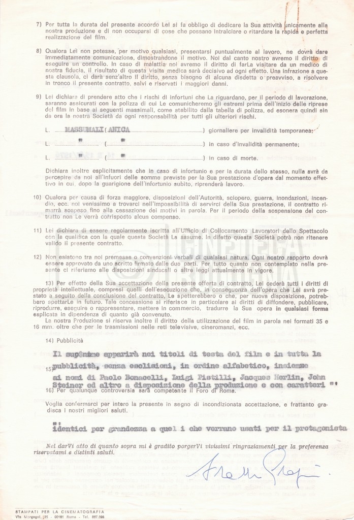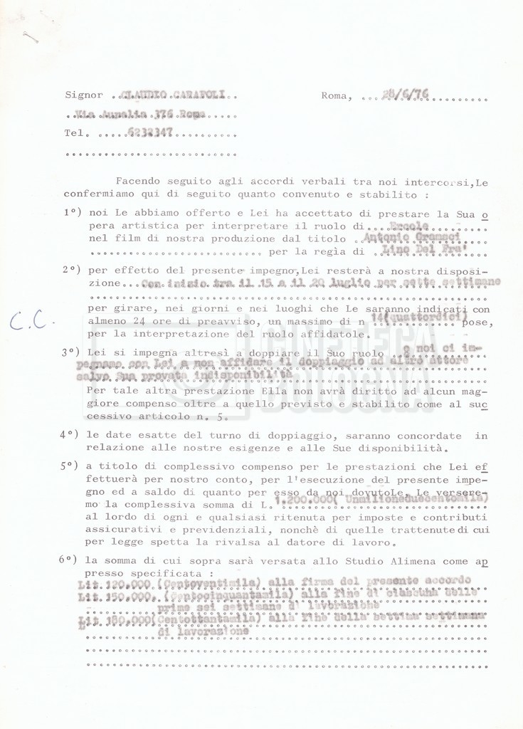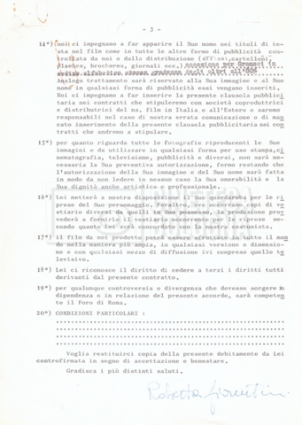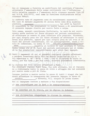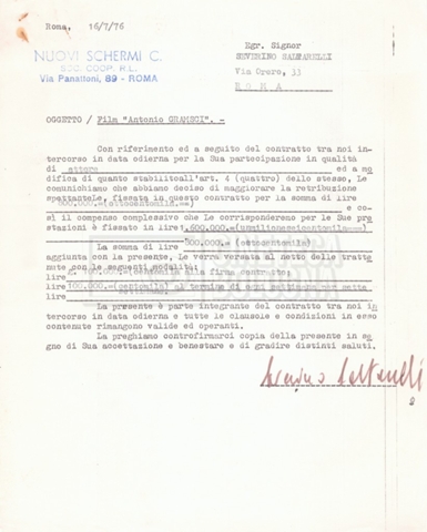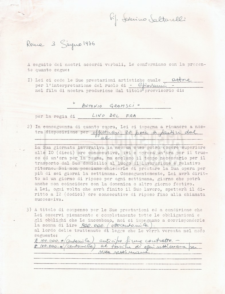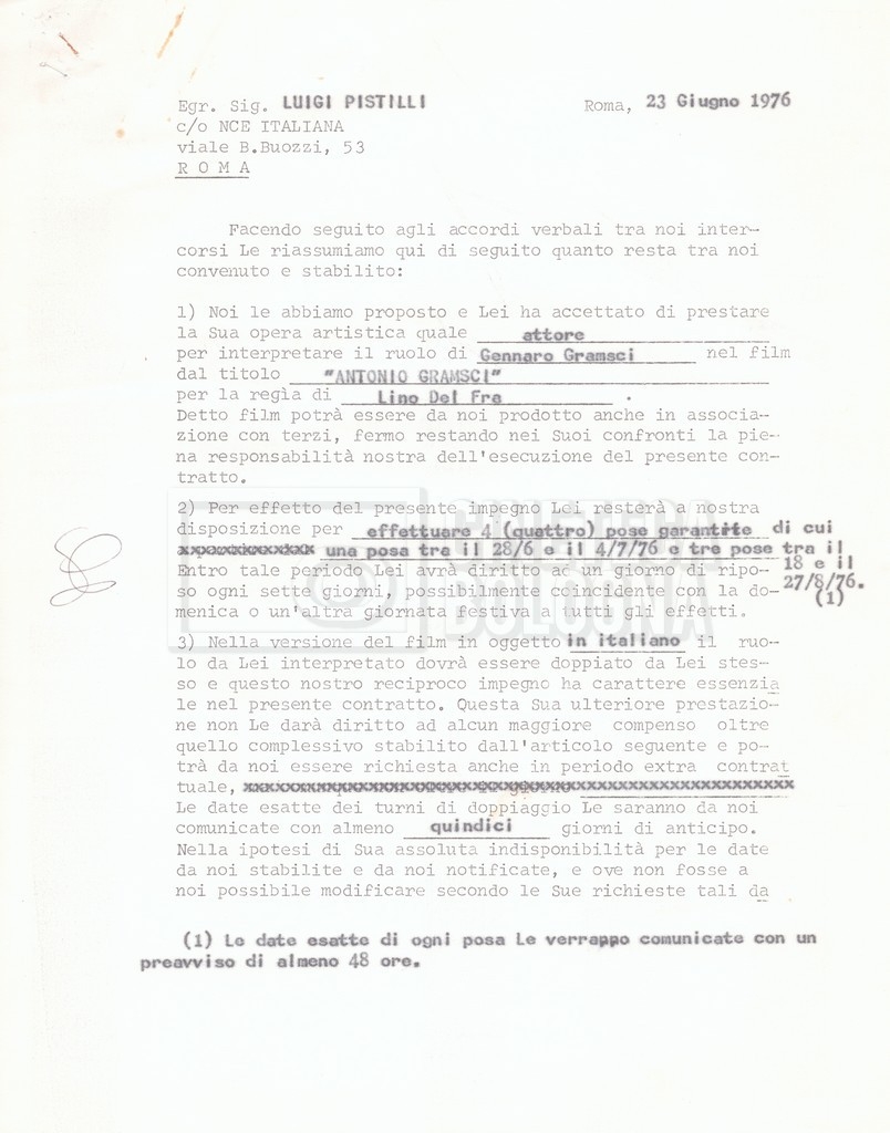 Si segnala che il doc. sciolto riguarda gli accordi con gli attori per la titolazione sullo schermo.
