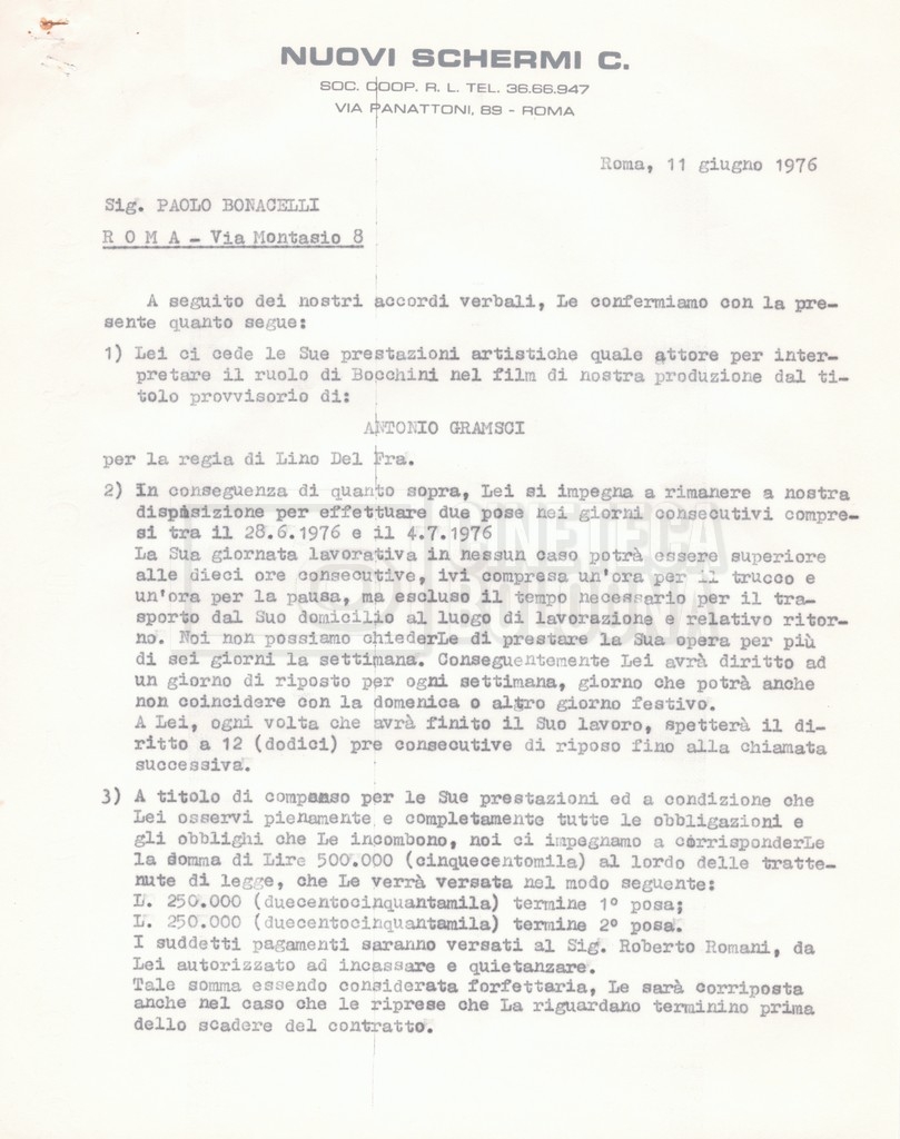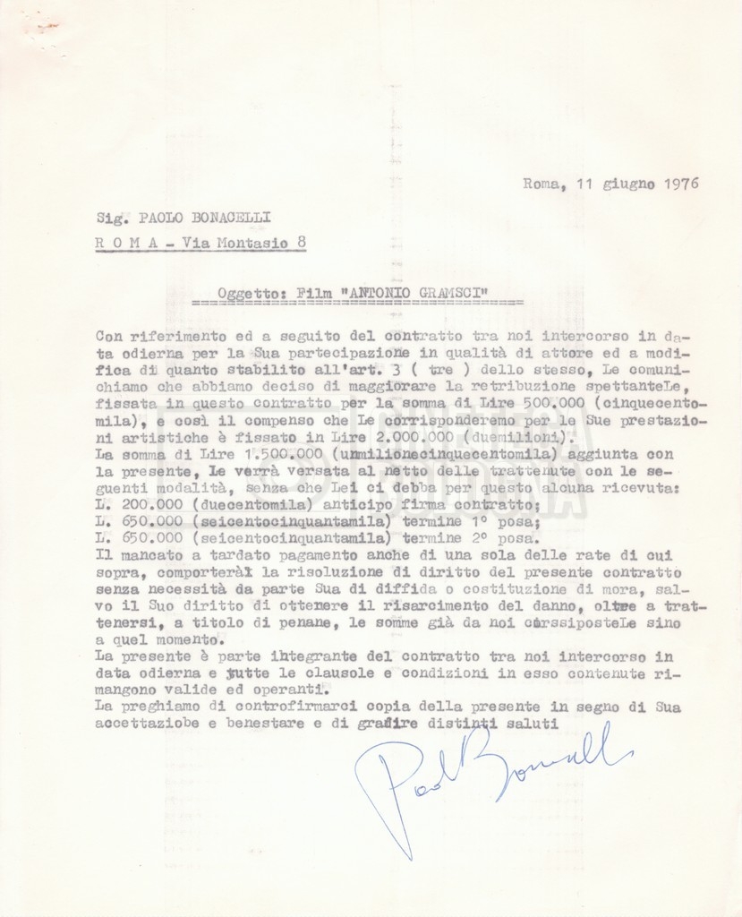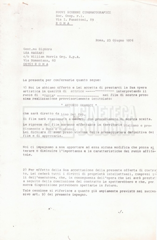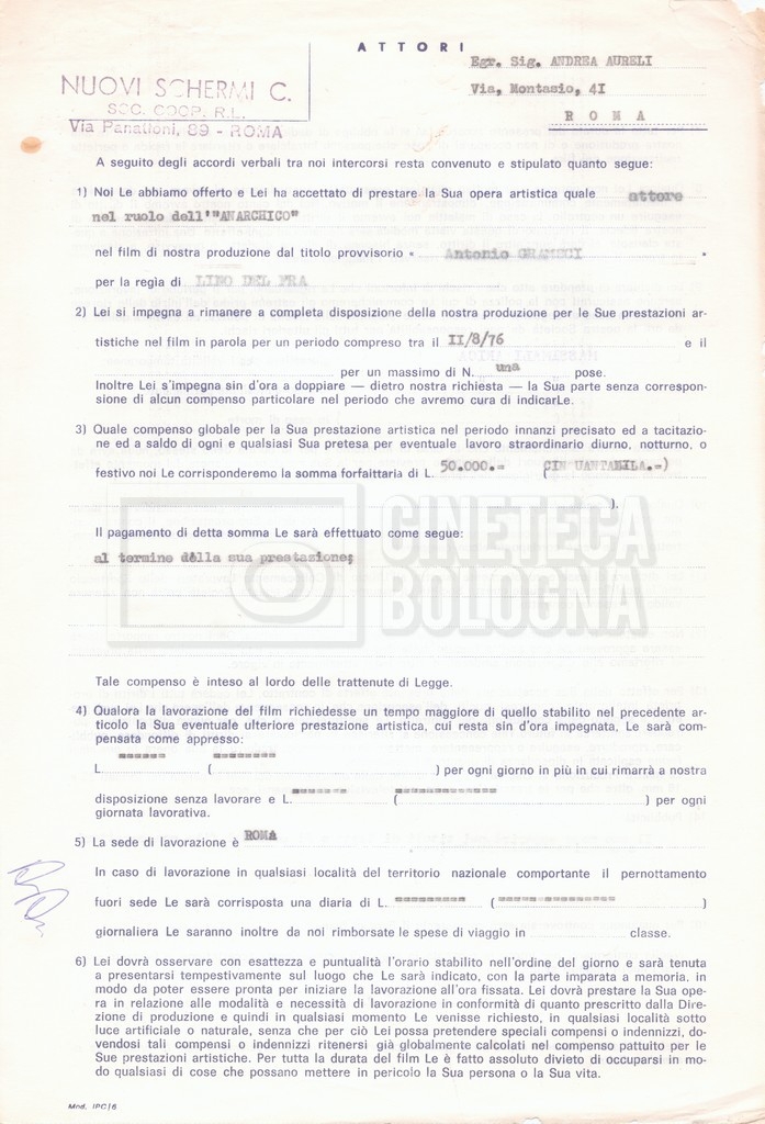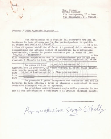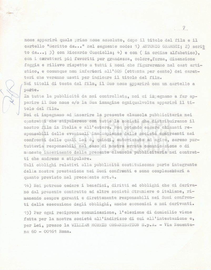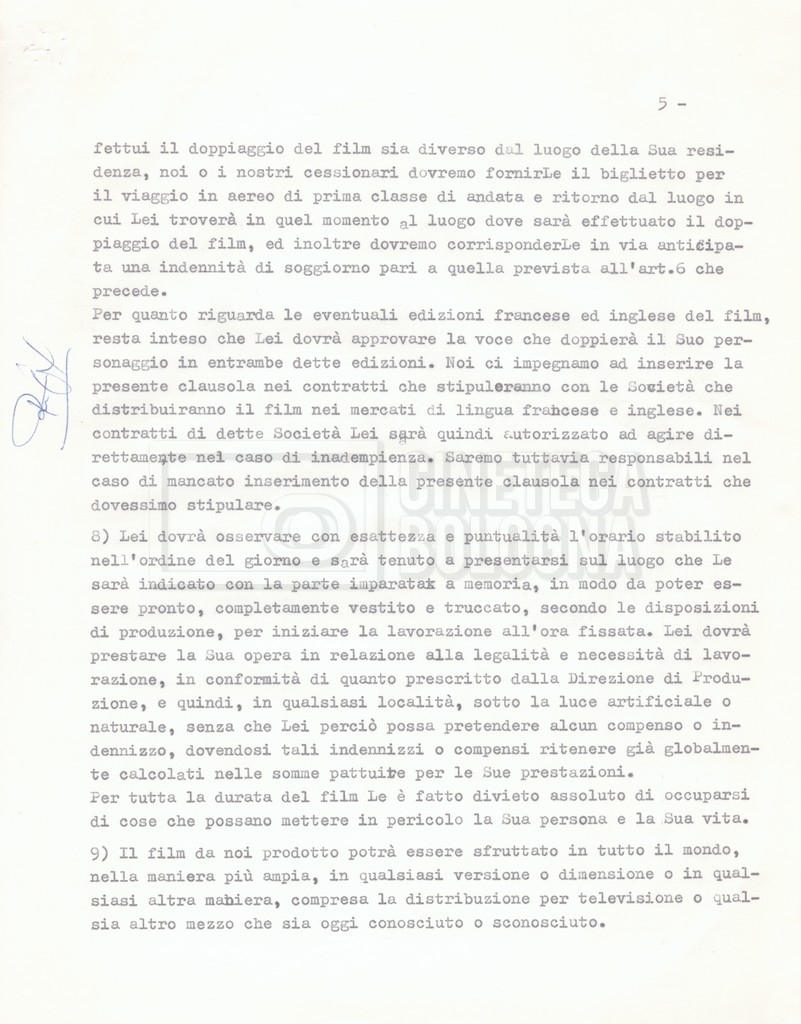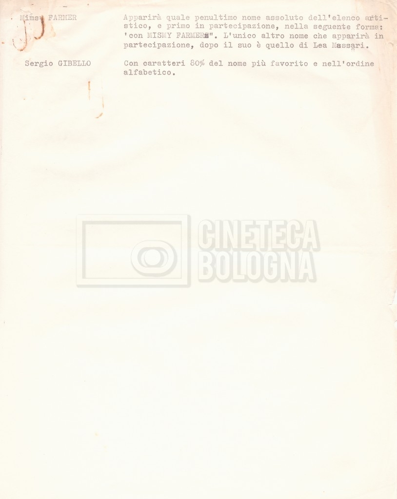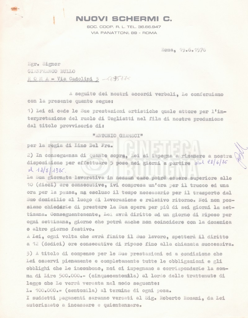 Si segnala che il doc. sciolto riguarda gli accordi con gli attori per la titolazione sullo schermo.