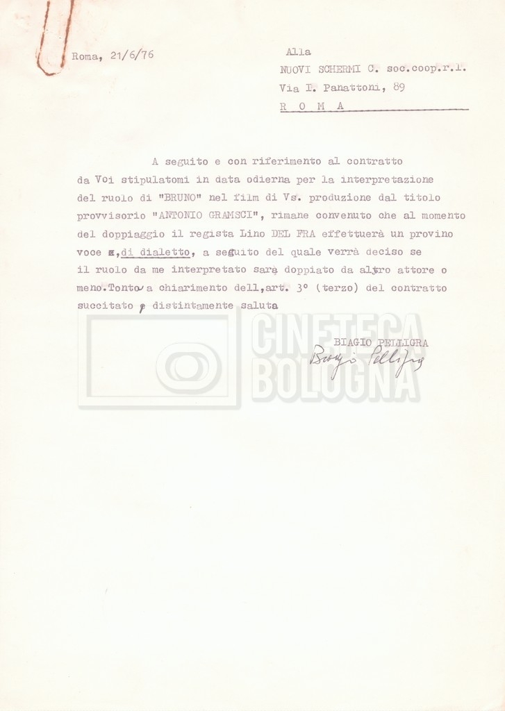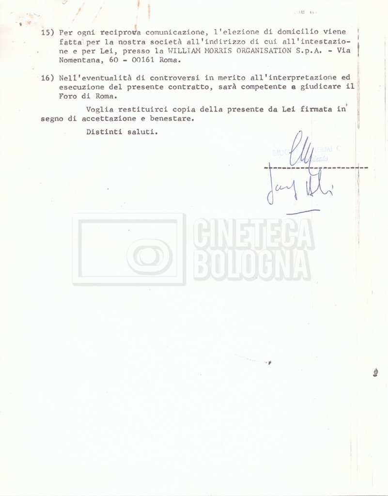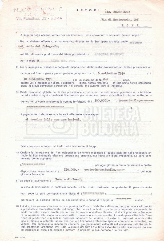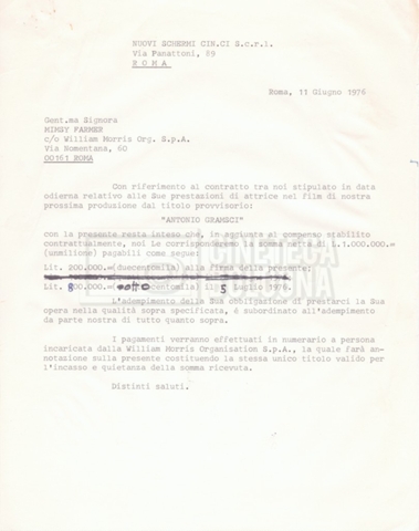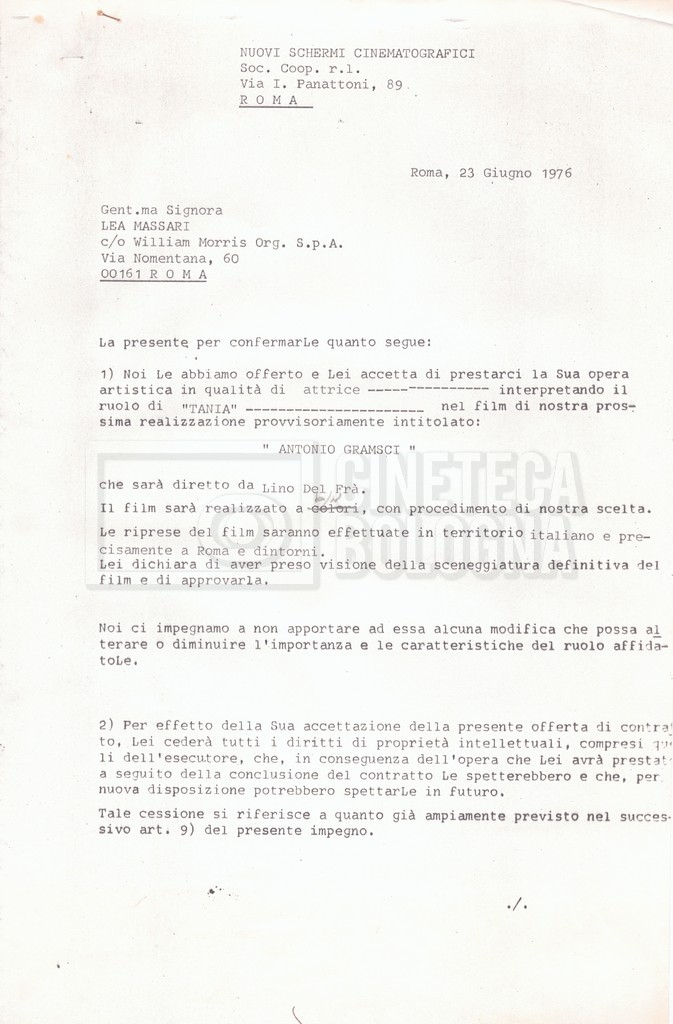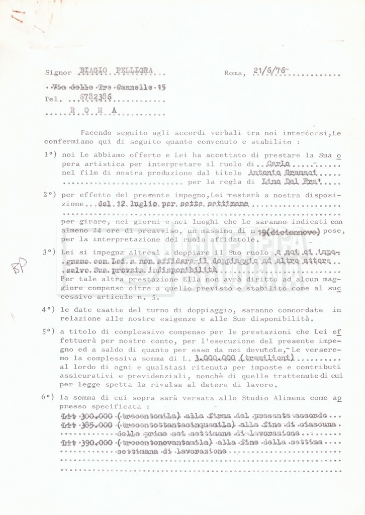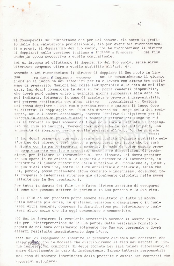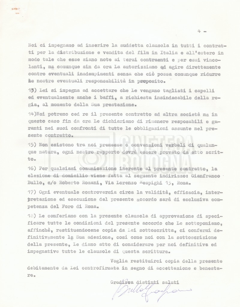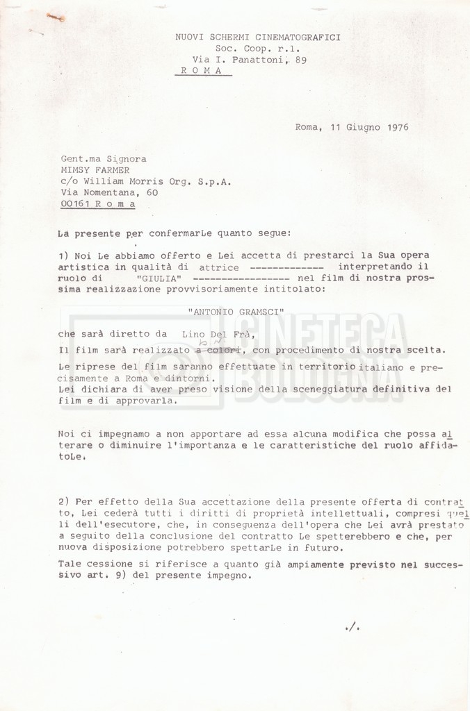 Si segnala che il doc. sciolto riguarda gli accordi con gli attori per la titolazione sullo schermo.