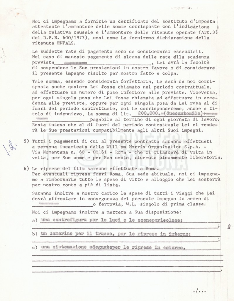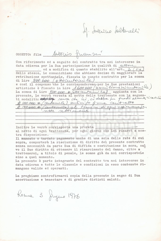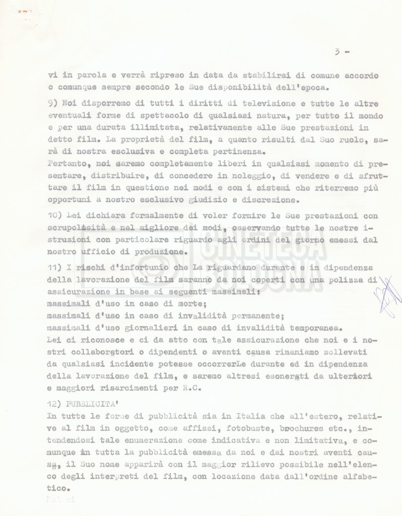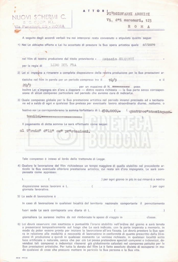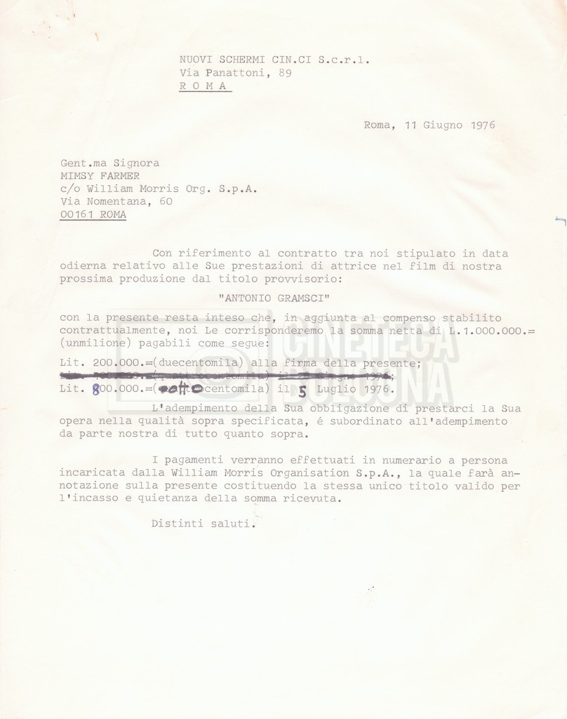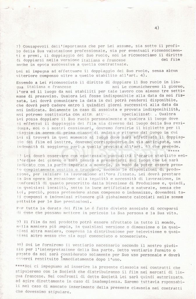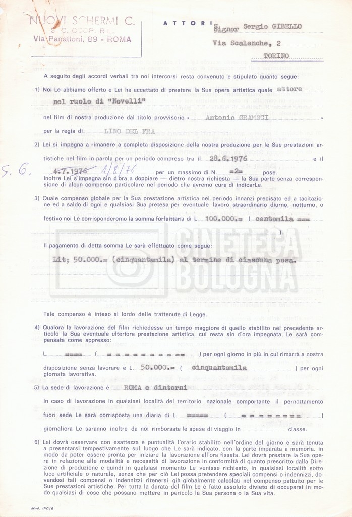 Si segnala che il doc. sciolto riguarda gli accordi con gli attori per la titolazione sullo schermo.