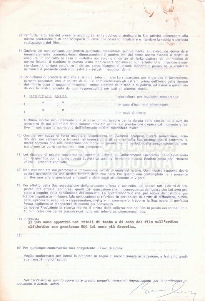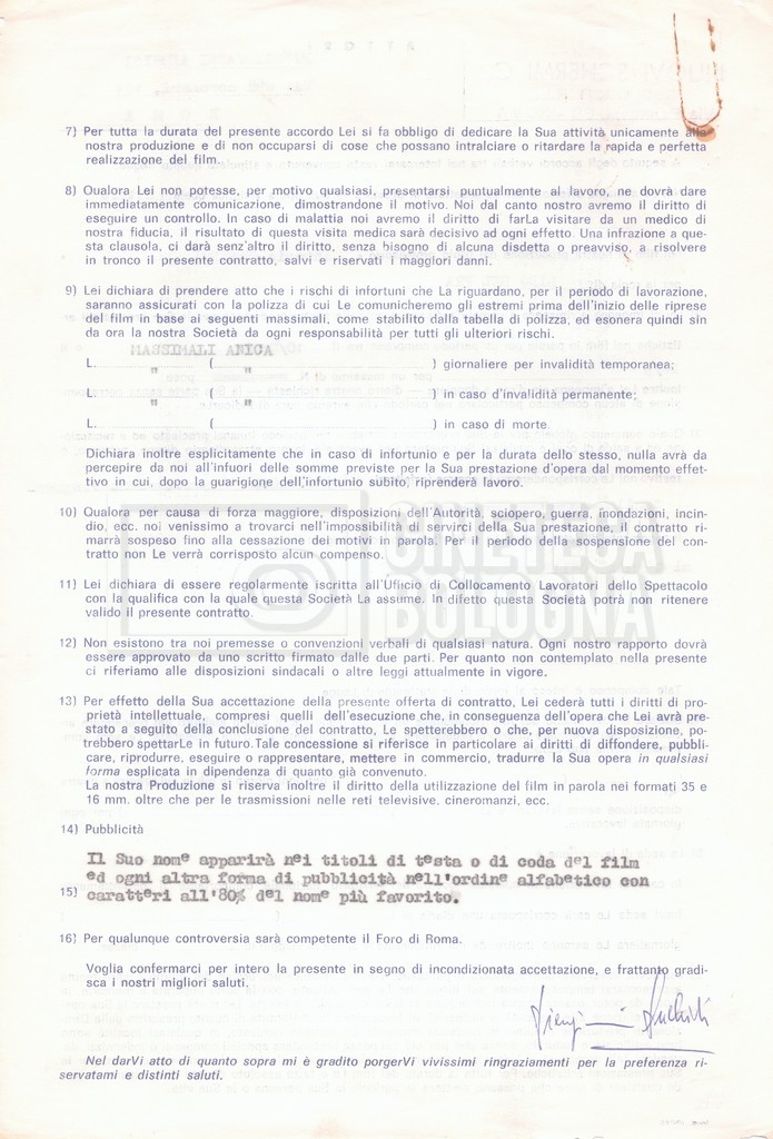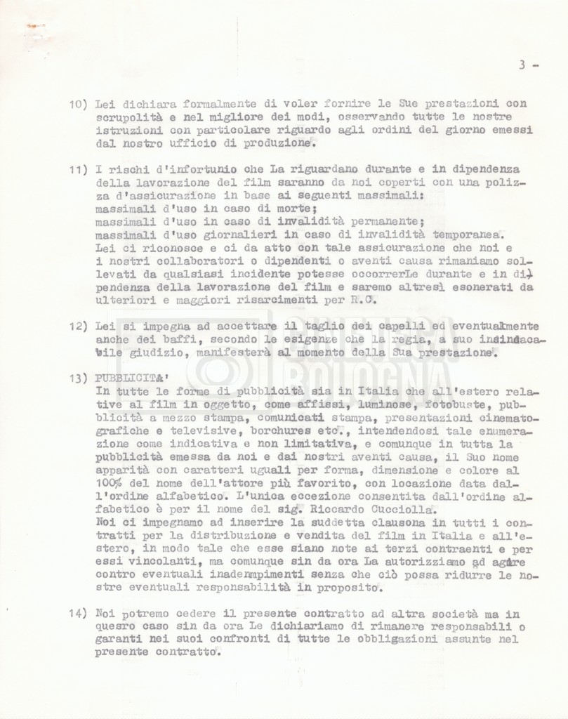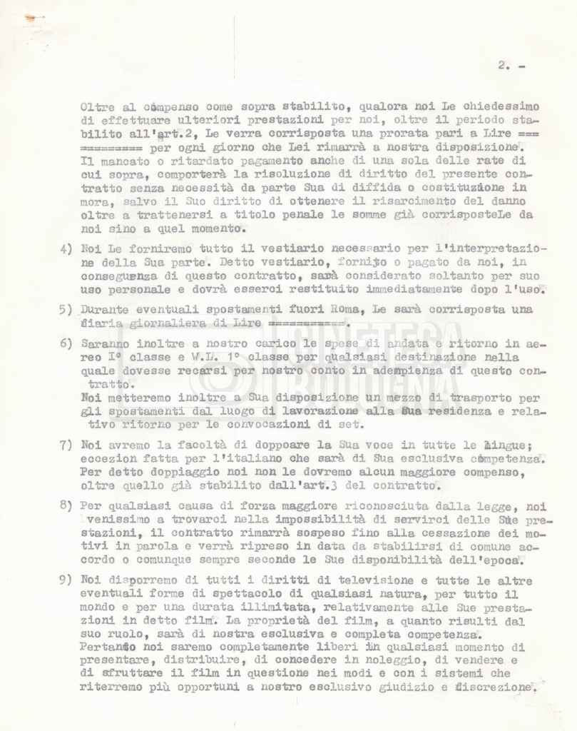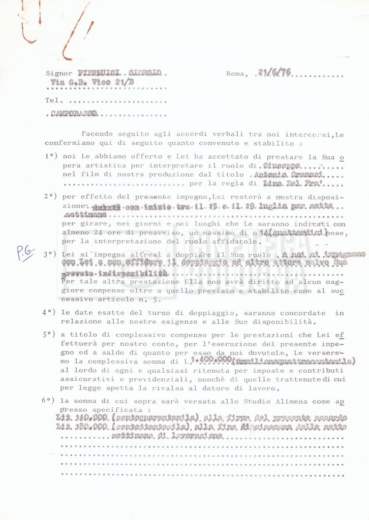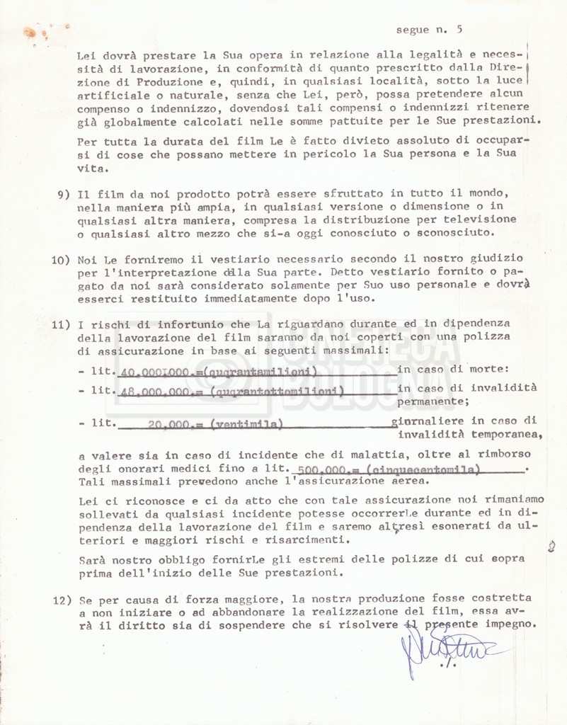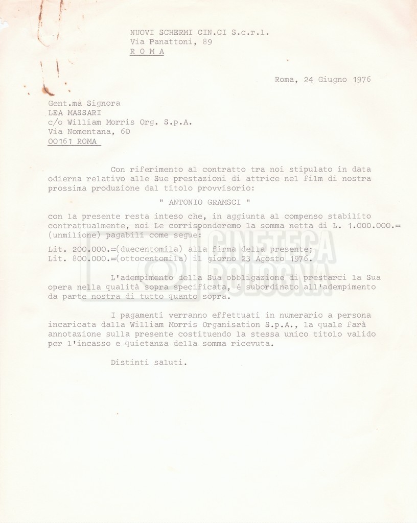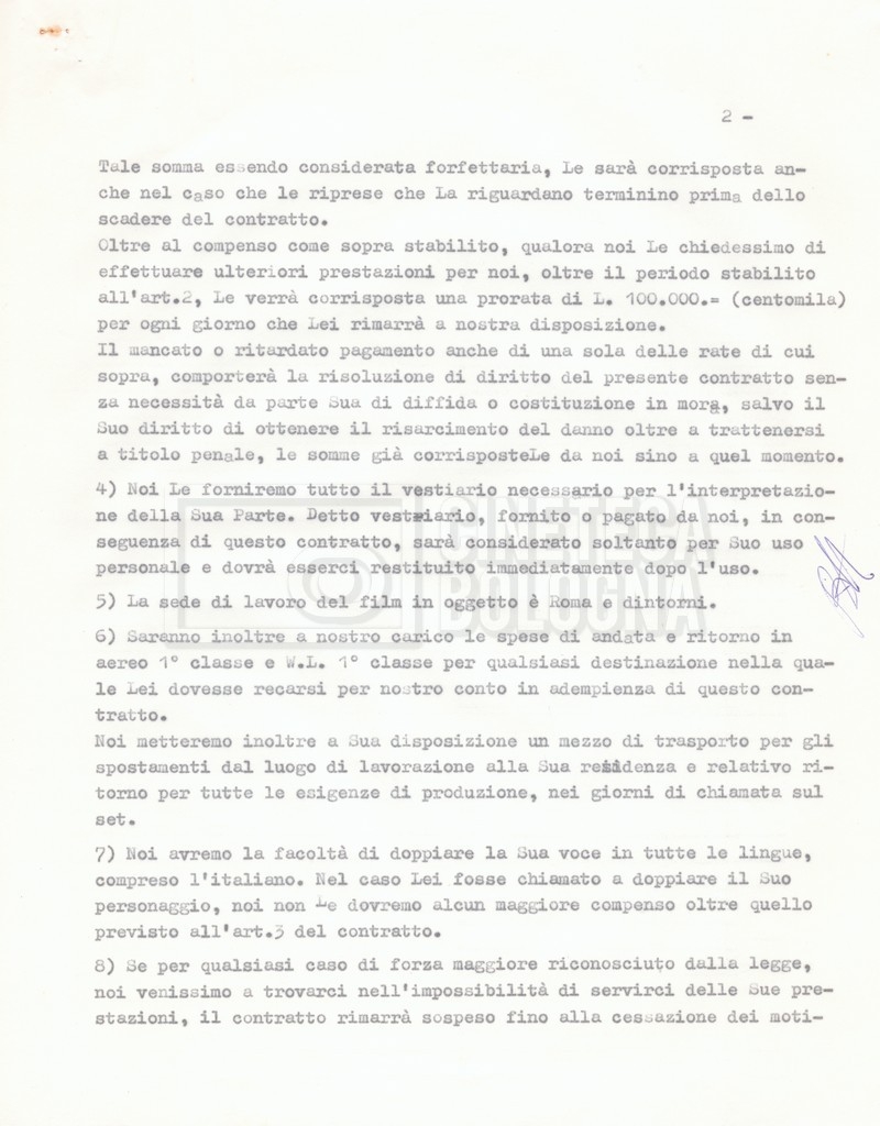 Si segnala che il doc. sciolto riguarda gli accordi con gli attori per la titolazione sullo schermo.