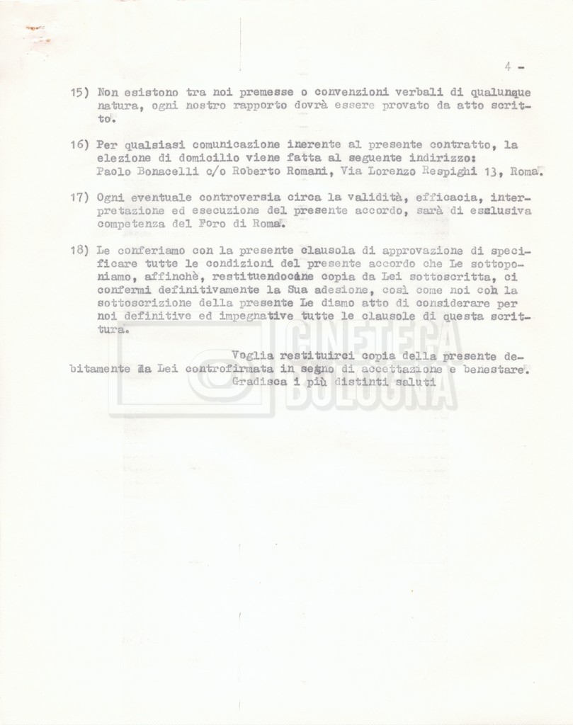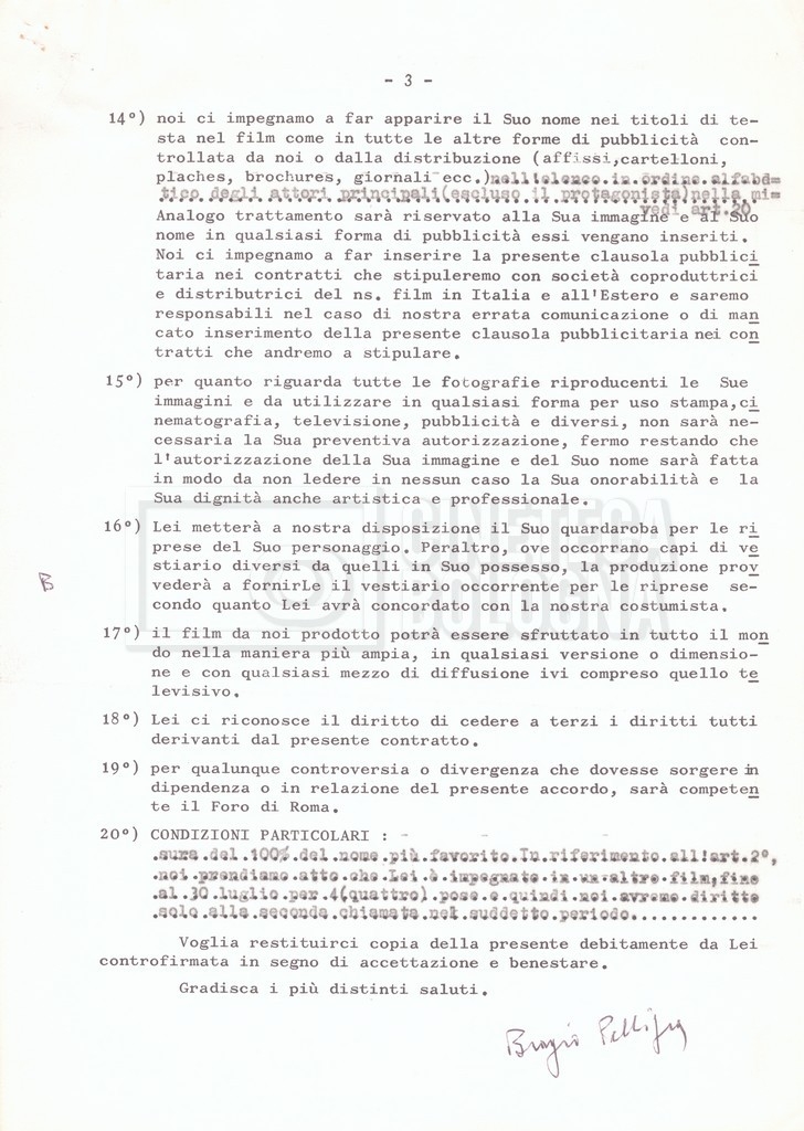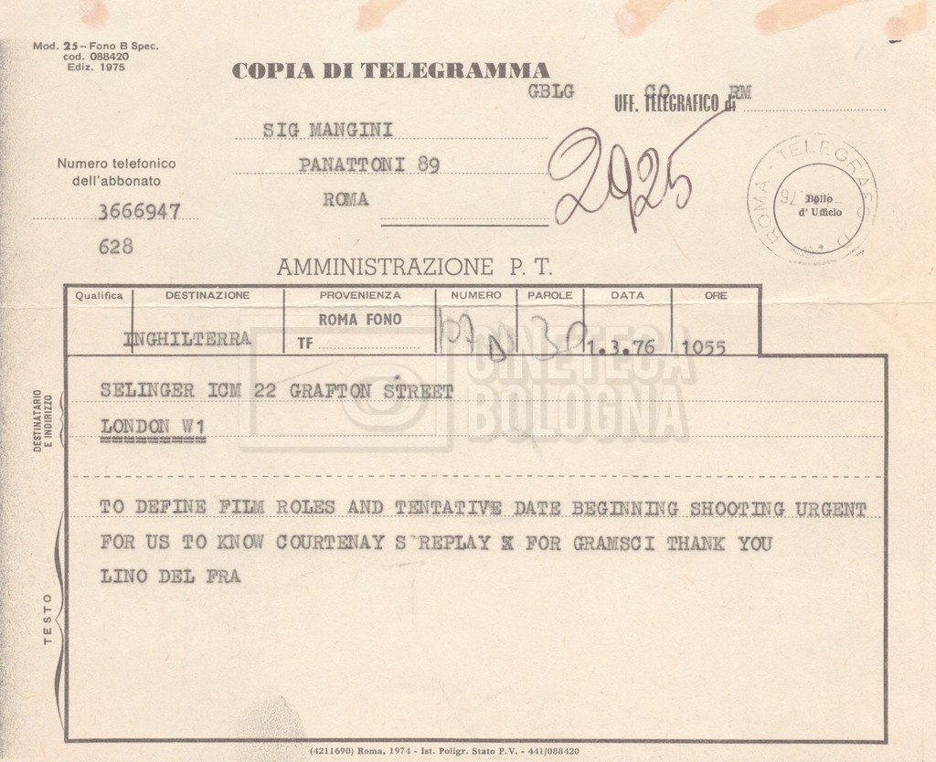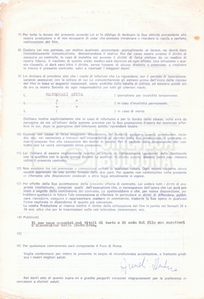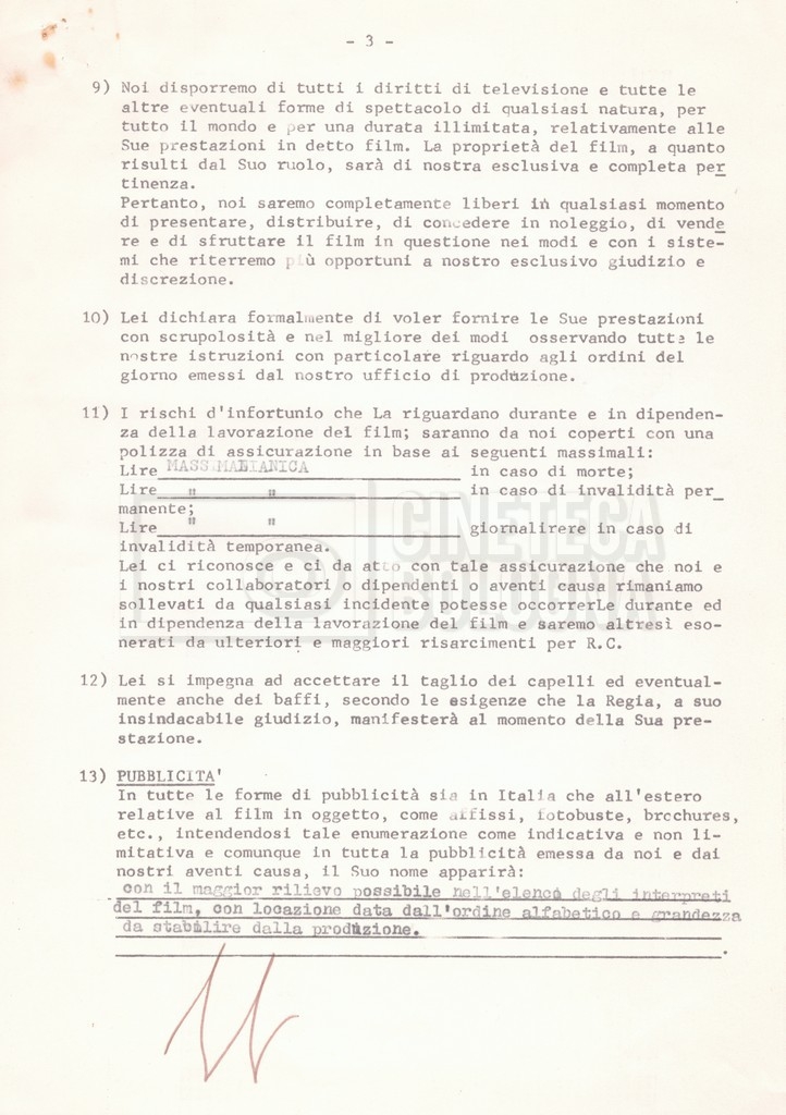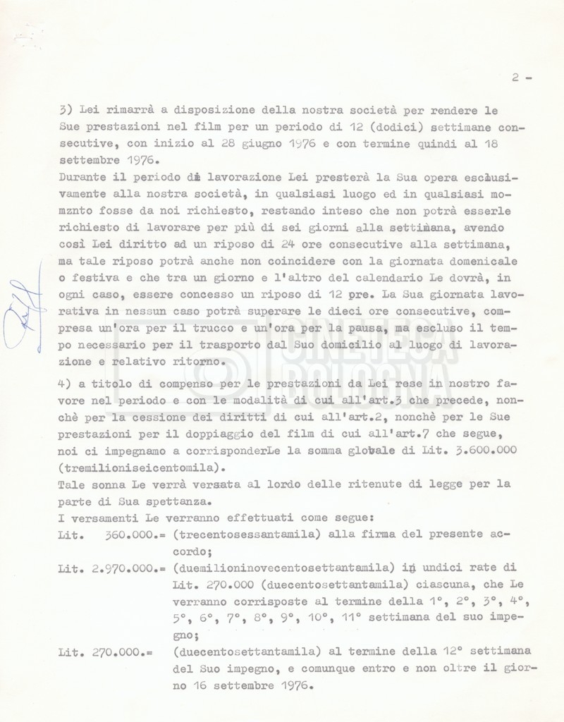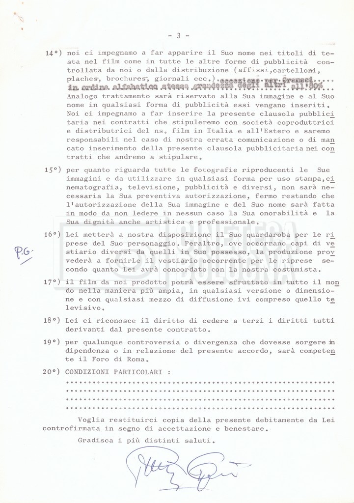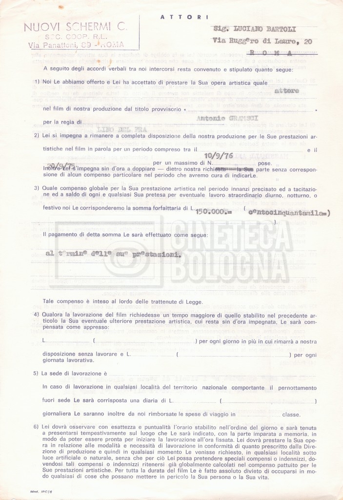 Si segnala che il doc. sciolto riguarda gli accordi con gli attori per la titolazione sullo schermo.