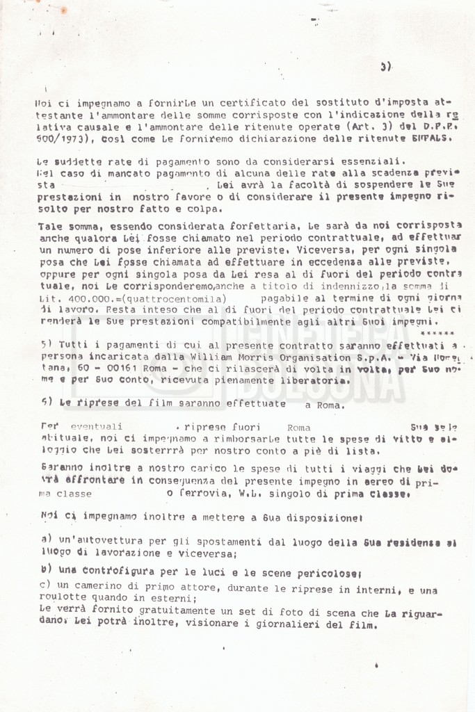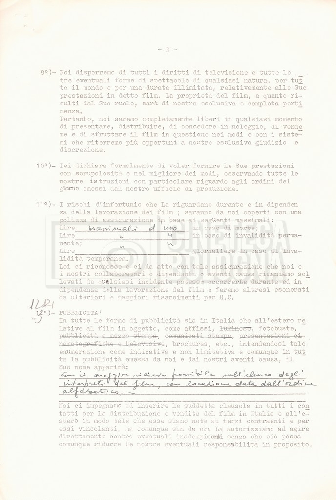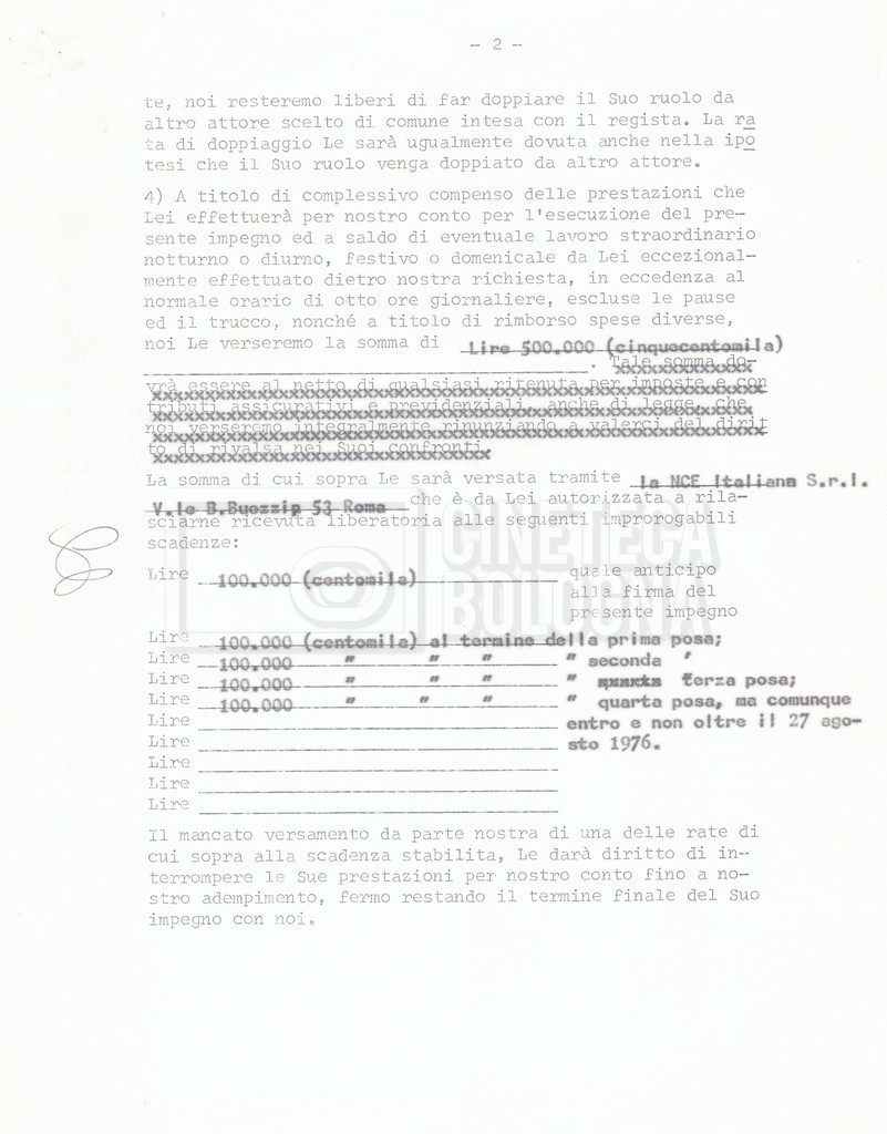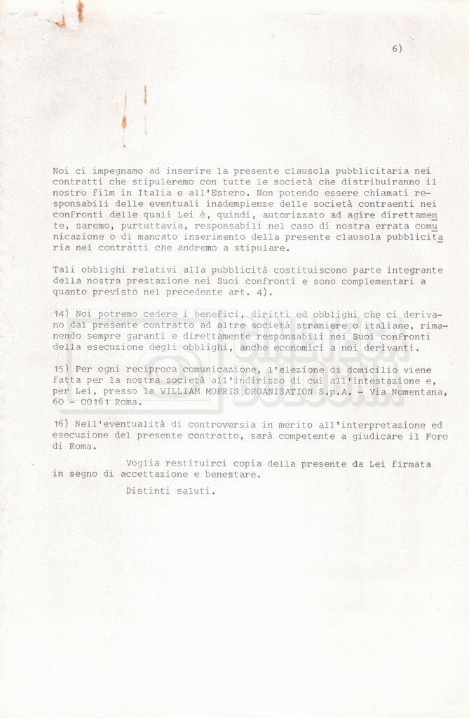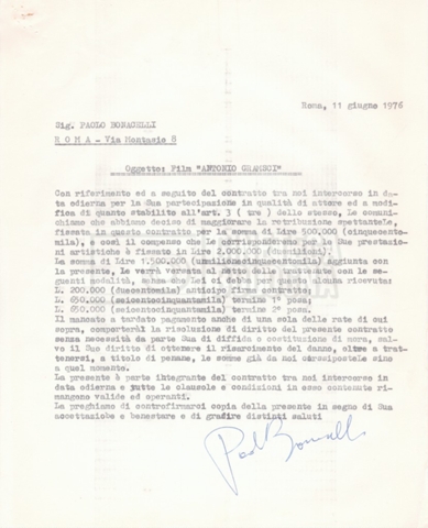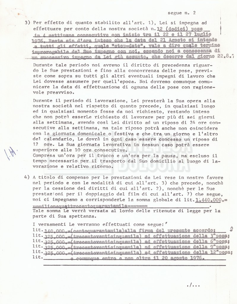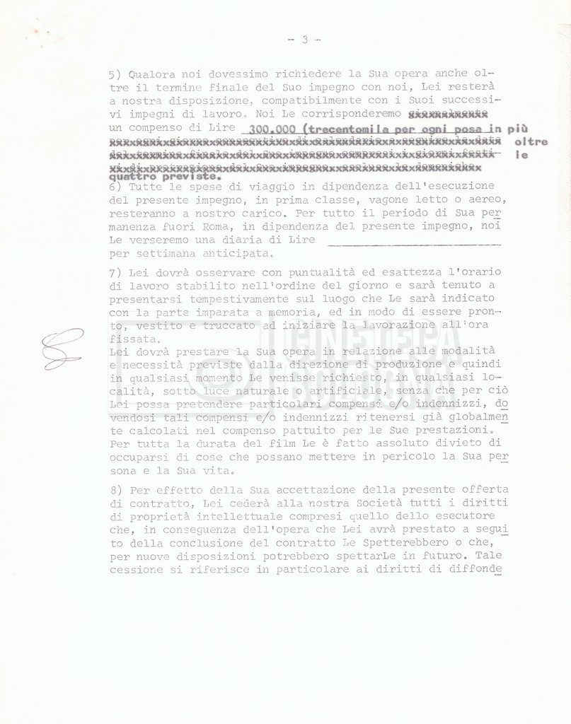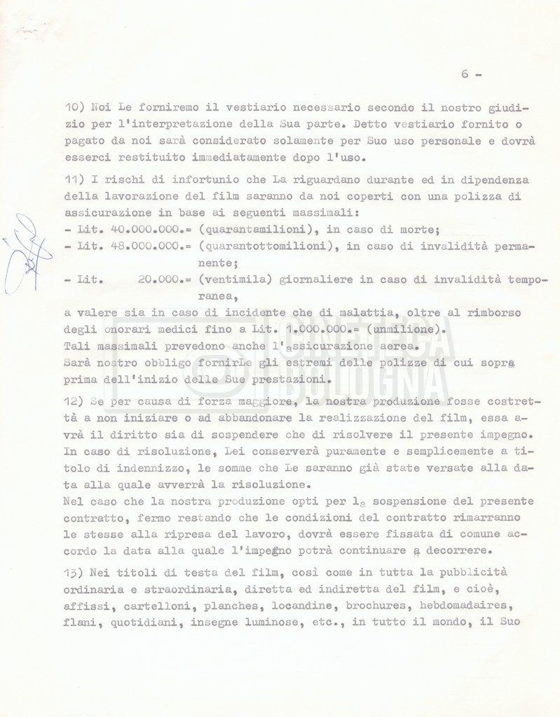 Si segnala che il doc. sciolto riguarda gli accordi con gli attori per la titolazione sullo schermo.