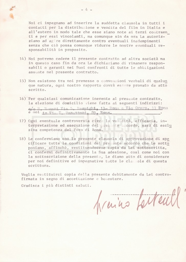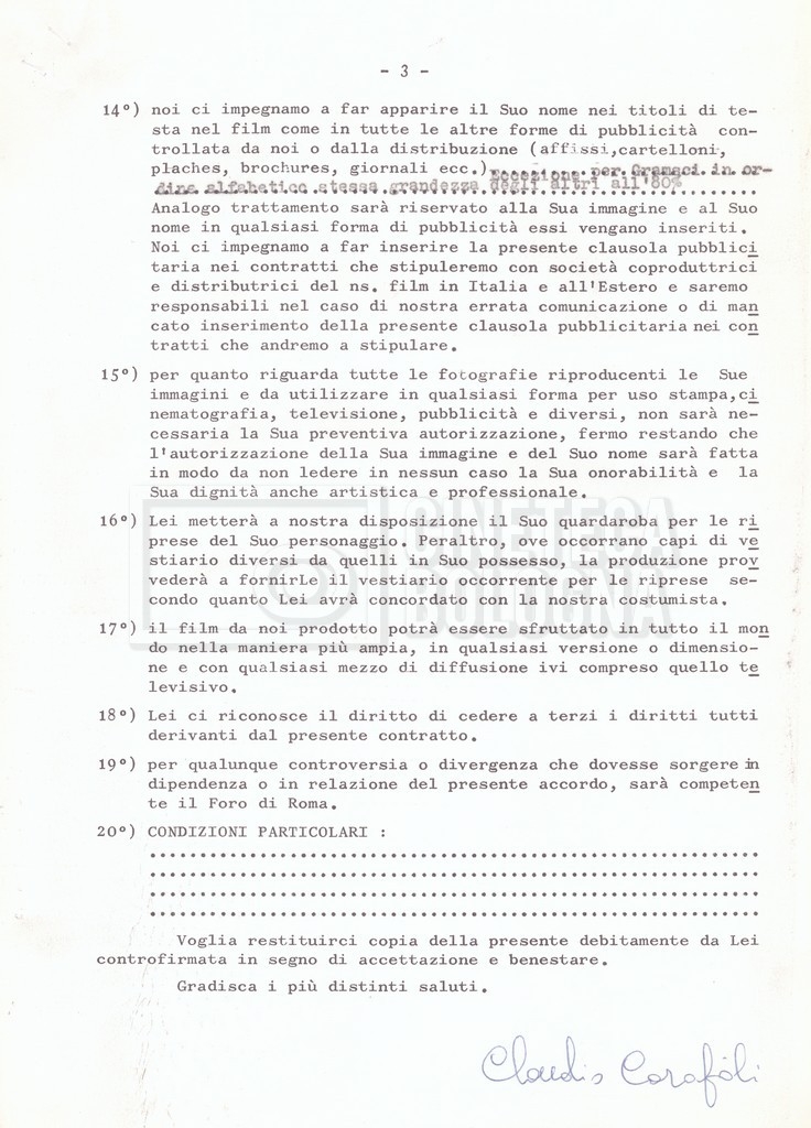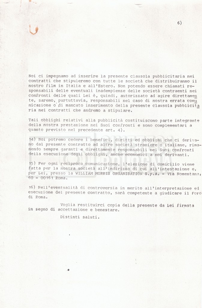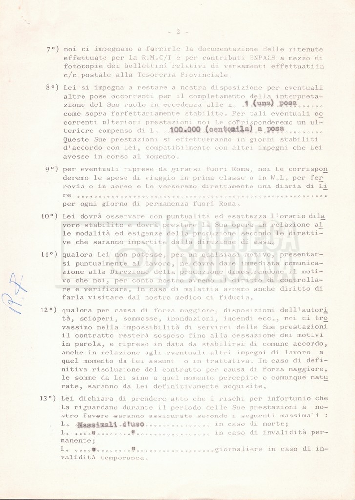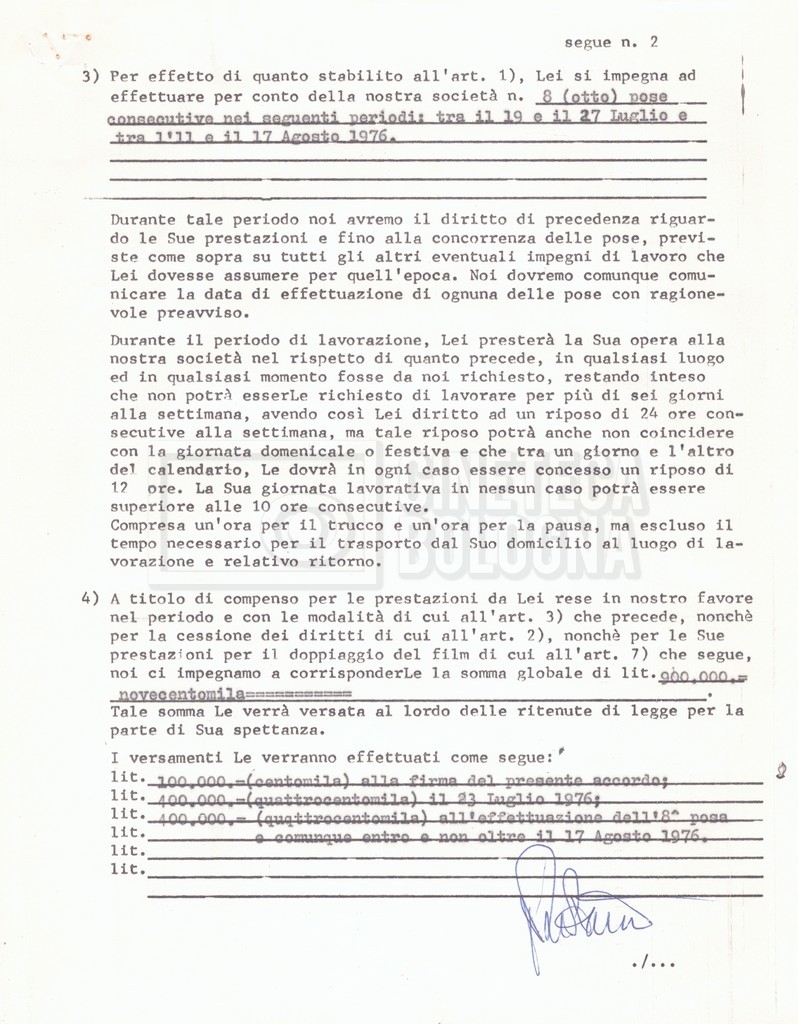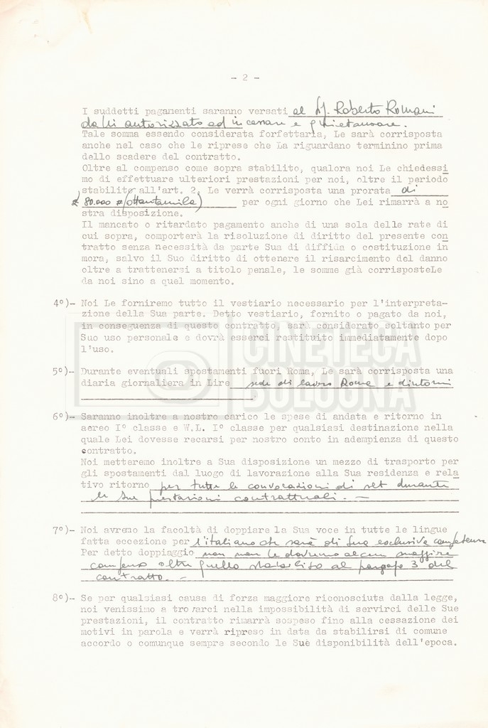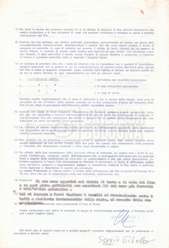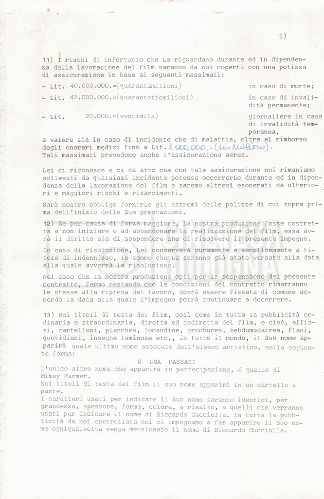 Si segnala che il doc. sciolto riguarda gli accordi con gli attori per la titolazione sullo schermo.