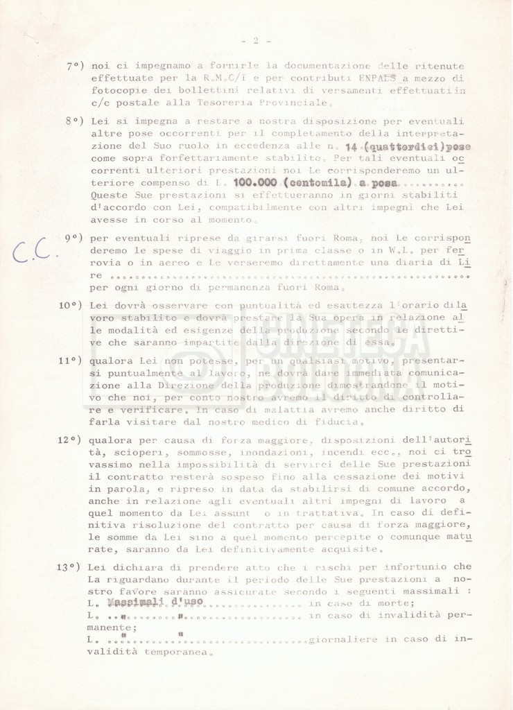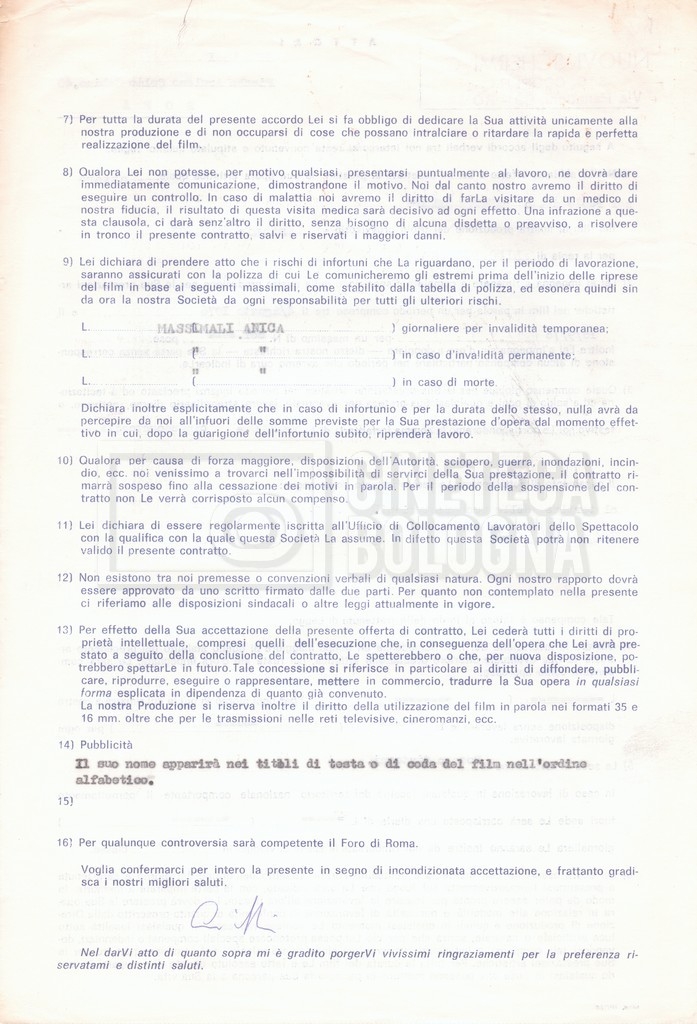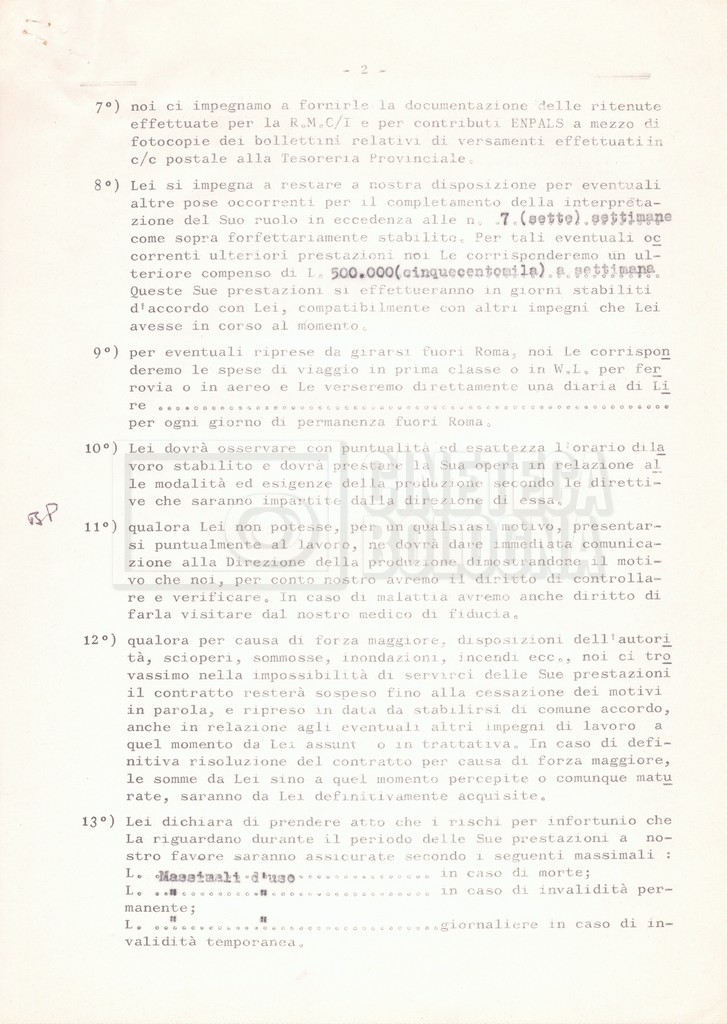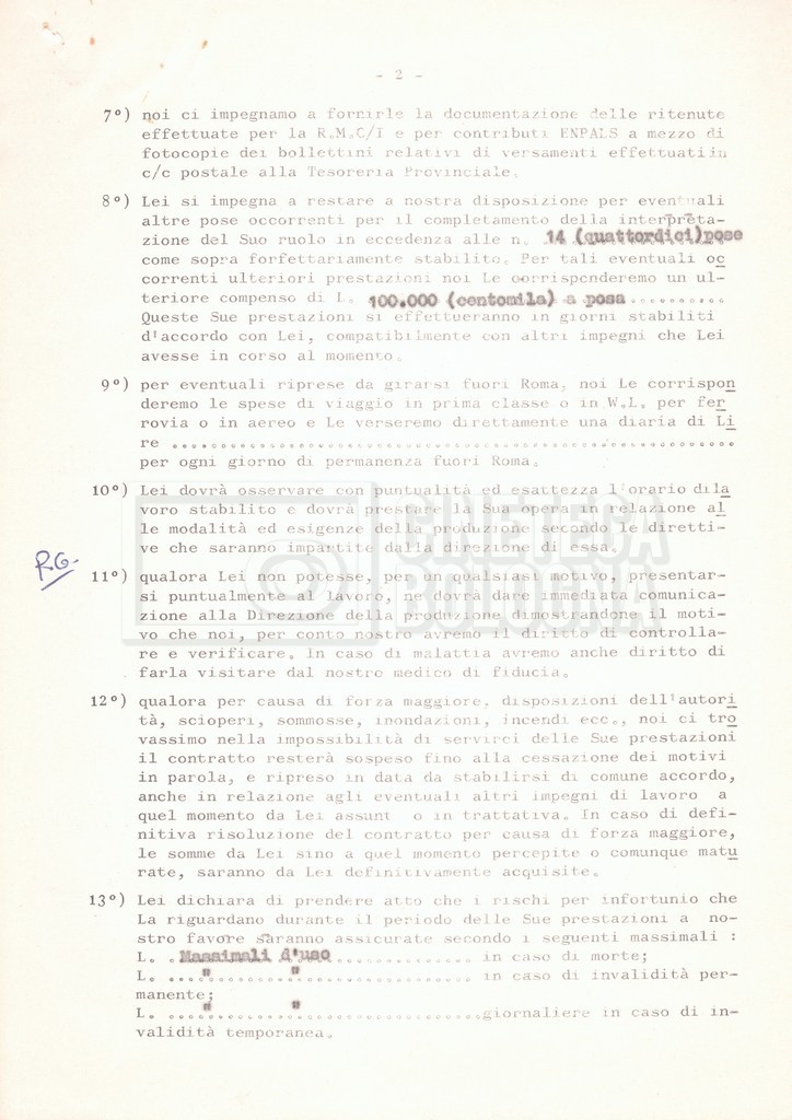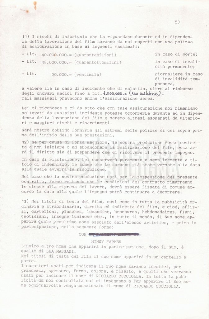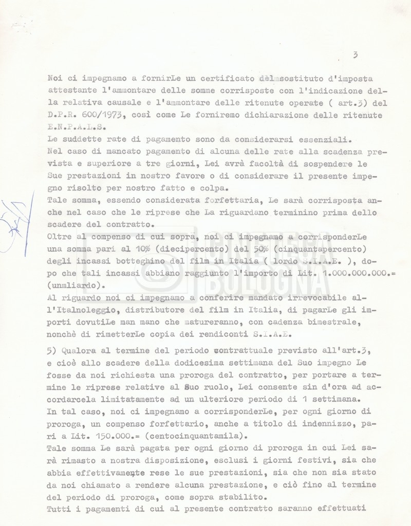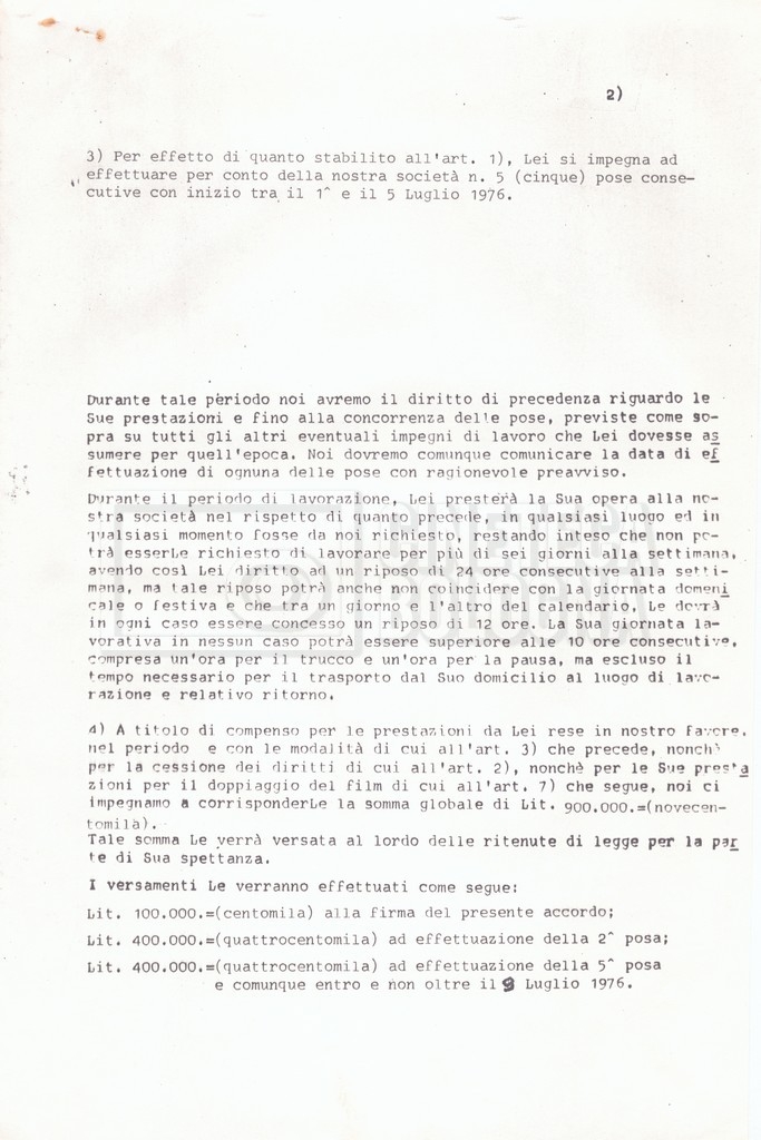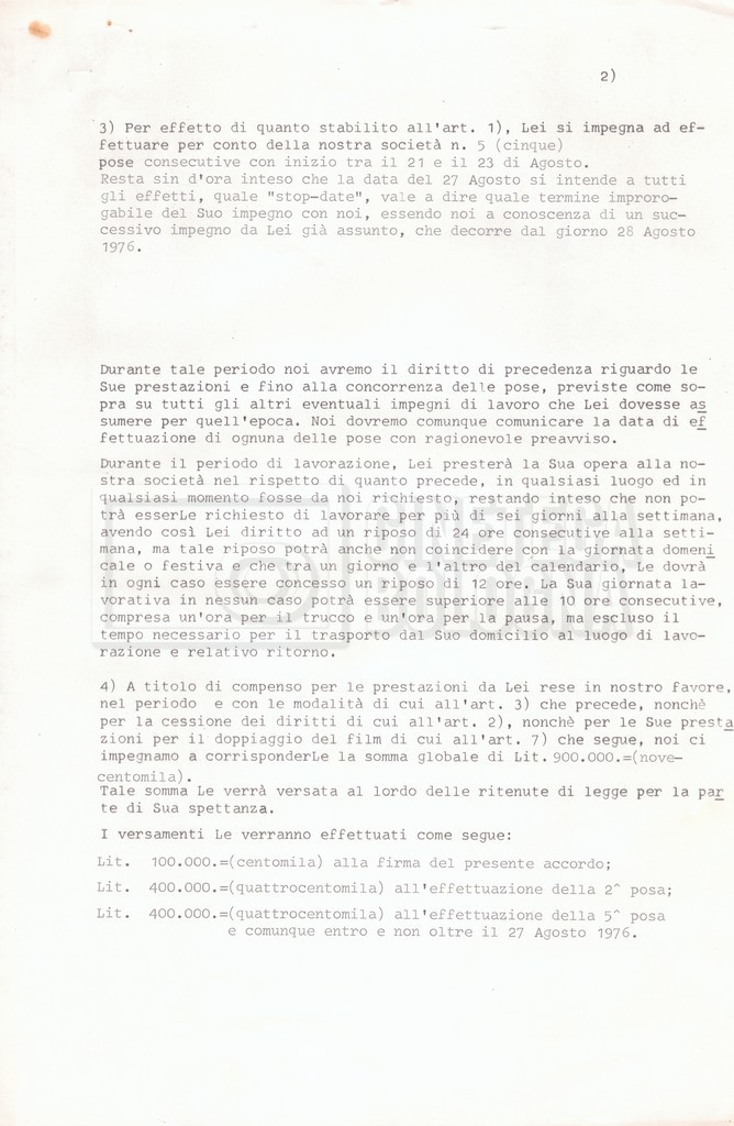 Si segnala che il doc. sciolto riguarda gli accordi con gli attori per la titolazione sullo schermo.