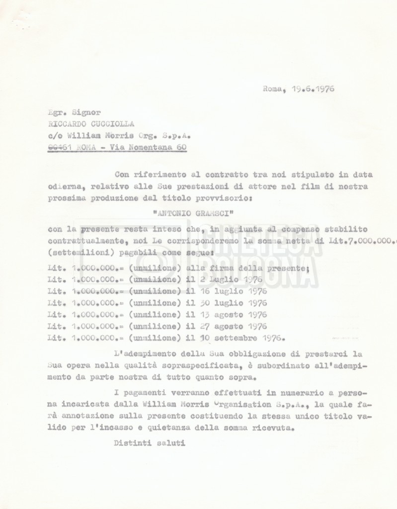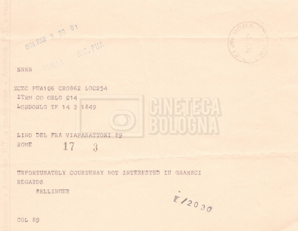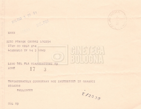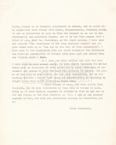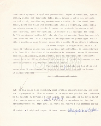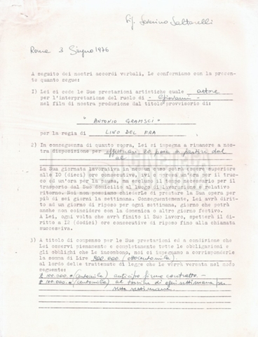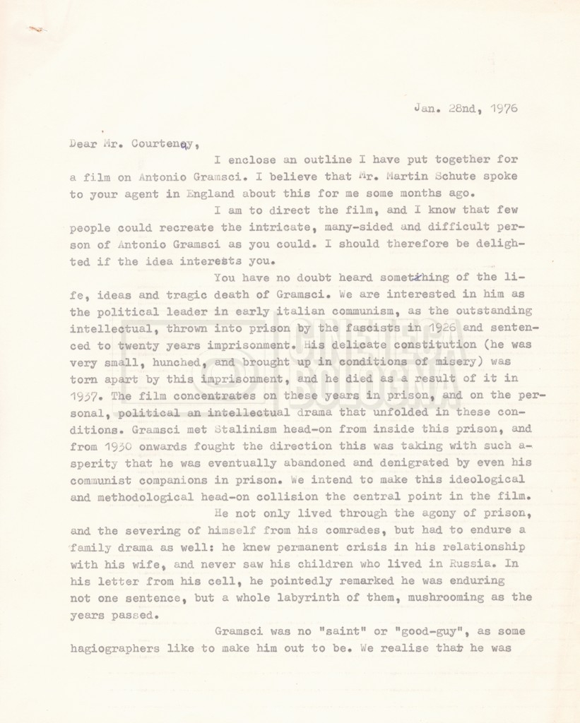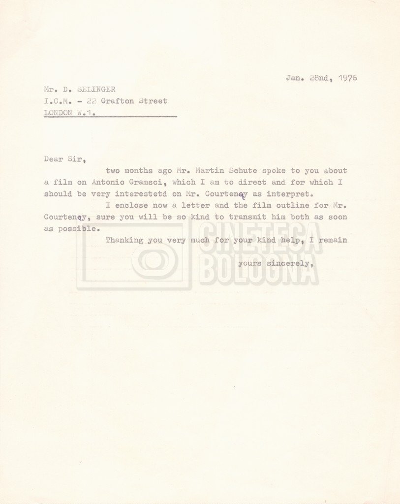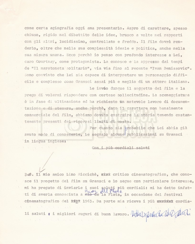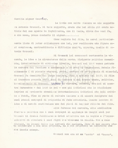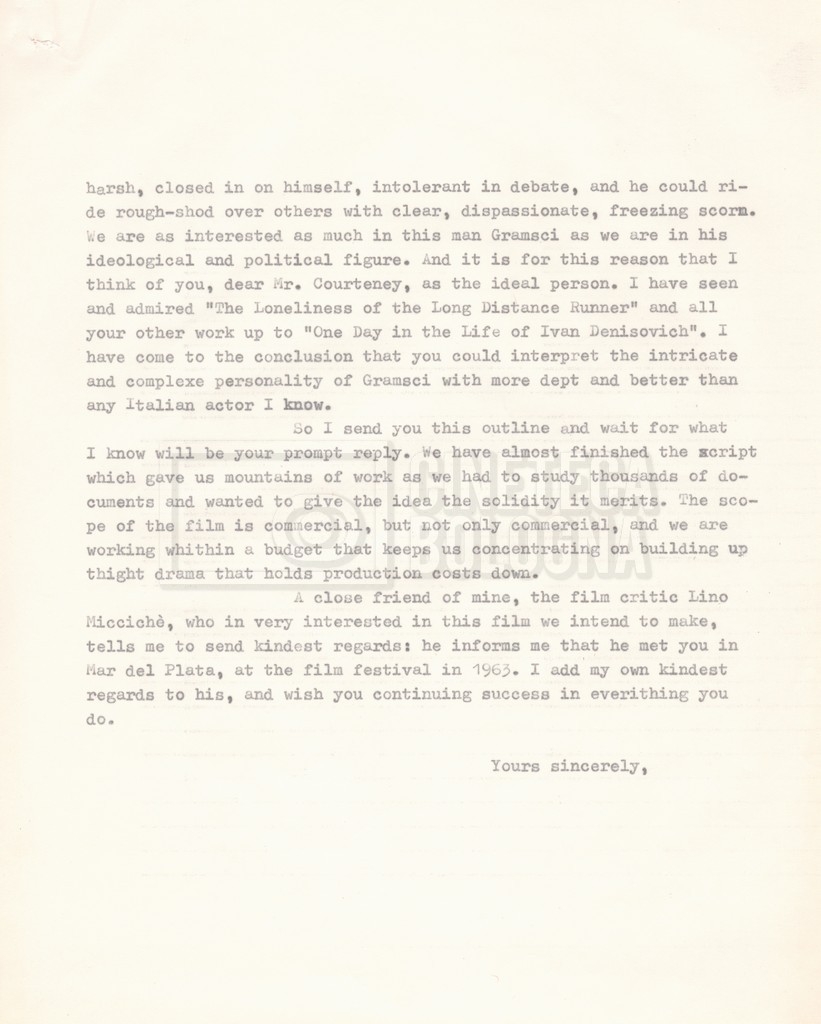 – ‘L’ipotesi Tom Courtenay’: contiene uno scambio epistolare a proposito dell’intenzione di Lino Del Fra di proporre il ruolo di Antonio Gramsci all’attore Tom Courtenay;