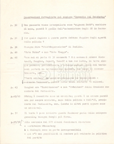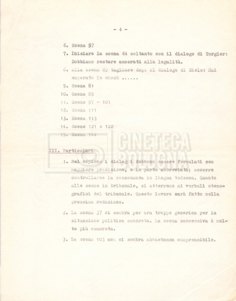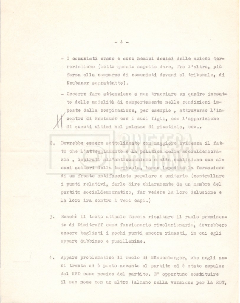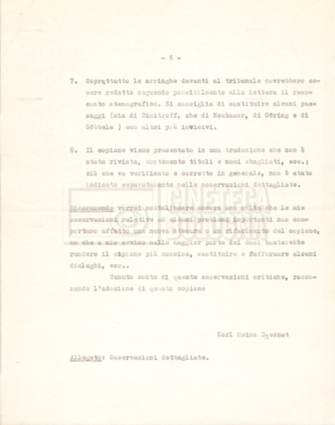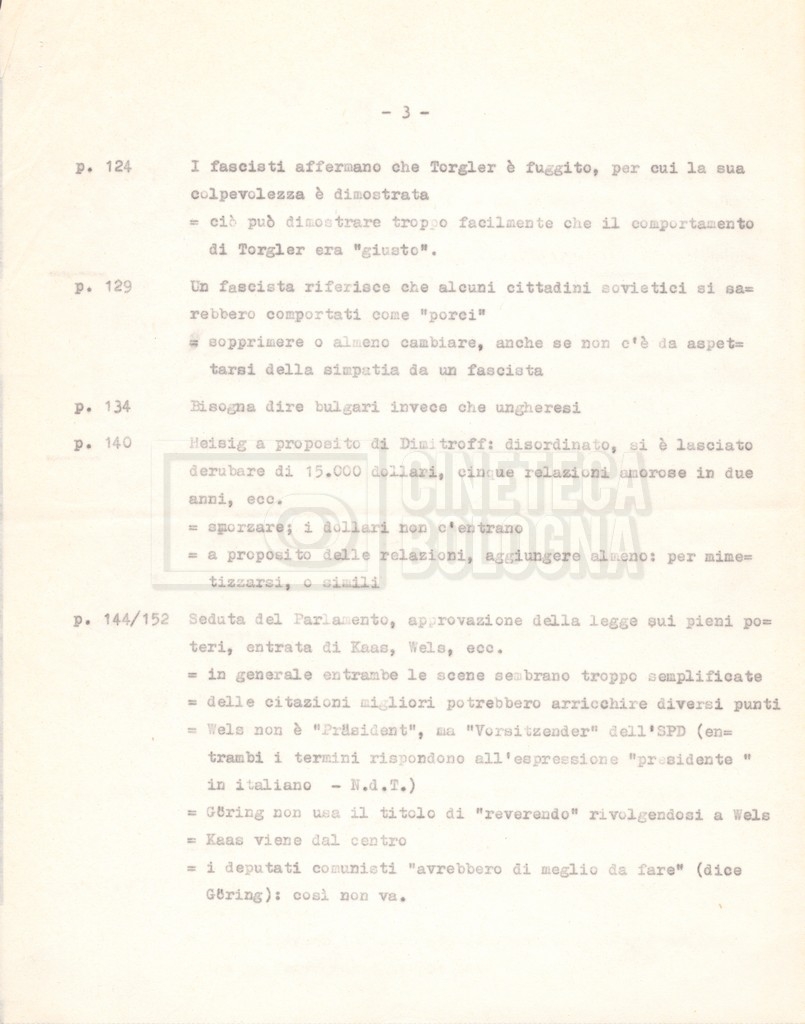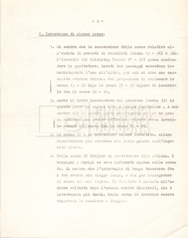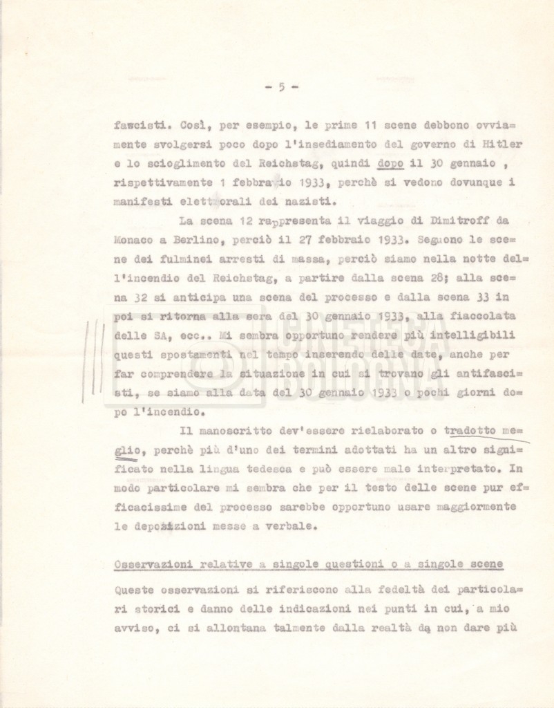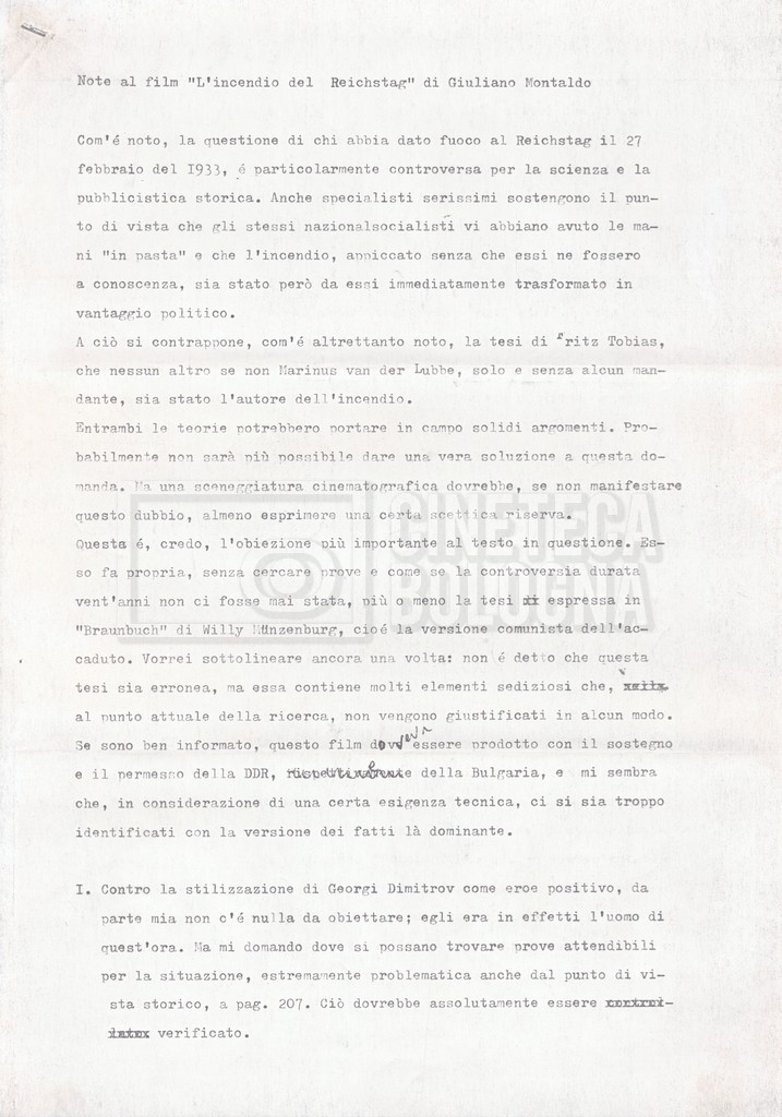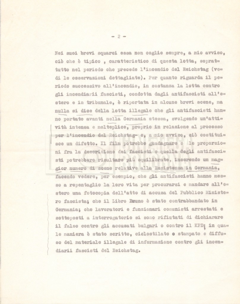 – Una lettera di Albert Wilkening, produttore cinematografico della ‘Deutsche Film AG’ (DEFA), a Mario Gallo, in italiano e in tedesco, con opinioni sul trattamento;