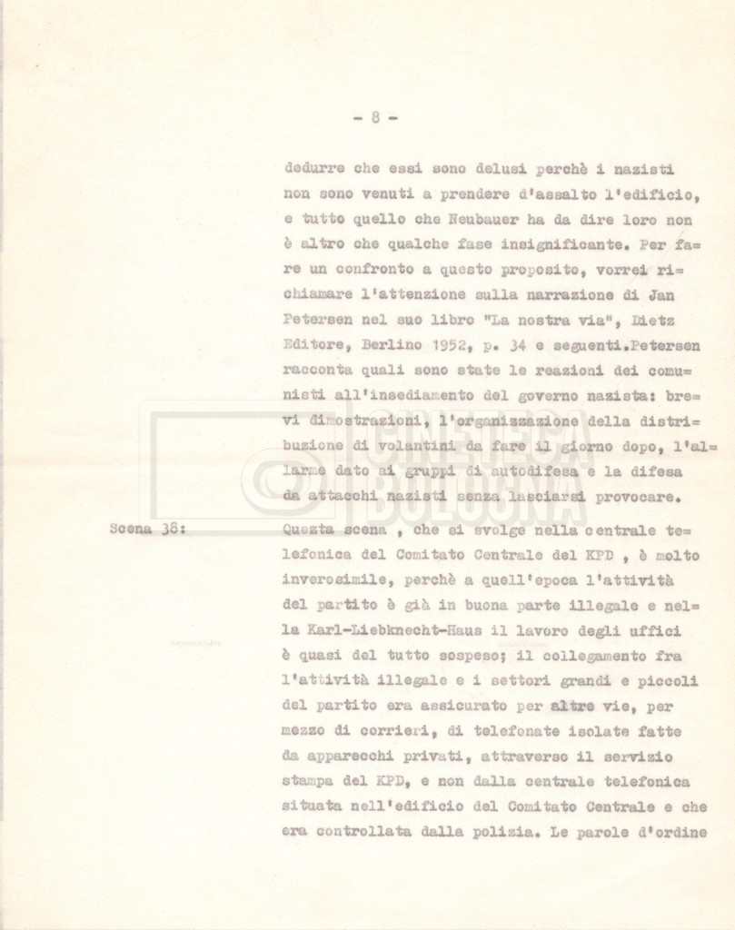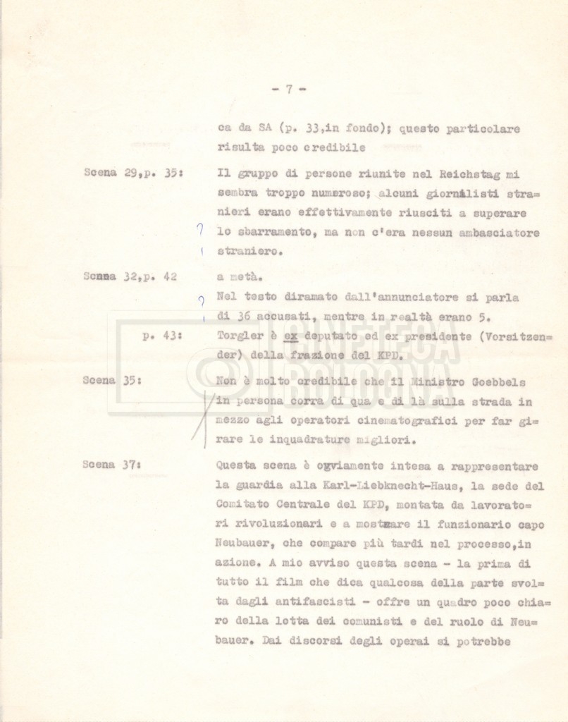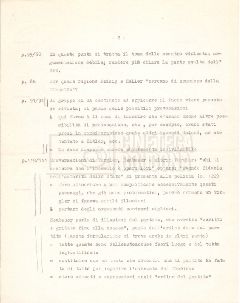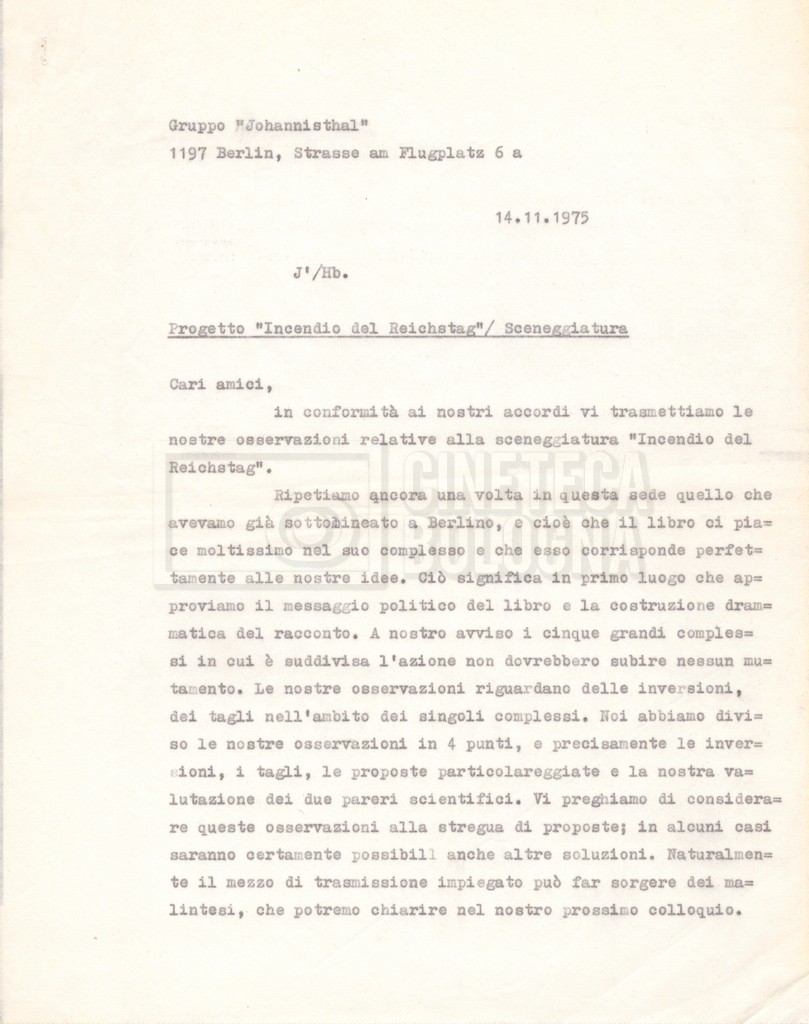 – Osservazioni sulla sceneggiatura da parte del gruppo ‘Johannisthal’ di Berlino.