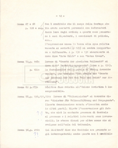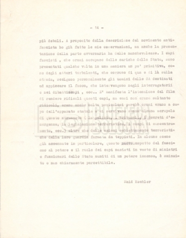 – Opinioni di Karl Heinz Biernat e di Maid Koehler sul copione del film;