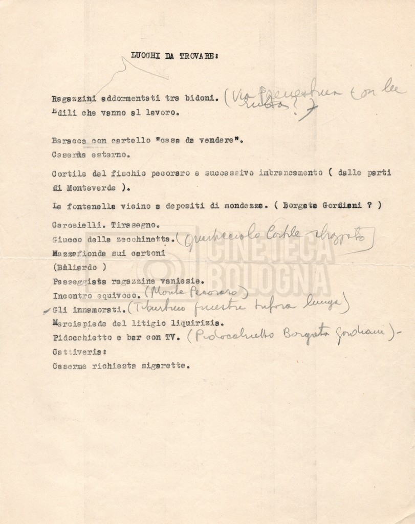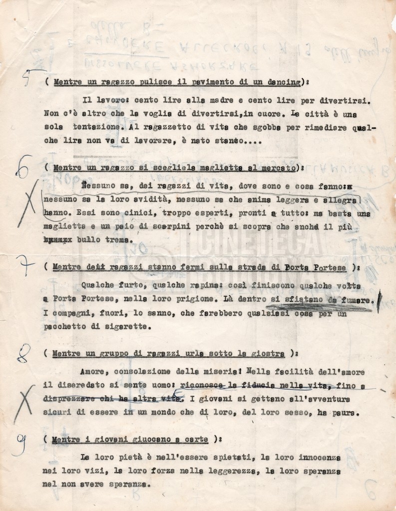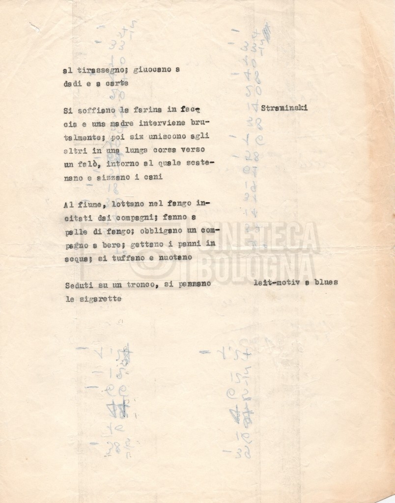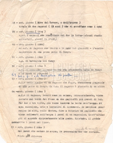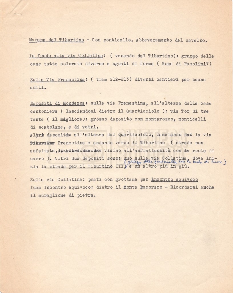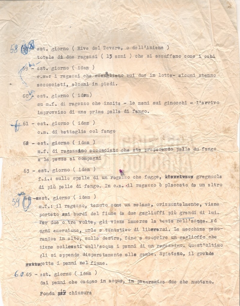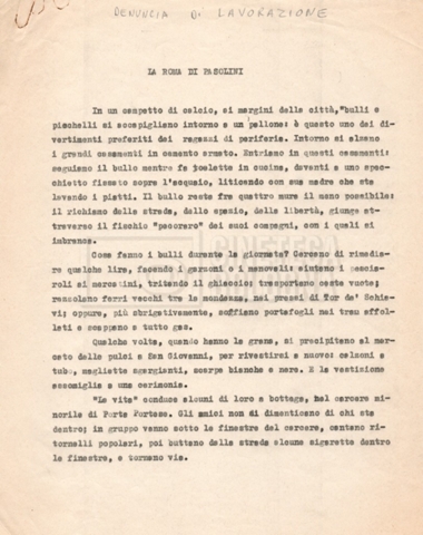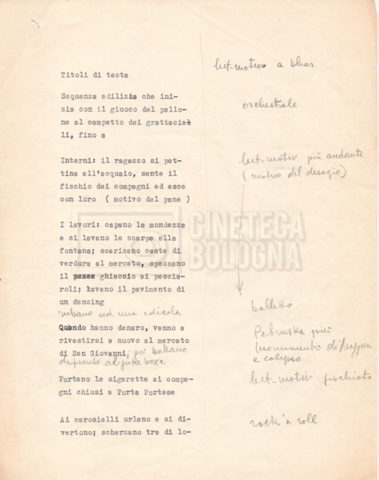 – “Il testo di Pasolini, due copie, la seconda con appunti di mixage”;