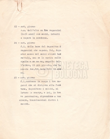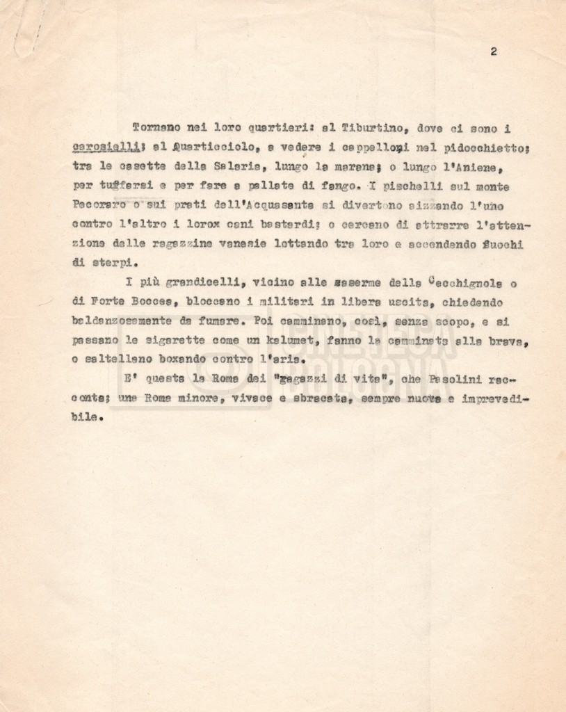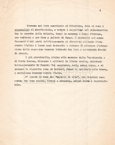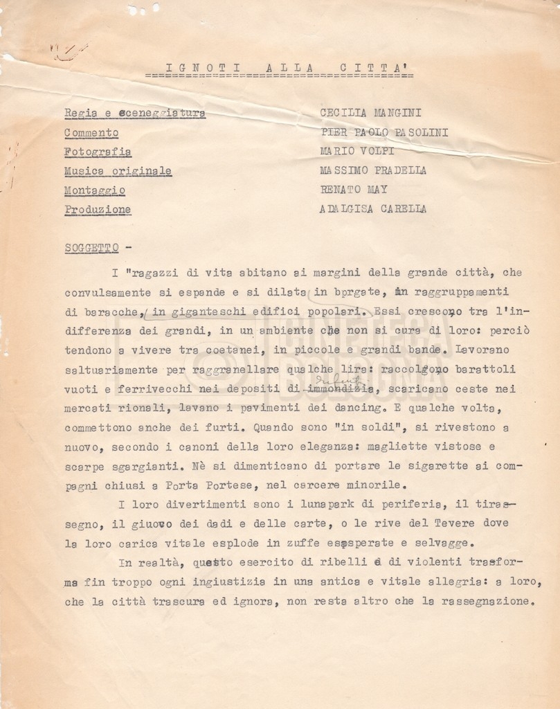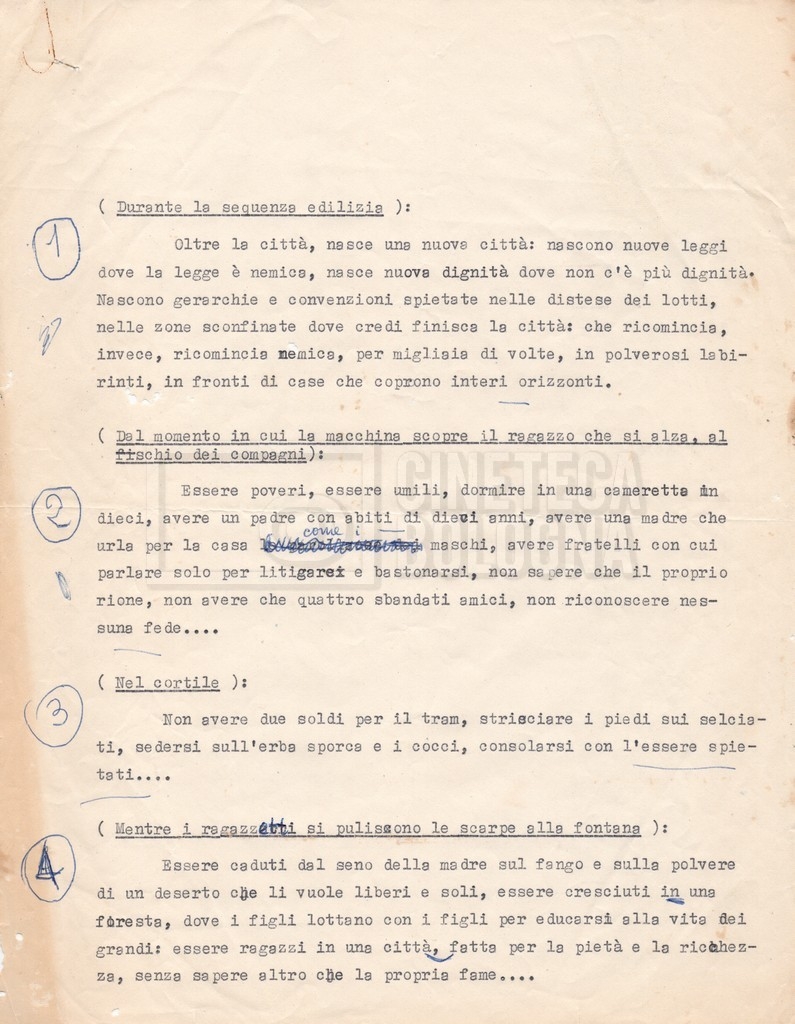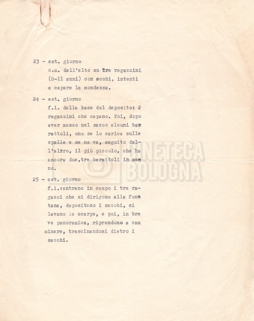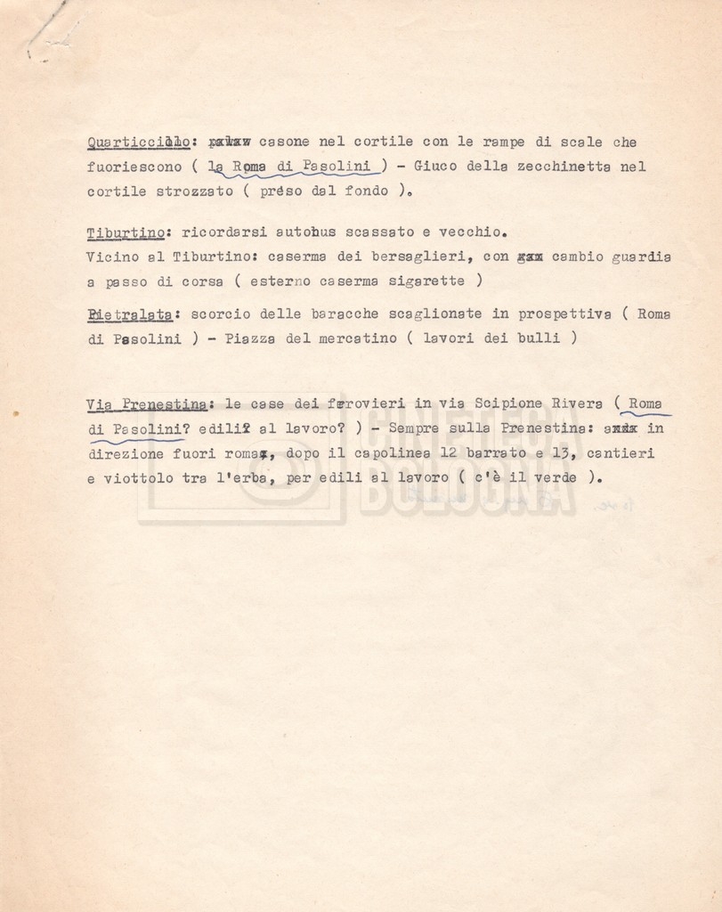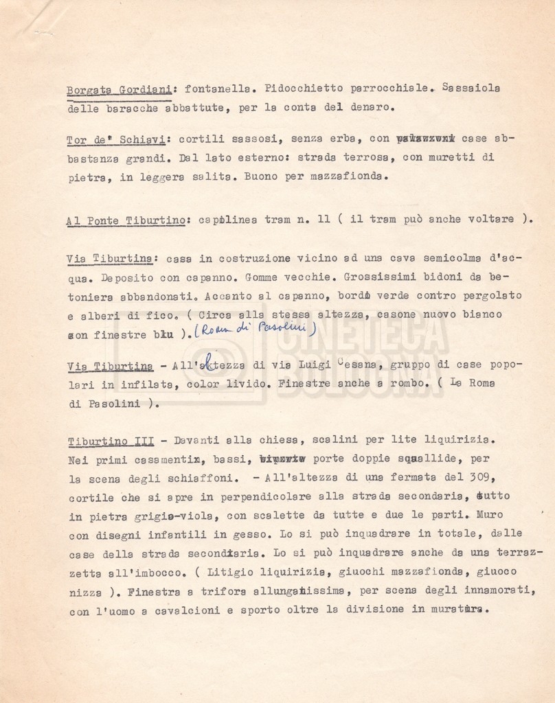 – “Il testo di Pasolini, due copie, la seconda con appunti di mixage”;