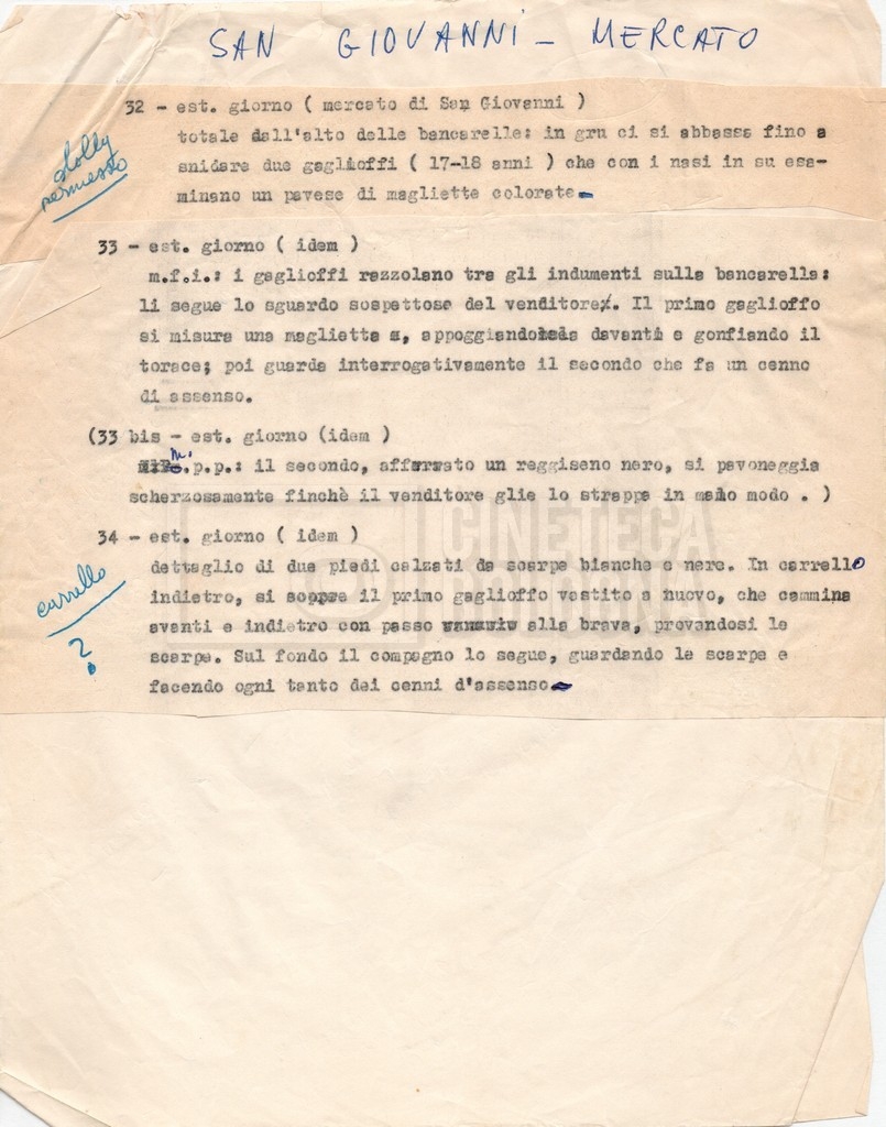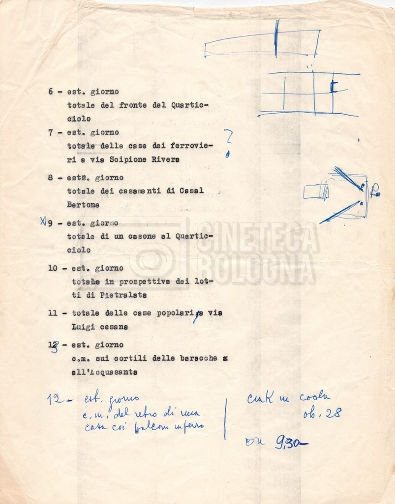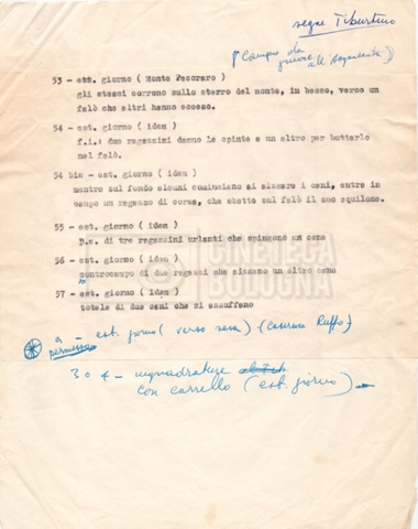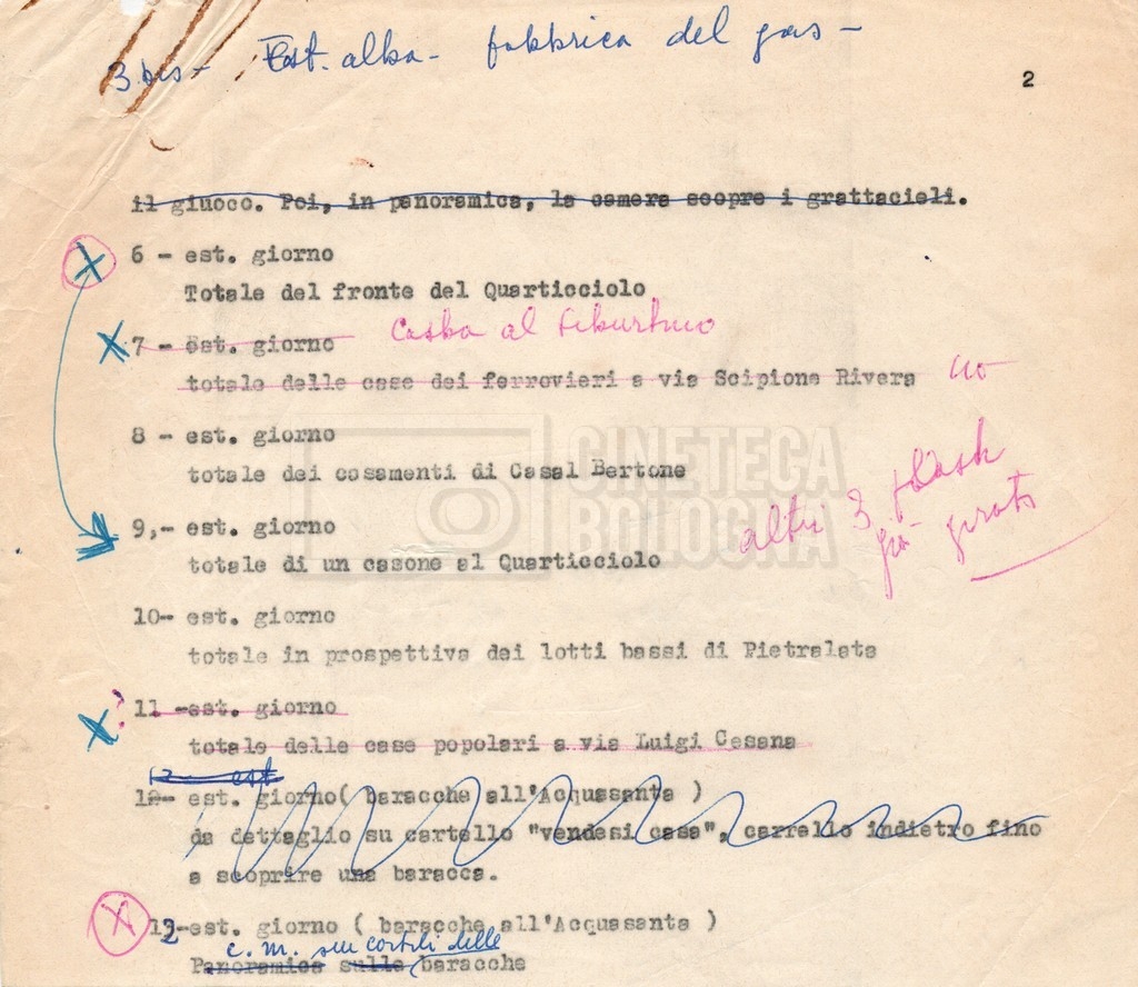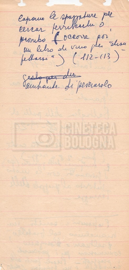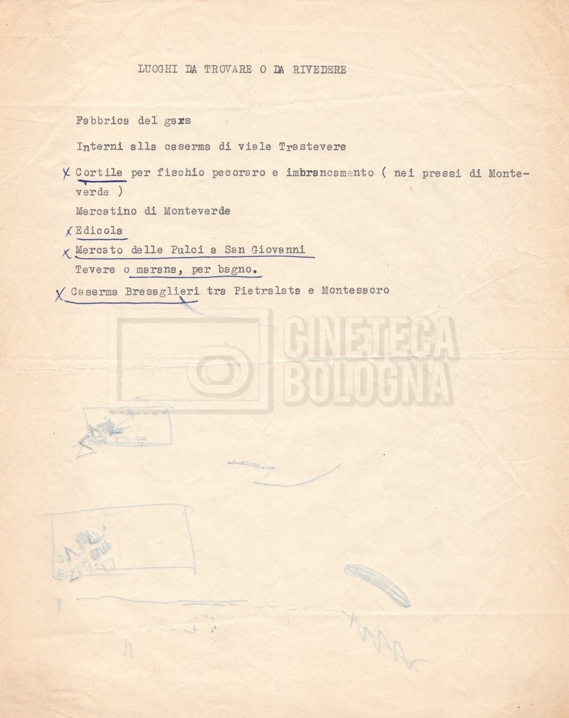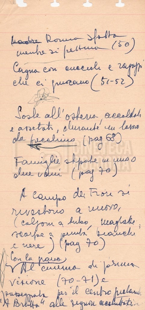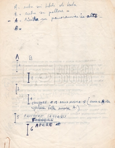 – “Brogliacci di alcune sequenze usati per le riprese”;