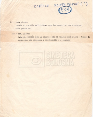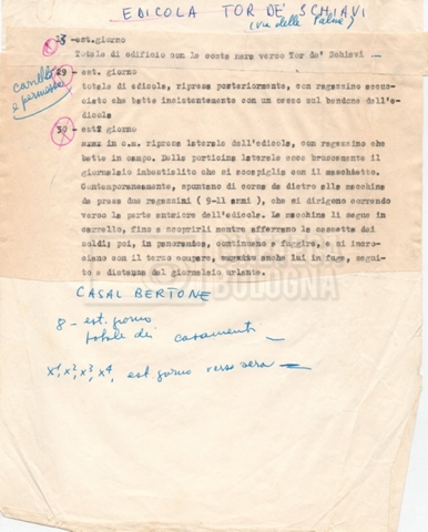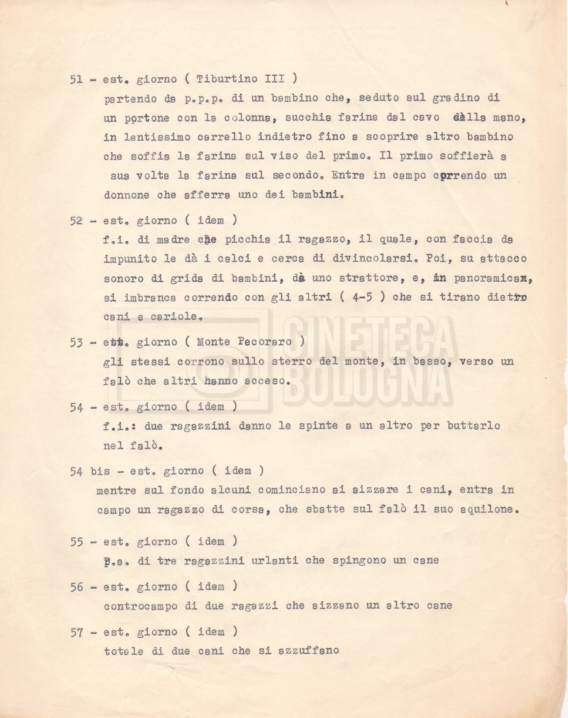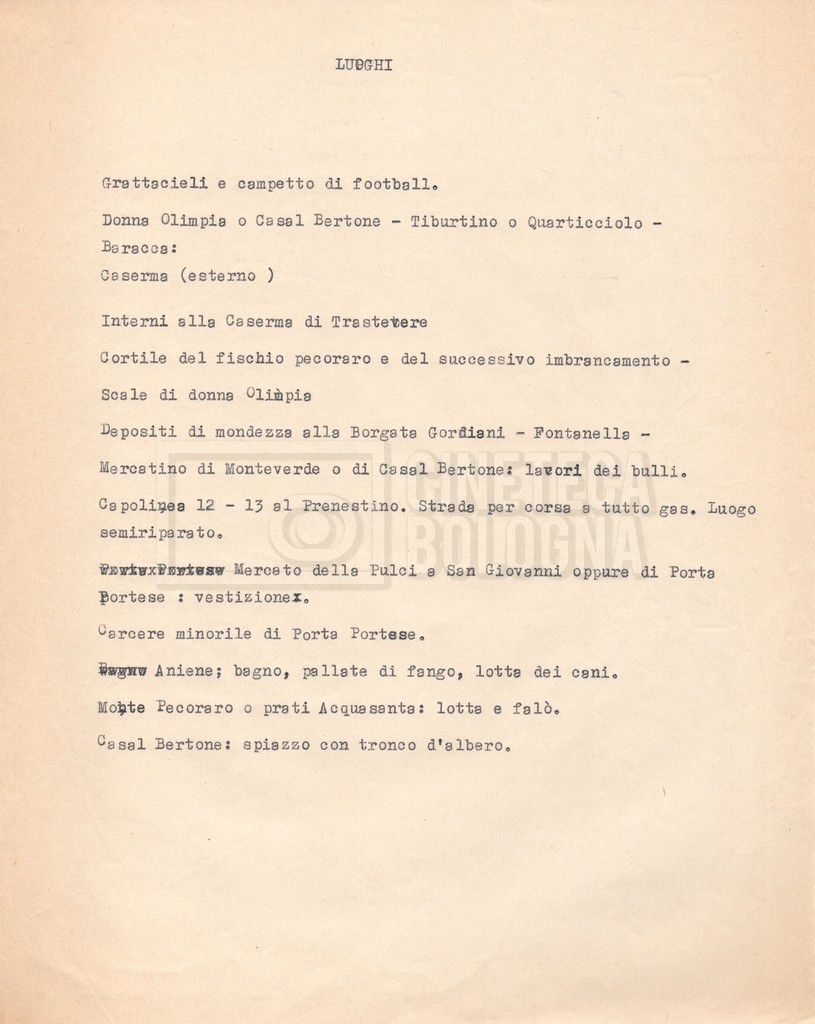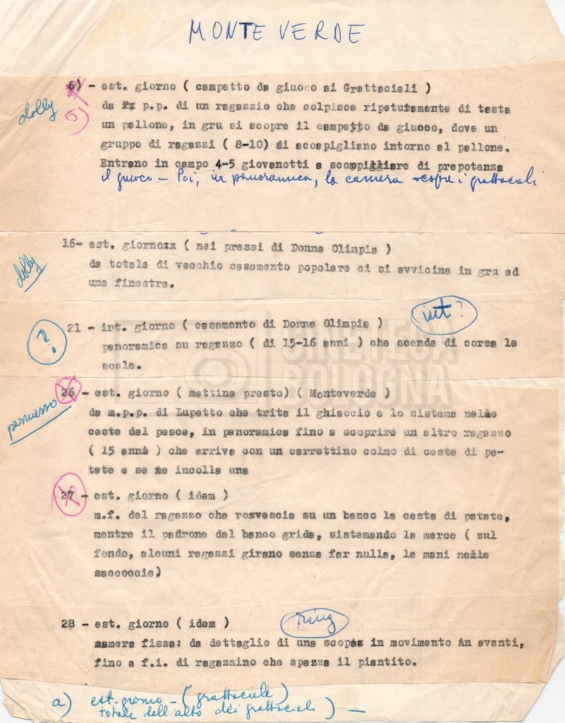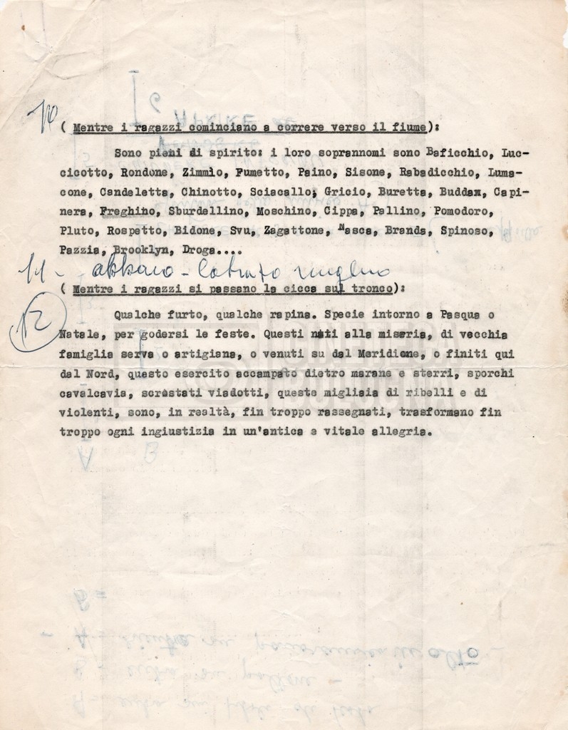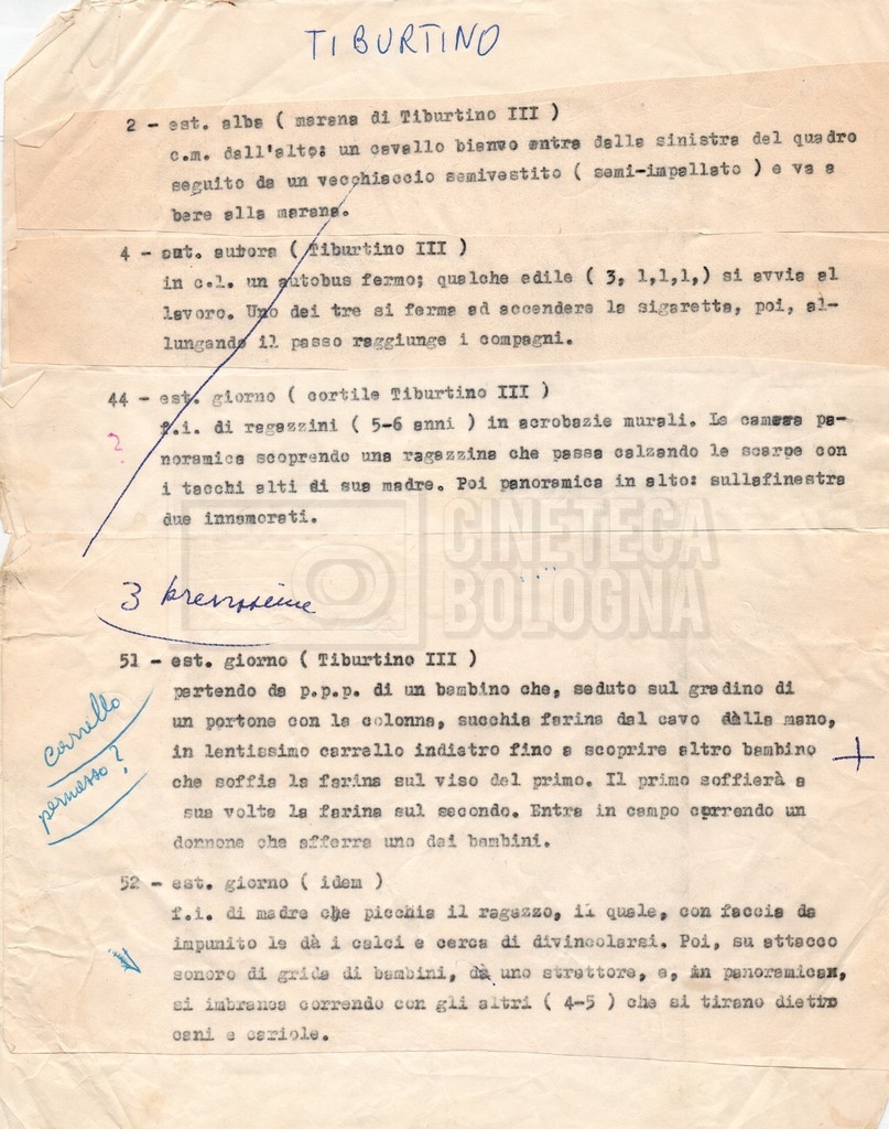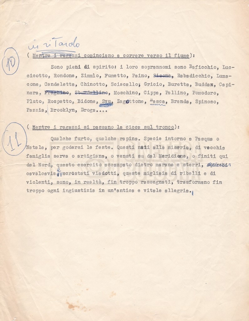 – “Brogliacci di alcune sequenze usati per le riprese”;