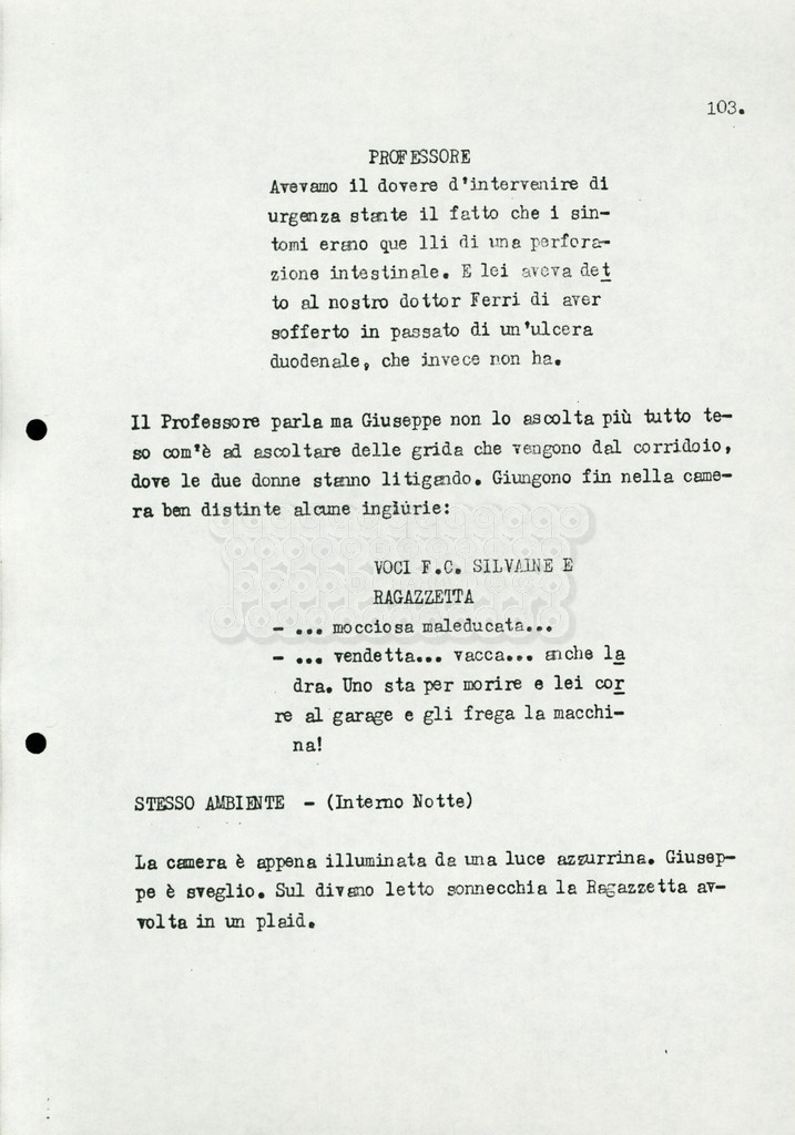 Trattasi di una sceneggiatura di Suso Cecchi d’Amico, Tonino Guerra e Mario Monicelli. In questa versione la sceneggiatura è stata divisa in due tempi e sulla copertina compare la dicitura “versione senza tagli e modifiche” (rif. unità 66 ‘Il male oscuro – secondo tempo’).