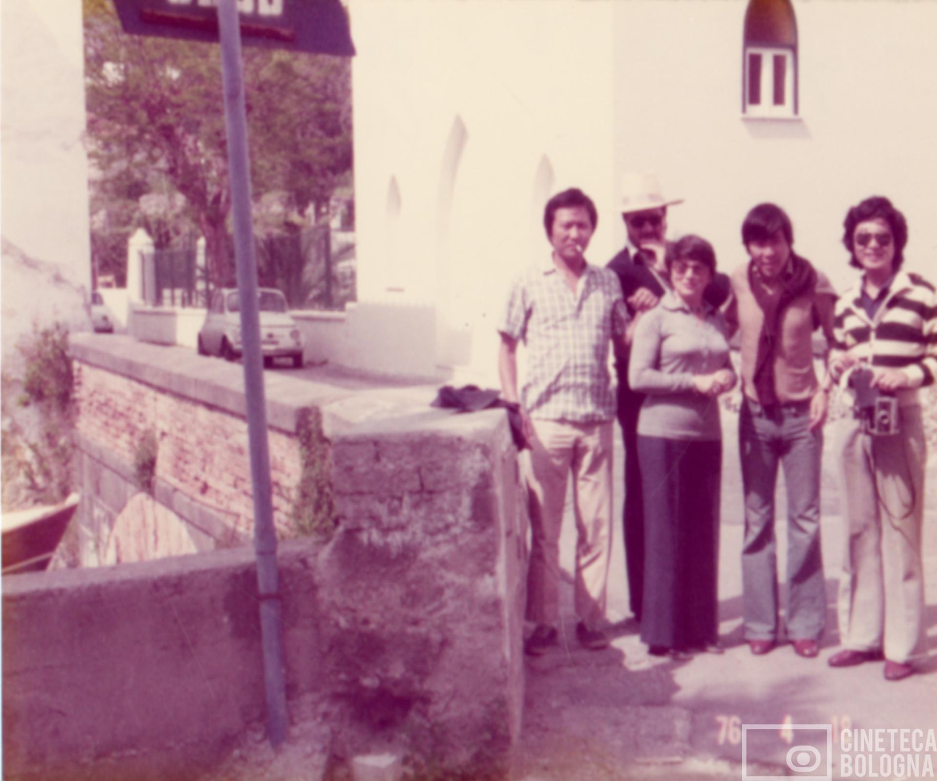 Ischia. Mara Blasetti con altre persone non identificate durante le riprese dello short pubblicitario della Honda