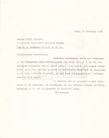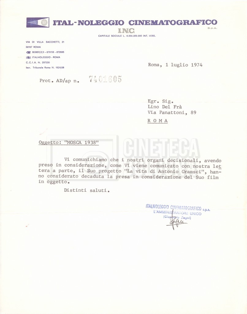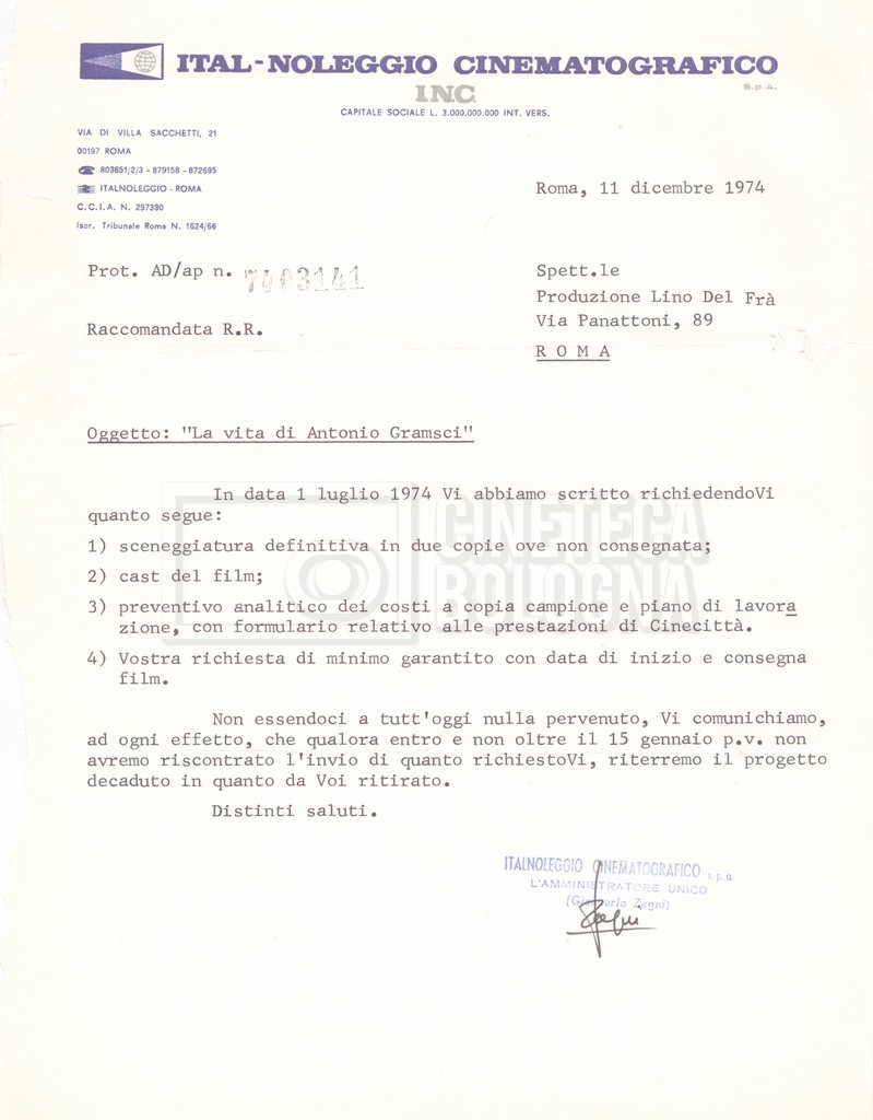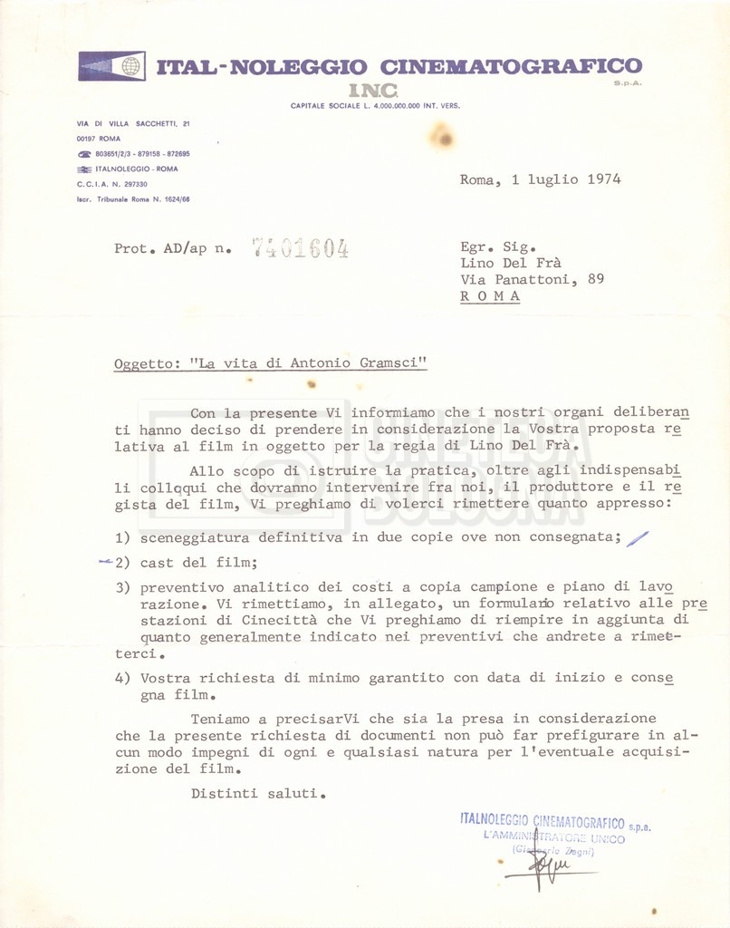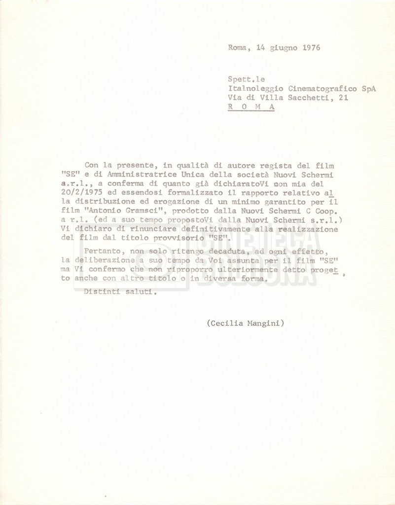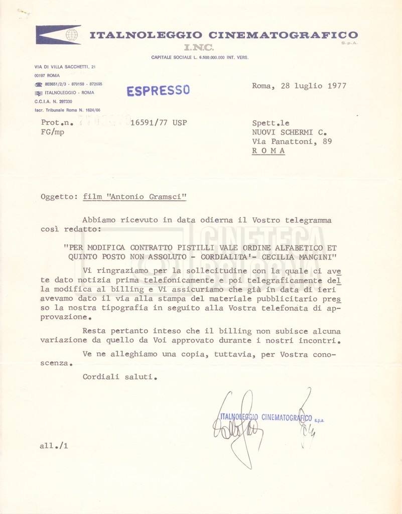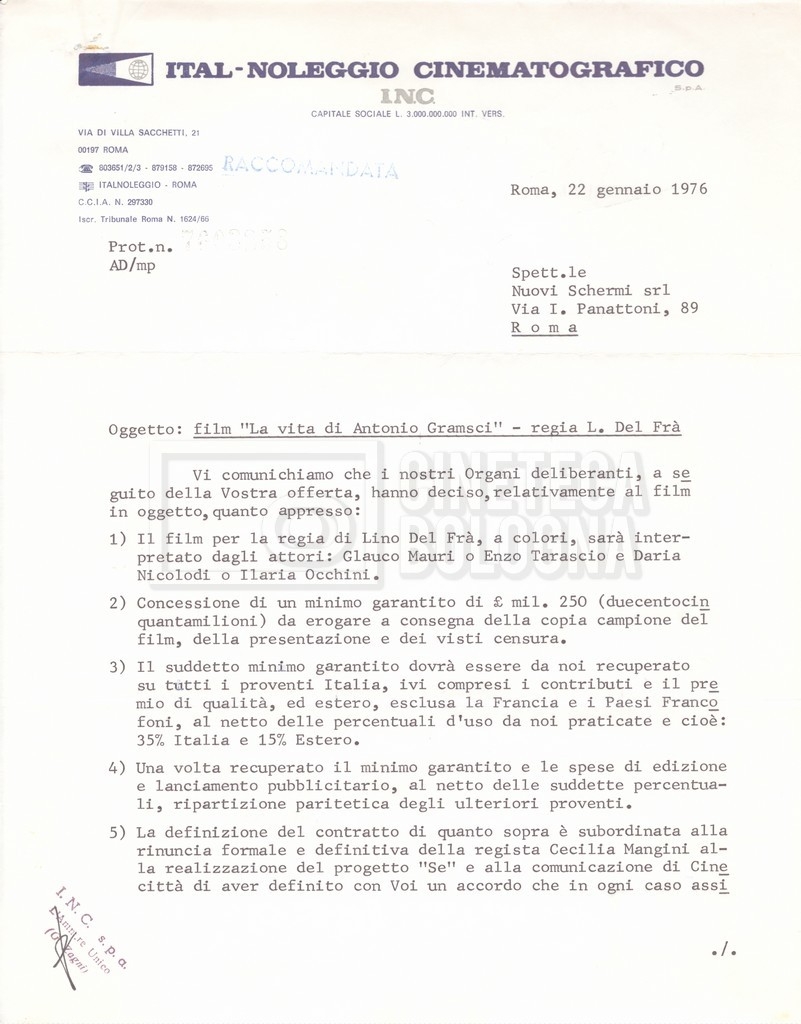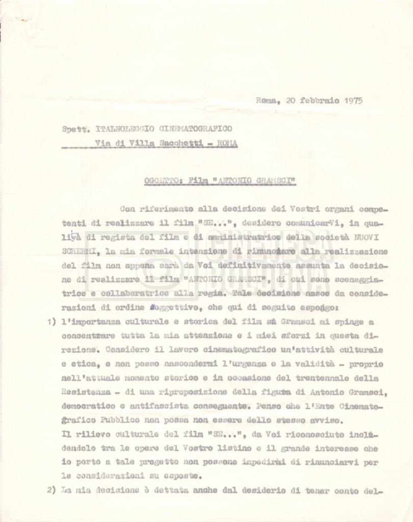 DOCUMENTO STORICO “Lettere sul film; nota bene: presidente della Camera dei deputati era Sandro Pertini”