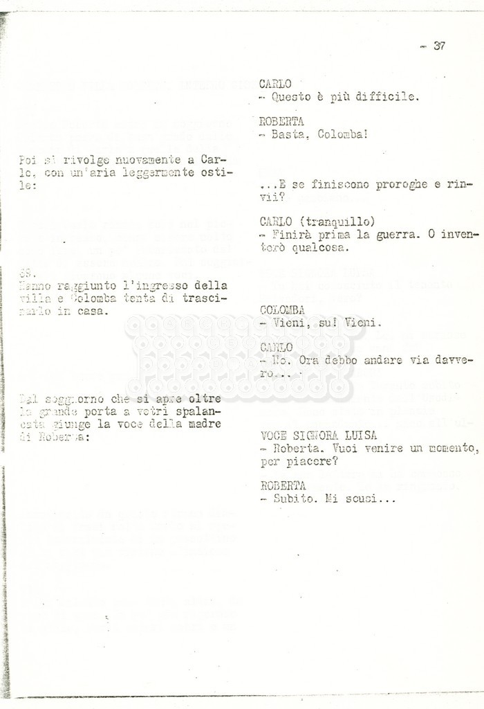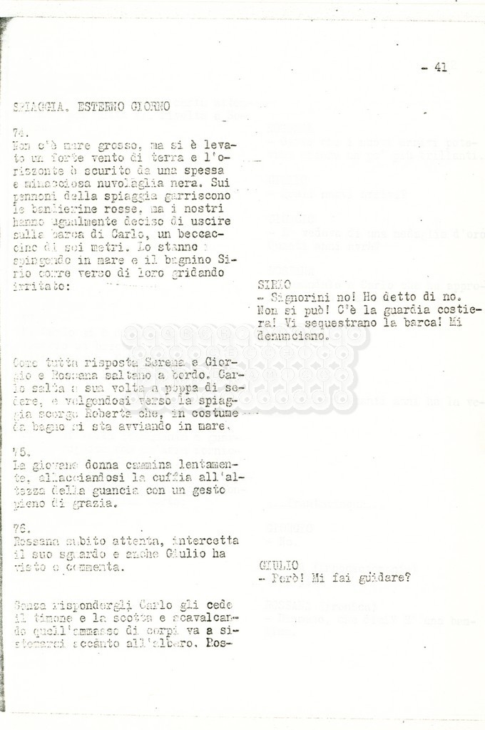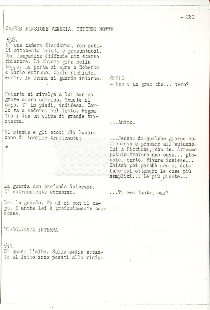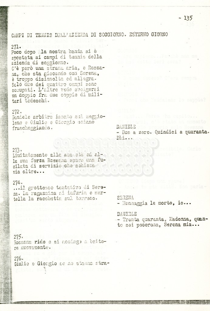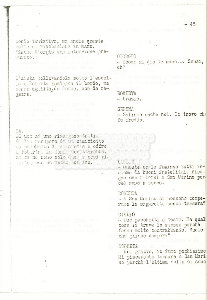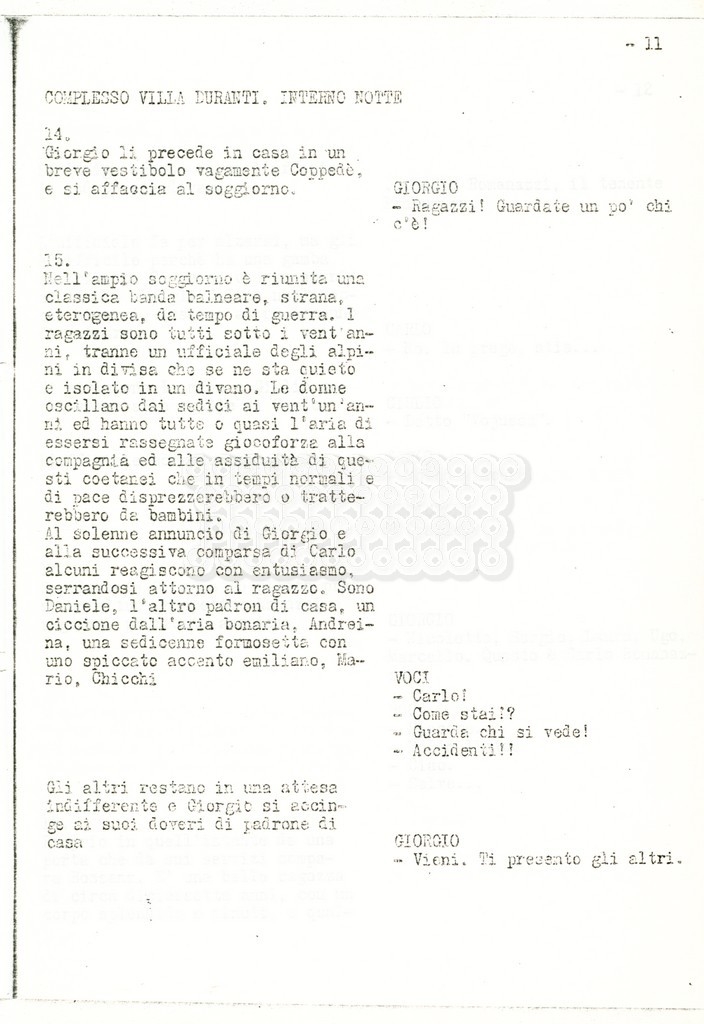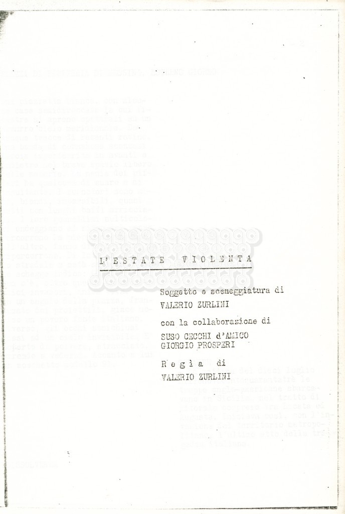 Trattasi di una sceneggiatura di Valerio Zurlini, scritta con la collaborazione di Suso Cecchi d’Amico e Giorgio Prosperi. La regia del film Estate violenta (1959) è di Valerio Zurlini e nella pellicola vengono accreditati alla sceneggiatura gli stessi tre autori di cui sopra.