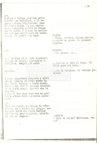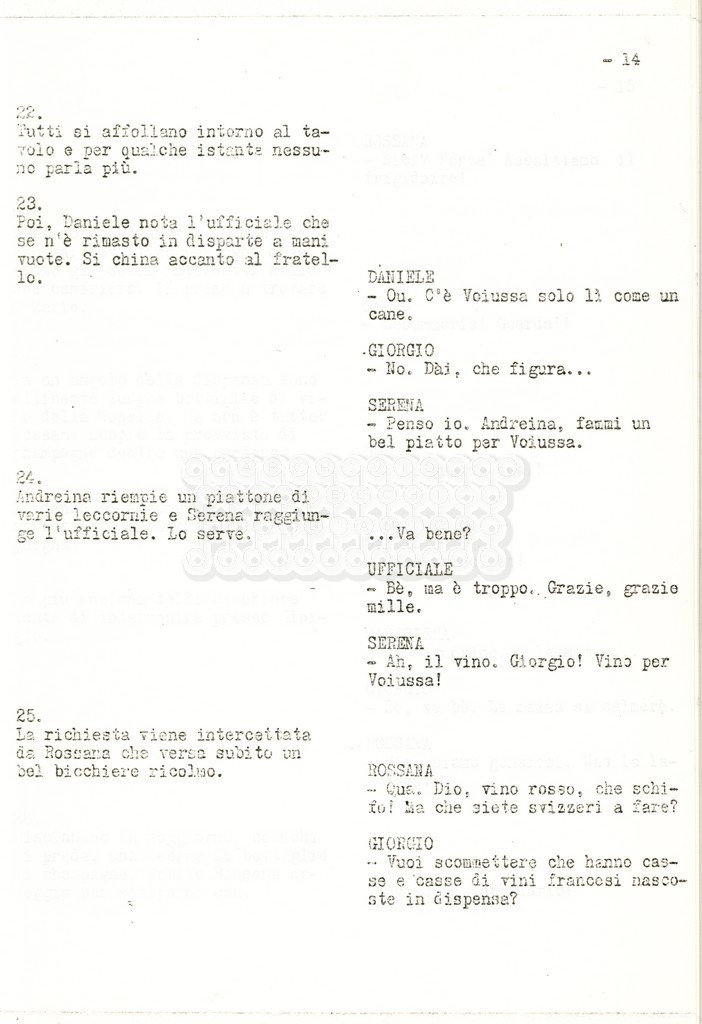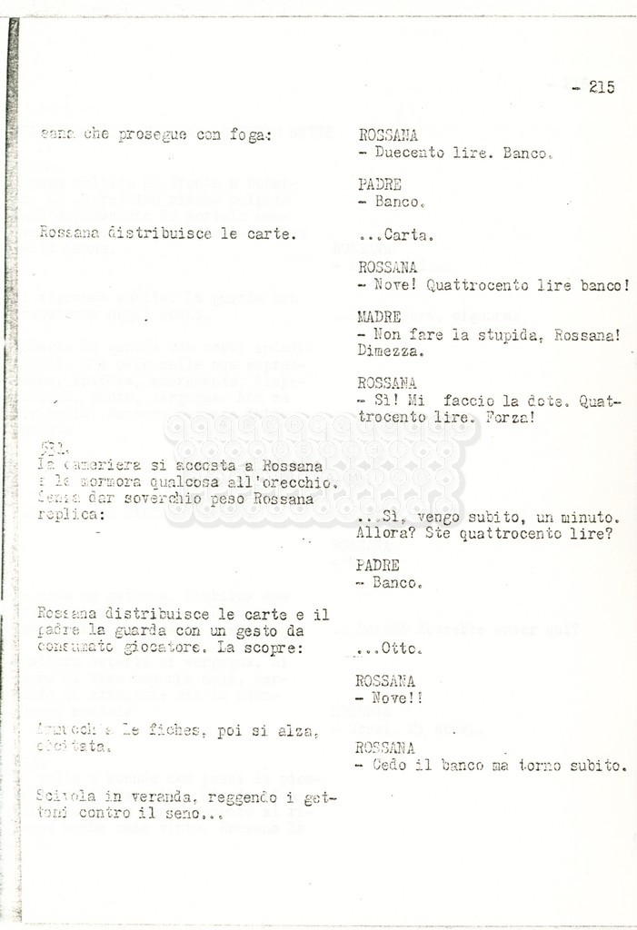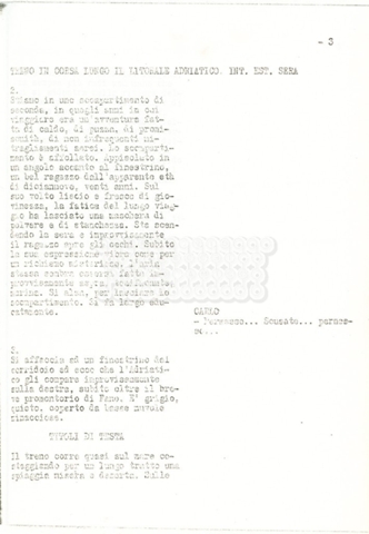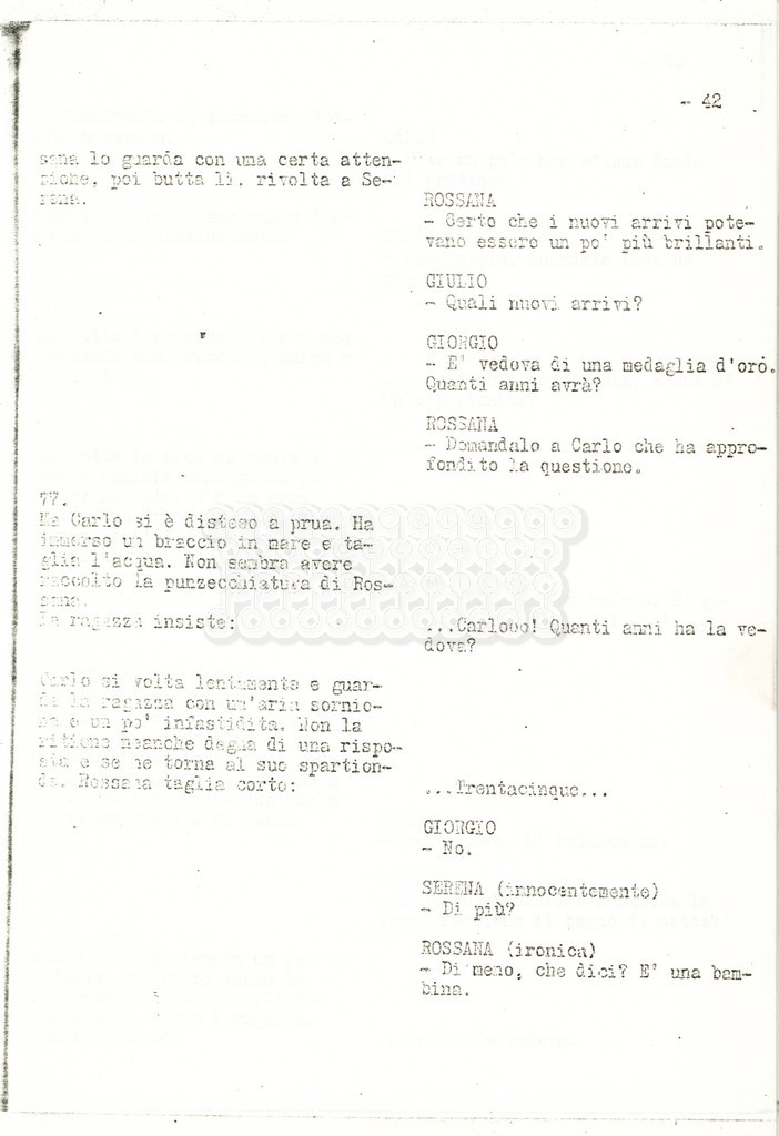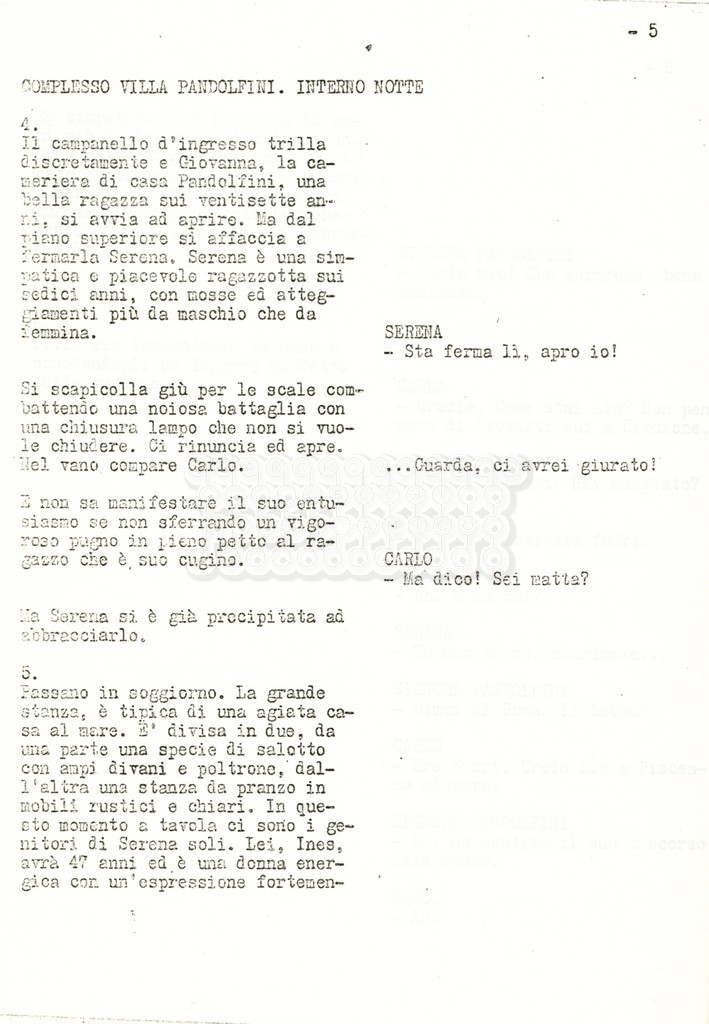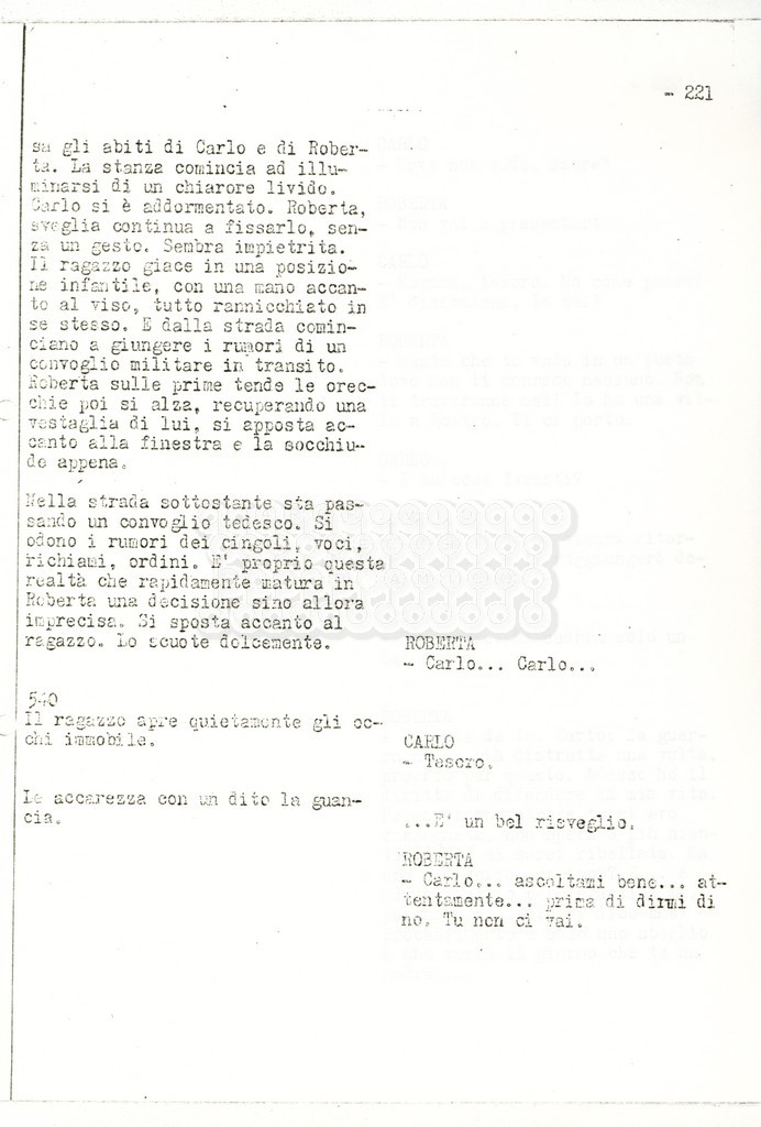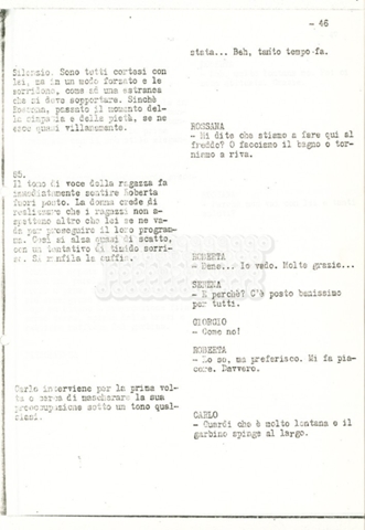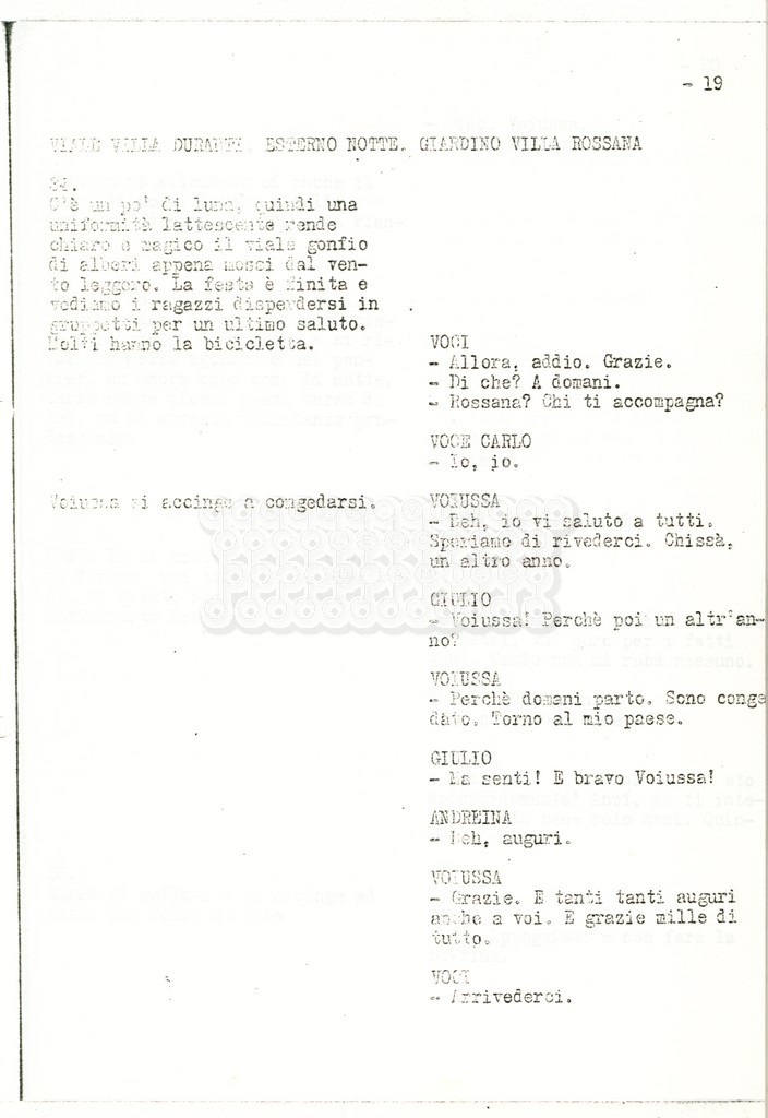 Trattasi di una sceneggiatura di Valerio Zurlini, scritta con la collaborazione di Suso Cecchi d’Amico e Giorgio Prosperi. La regia del film Estate violenta (1959) è di Valerio Zurlini e nella pellicola vengono accreditati alla sceneggiatura gli stessi tre autori di cui sopra.