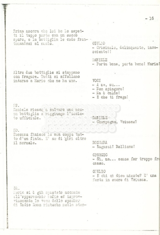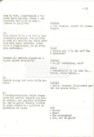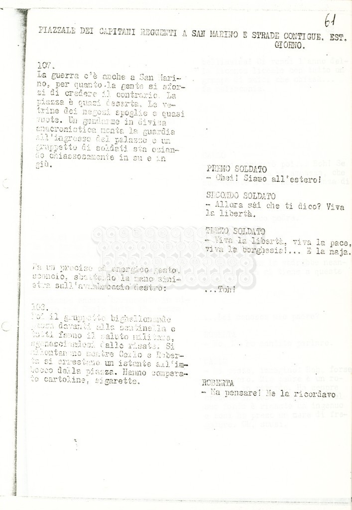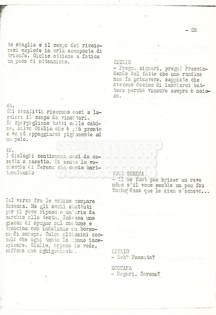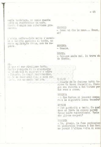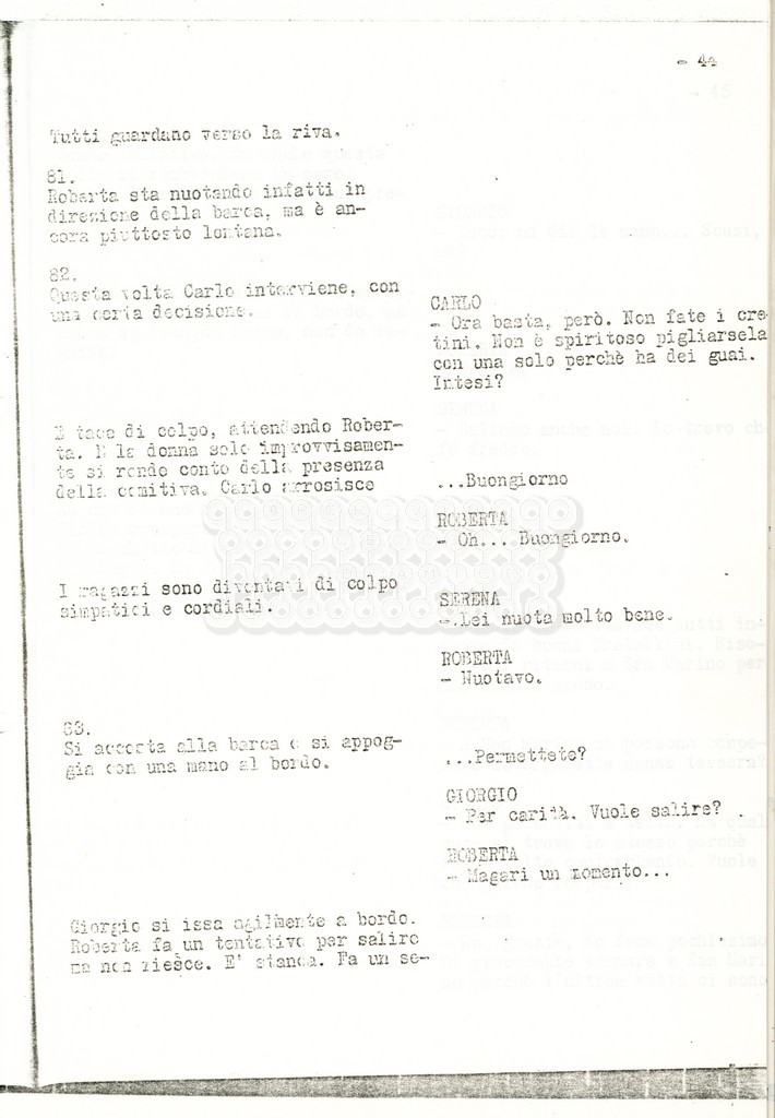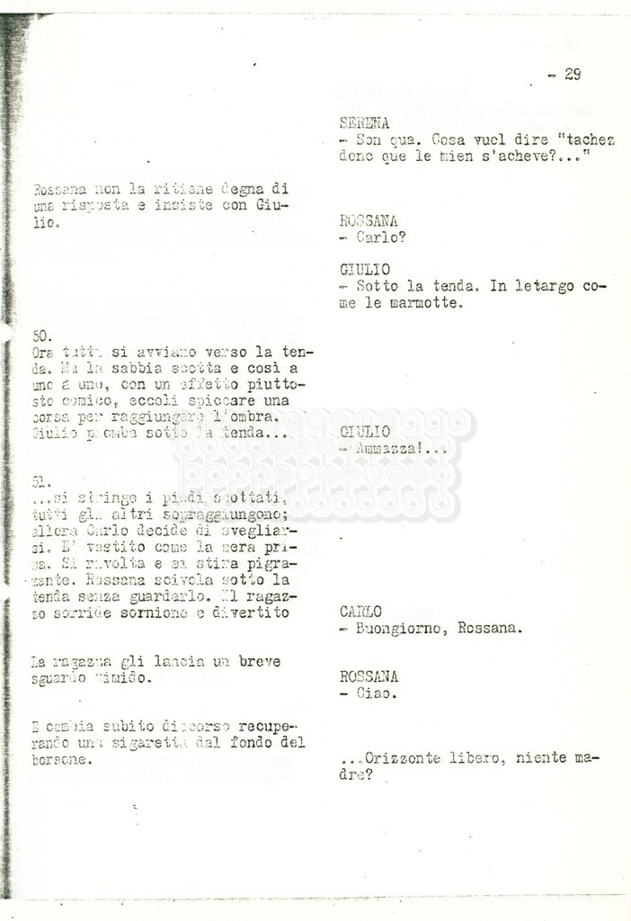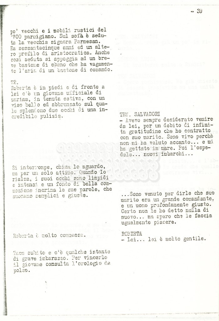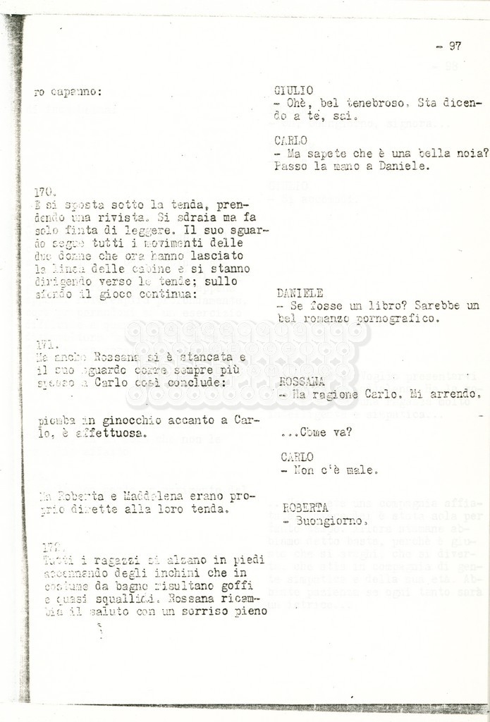Trattasi di una sceneggiatura di Valerio Zurlini, scritta con la collaborazione di Suso Cecchi d’Amico e Giorgio Prosperi. La regia del film Estate violenta (1959) è di Valerio Zurlini e nella pellicola vengono accreditati alla sceneggiatura gli stessi tre autori di cui sopra.