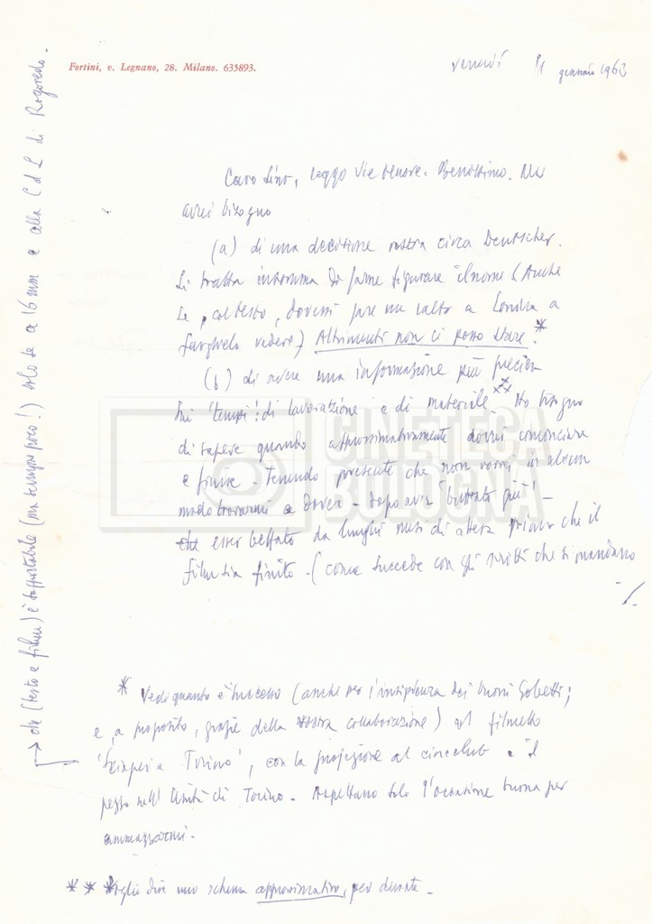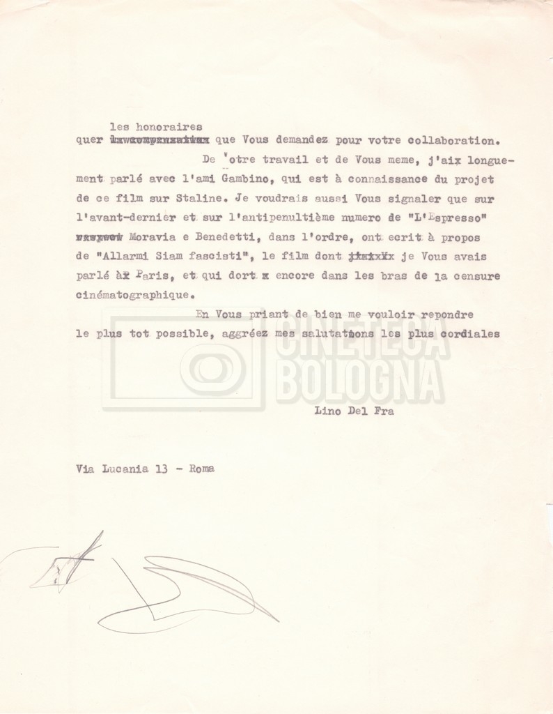 – Una lettera di Franco Fortini a Lino Del Fra, in merito alla progettazione del film;