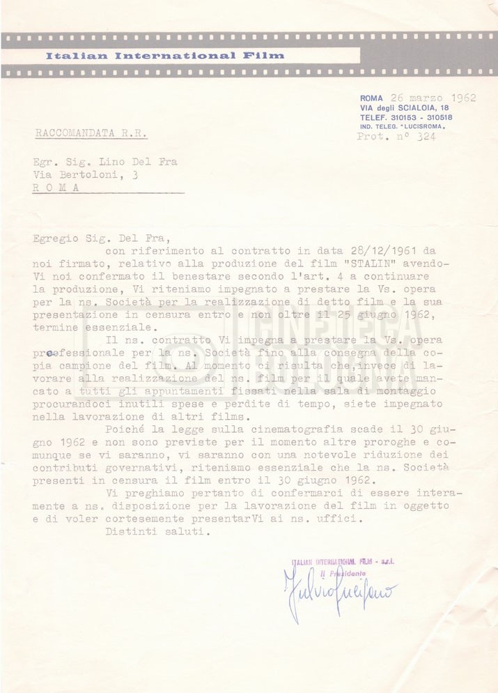 “Lettera pre-contratto da Lucisano a Del Fra”